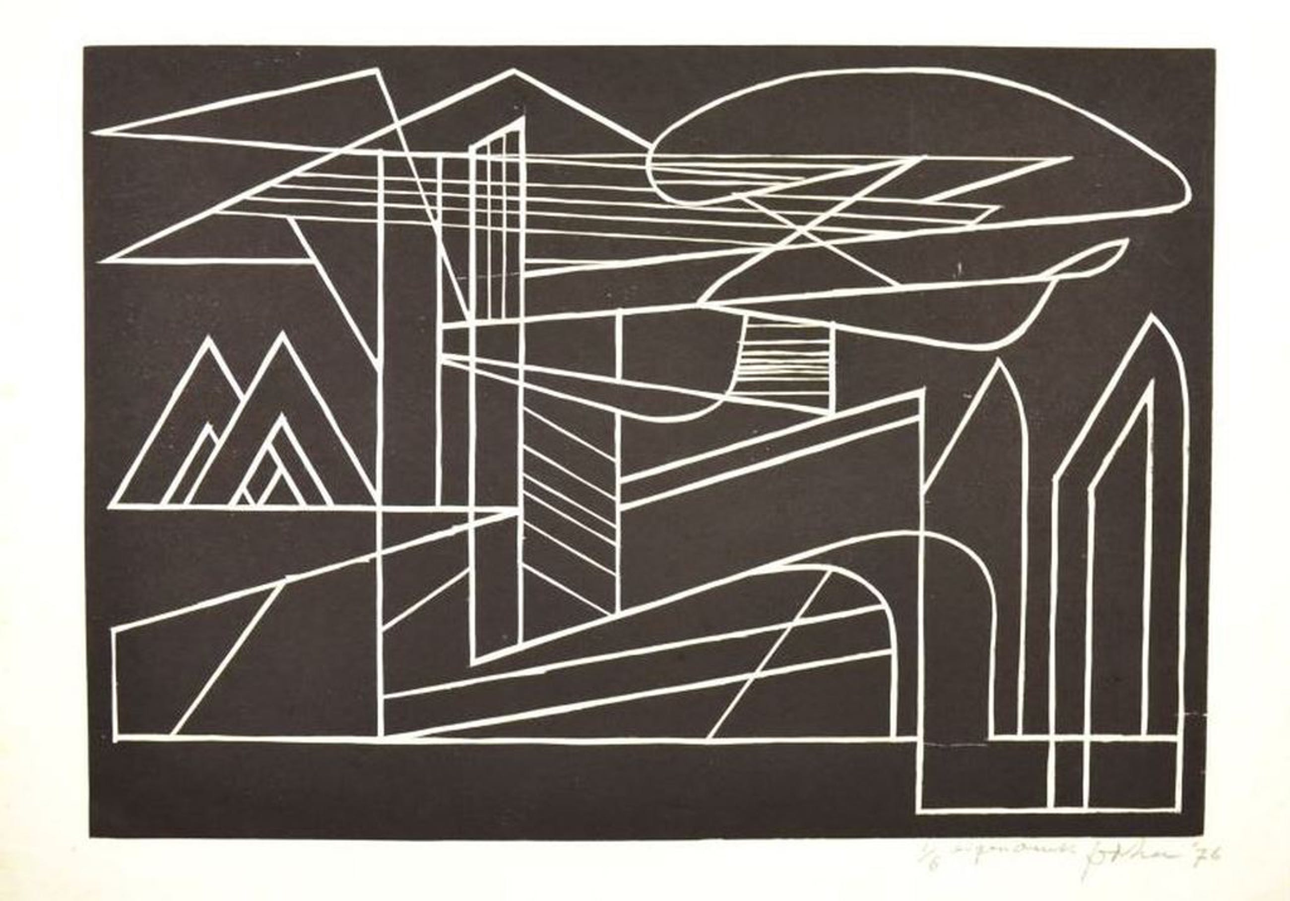 Een Lino/Houtsnede van 'De Ploeg' kunstenaar Jan van der Zee (Leeuwarden 1898-1988 Groningen)