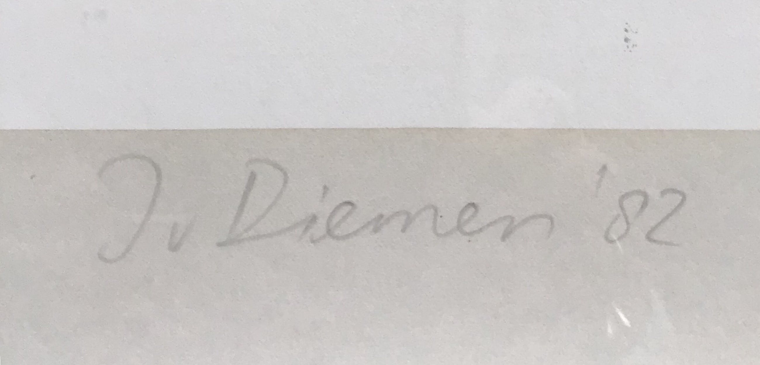Mooie vroege zeefdruk van Jan van DiemenTitel draversIn lijst met passe-partoutGesigneerdOplage91/290In prima conditie