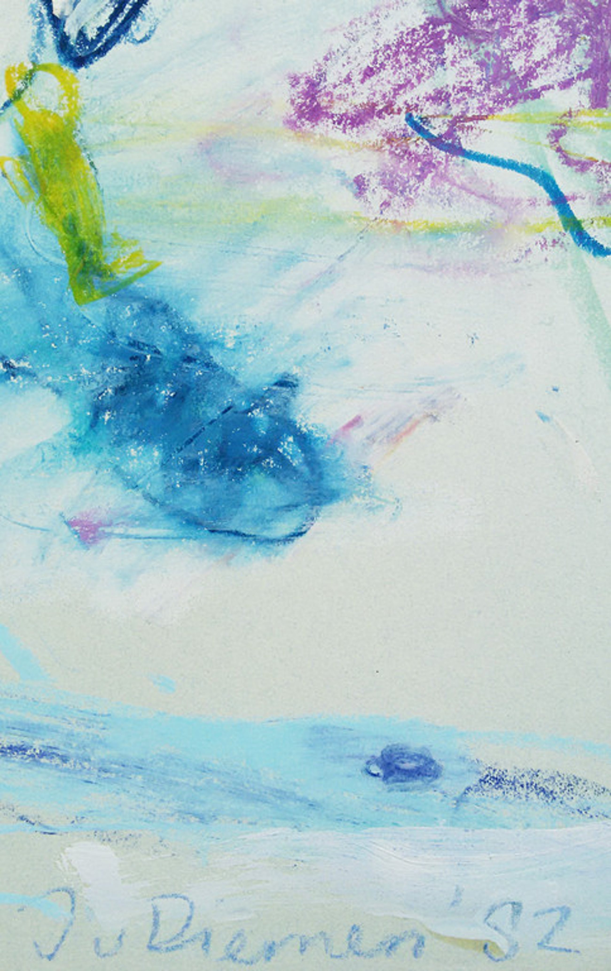 Karakteristiek, dynamisch werk van Jan van Diemen. Gemengde techniek (verf, krijt) op papier, gesigneerd en gedateerd (‘82) rechtsonder. In zeer goede conditie.