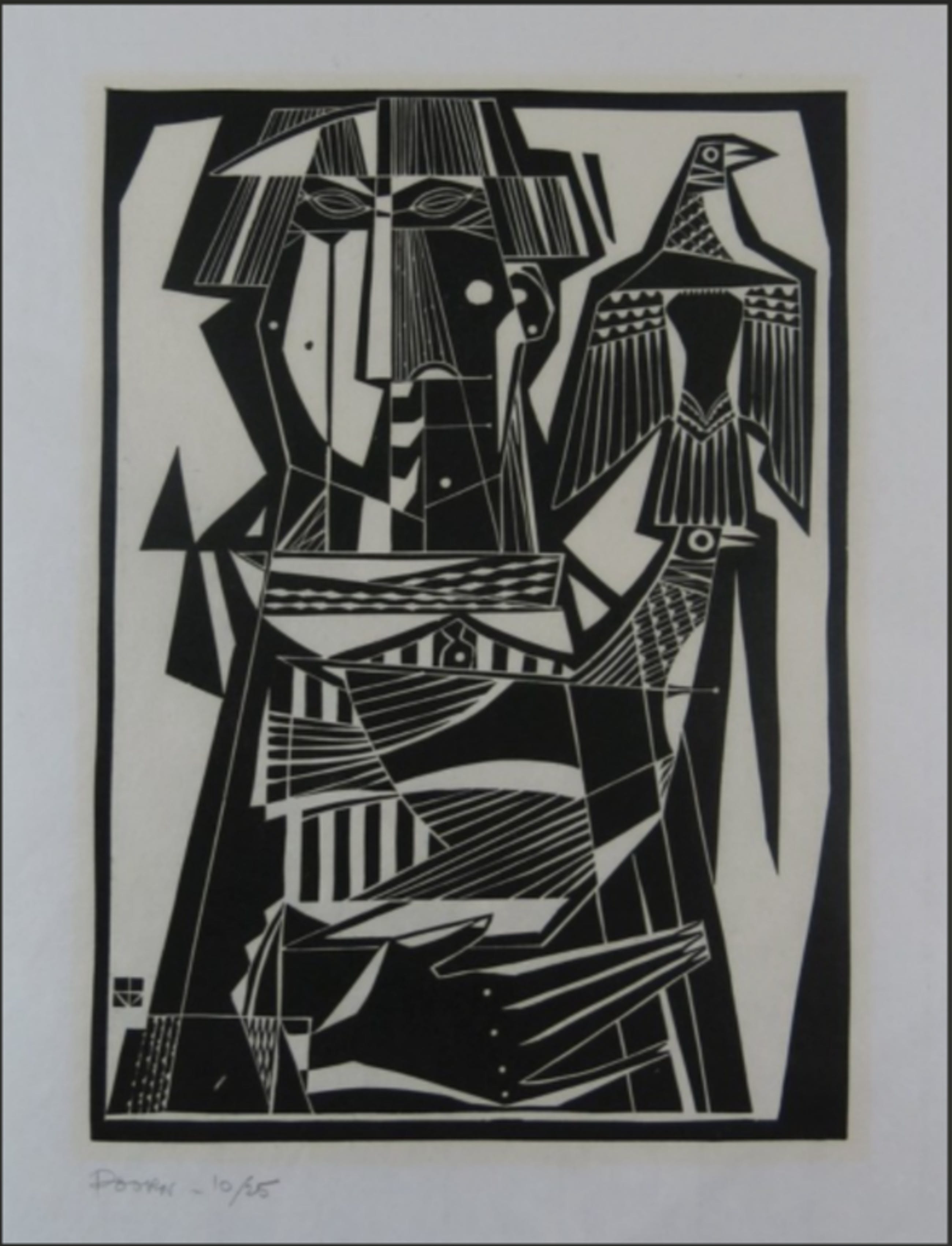 Materiaal: Lino op Japans (dun) papier (Bevindt zich op onderblad)