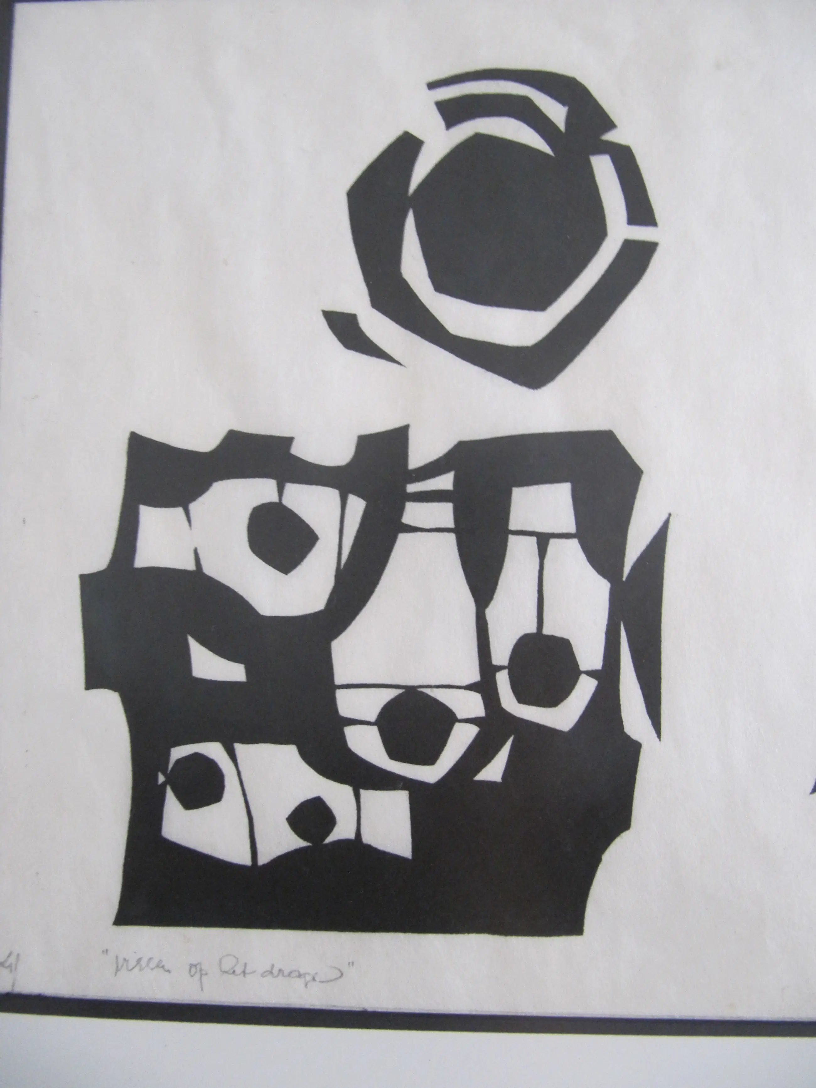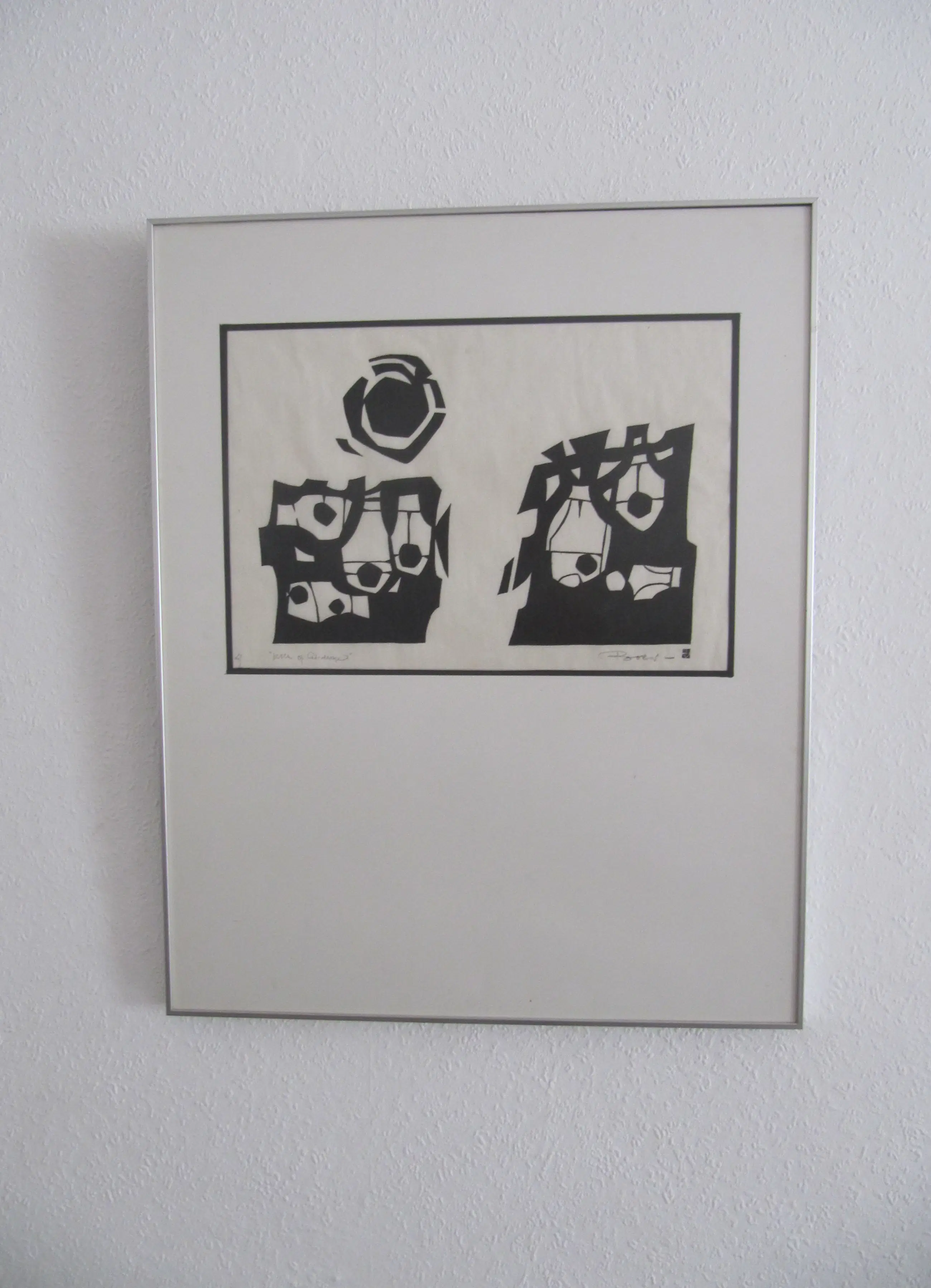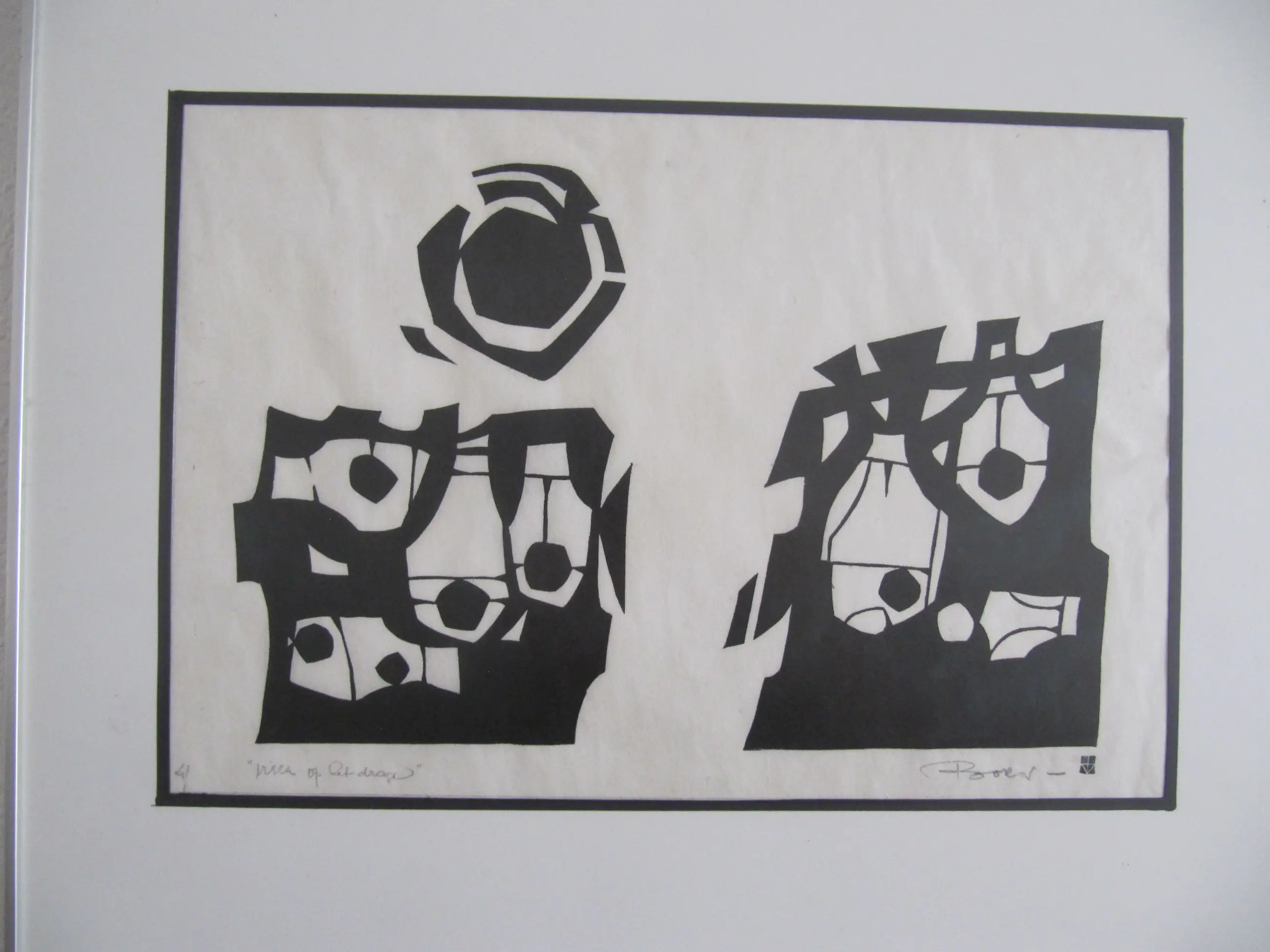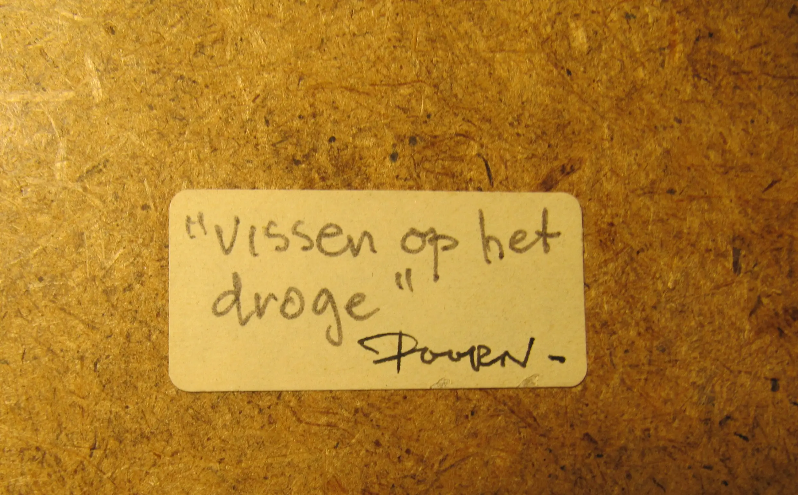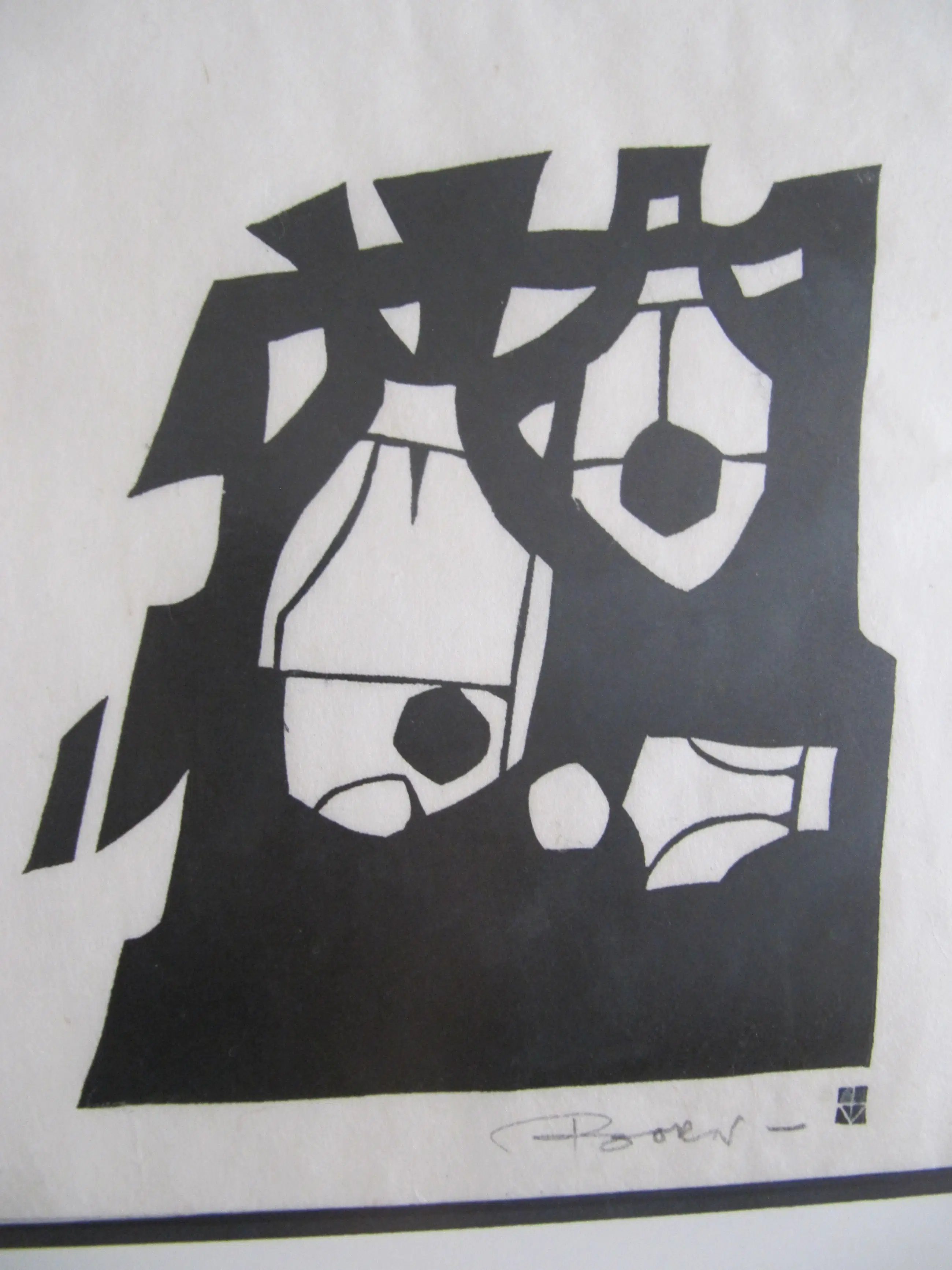 Mooie Linosnede van Jan van Doorn op Japans rijstpapier titel : 'vissen op het droge' gesigneerd ,ook nog op achterzijde sticker(zie afb 5),dus wrschlijk door kunstenaar ingelijst Oplage onduidelijk,dit is nr 4?(zie afb 4) Ingelijst Nette staat