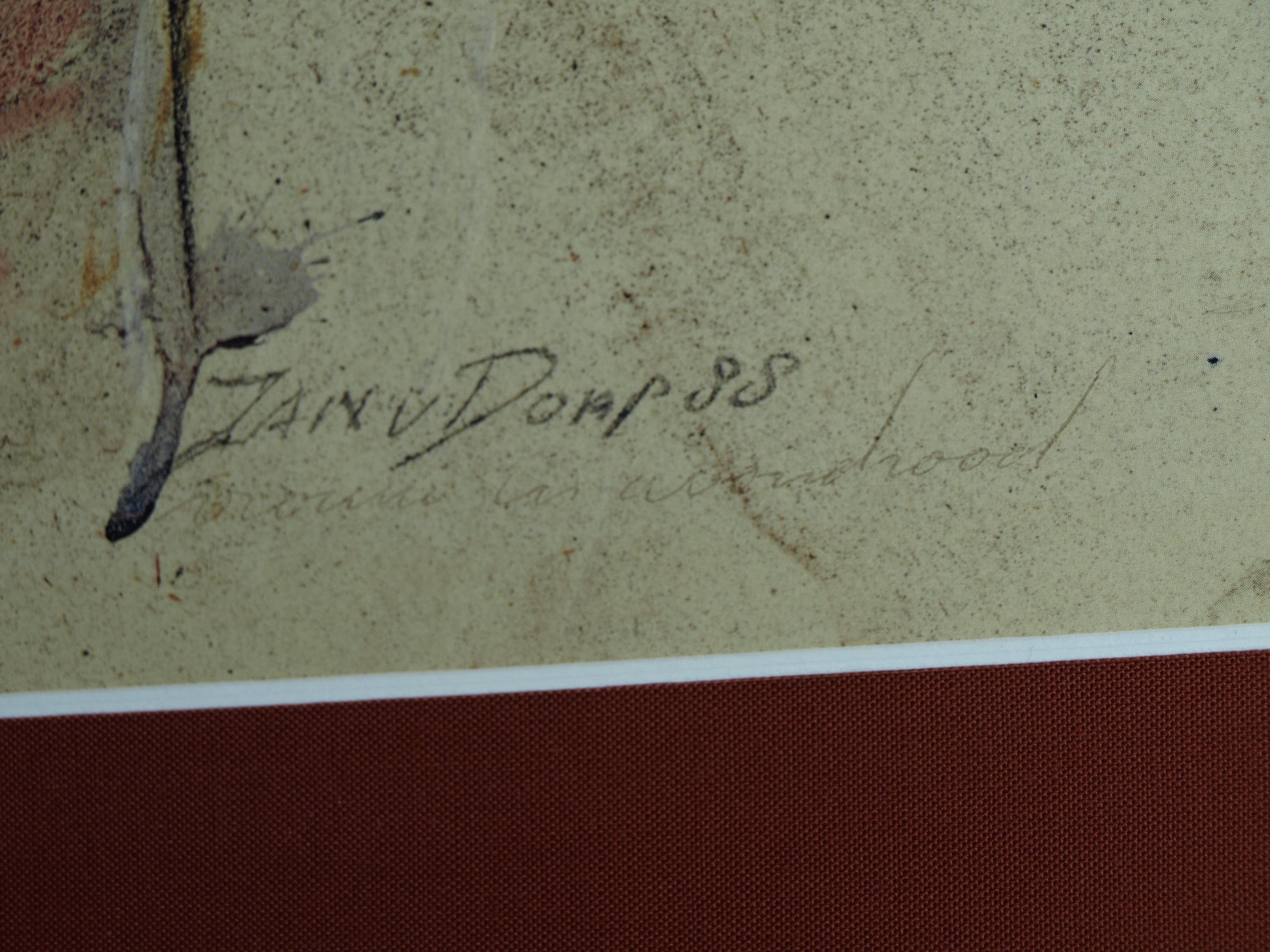 Een grote ingelijste prent van de Nederlandse kunstenaar Jan van Dorp (1959).