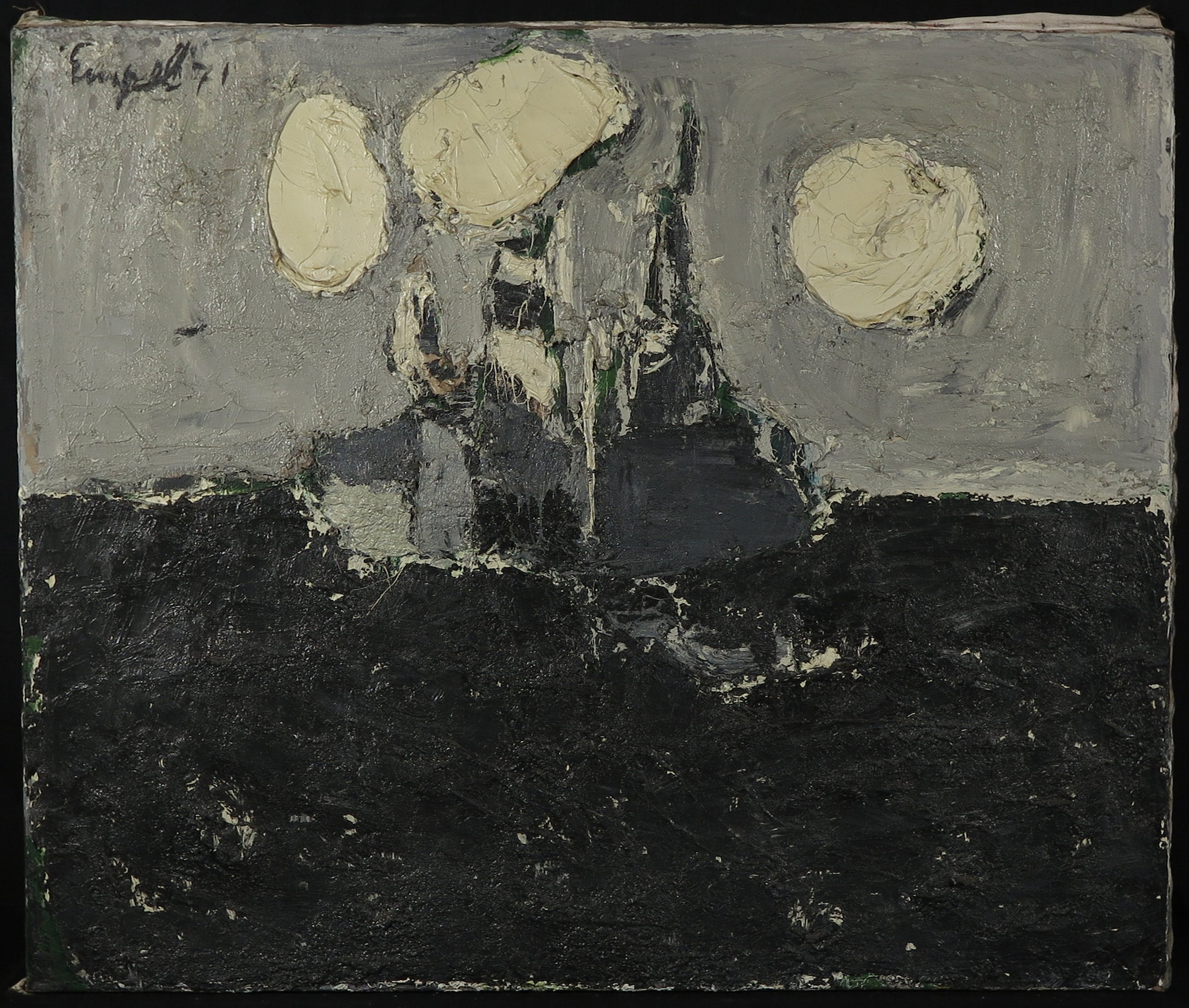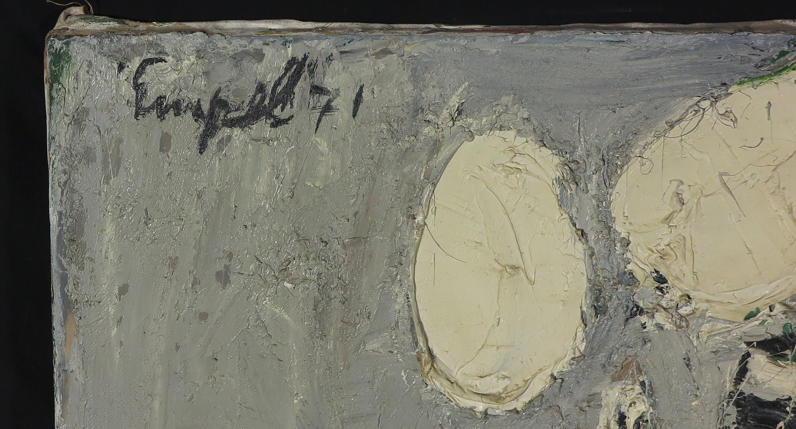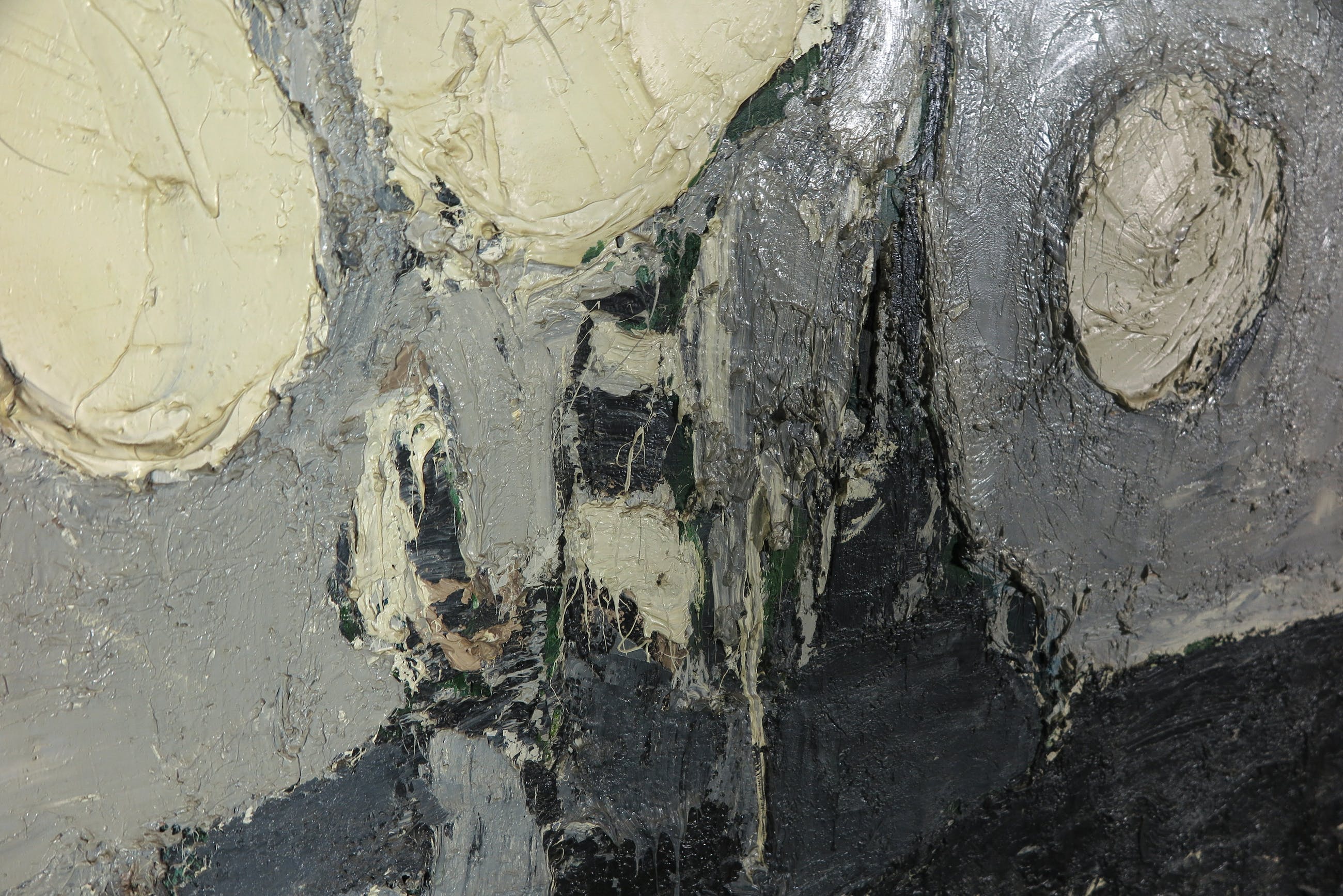 | Wat oppervlaktevuil en kleine beschadigingen langs de randen. Het werk is zeer pasteus opgezet en daardoor erg zwaar. | |