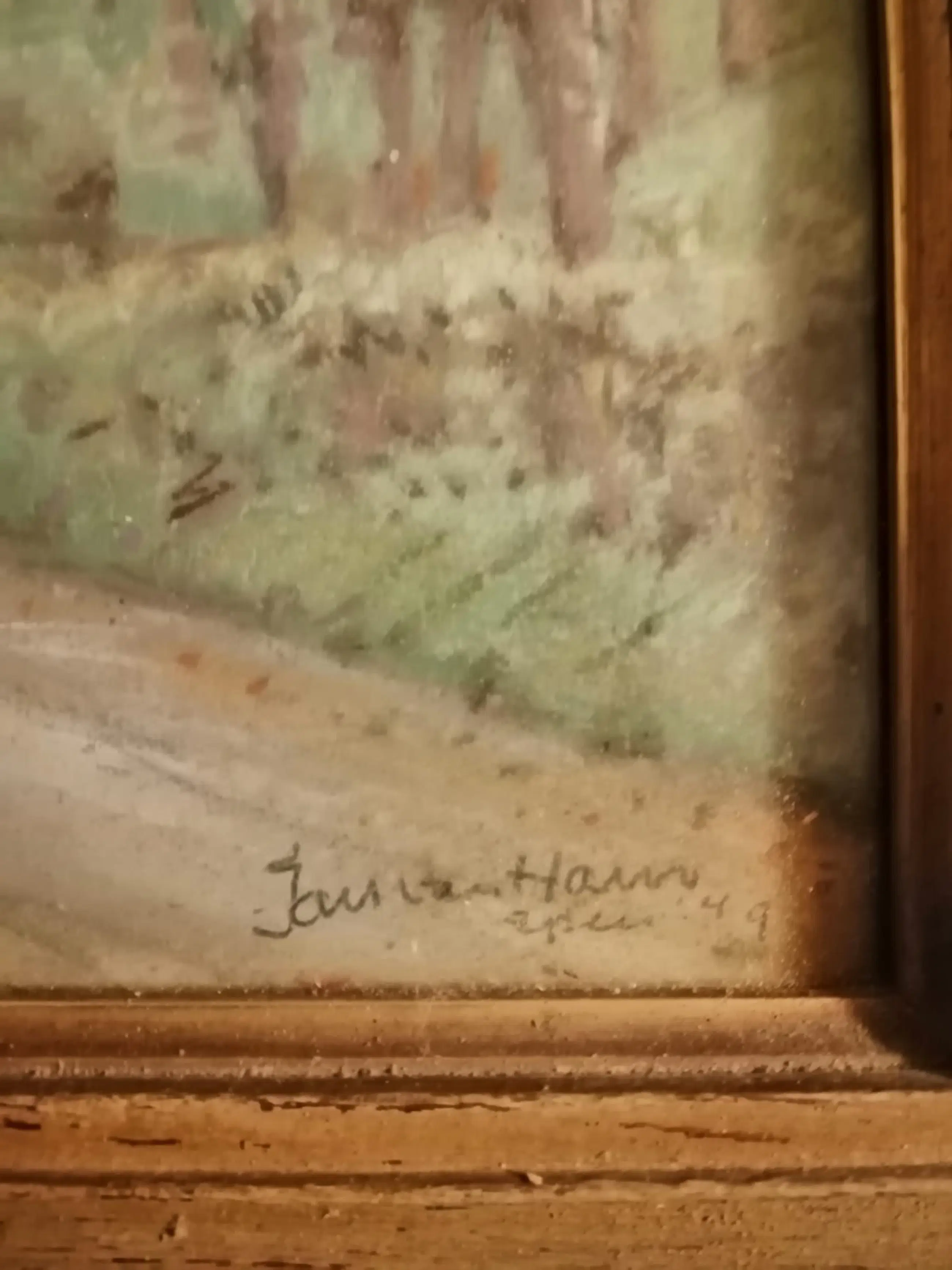 Er mankeert niets aan. Houten lijst met gouden randje.