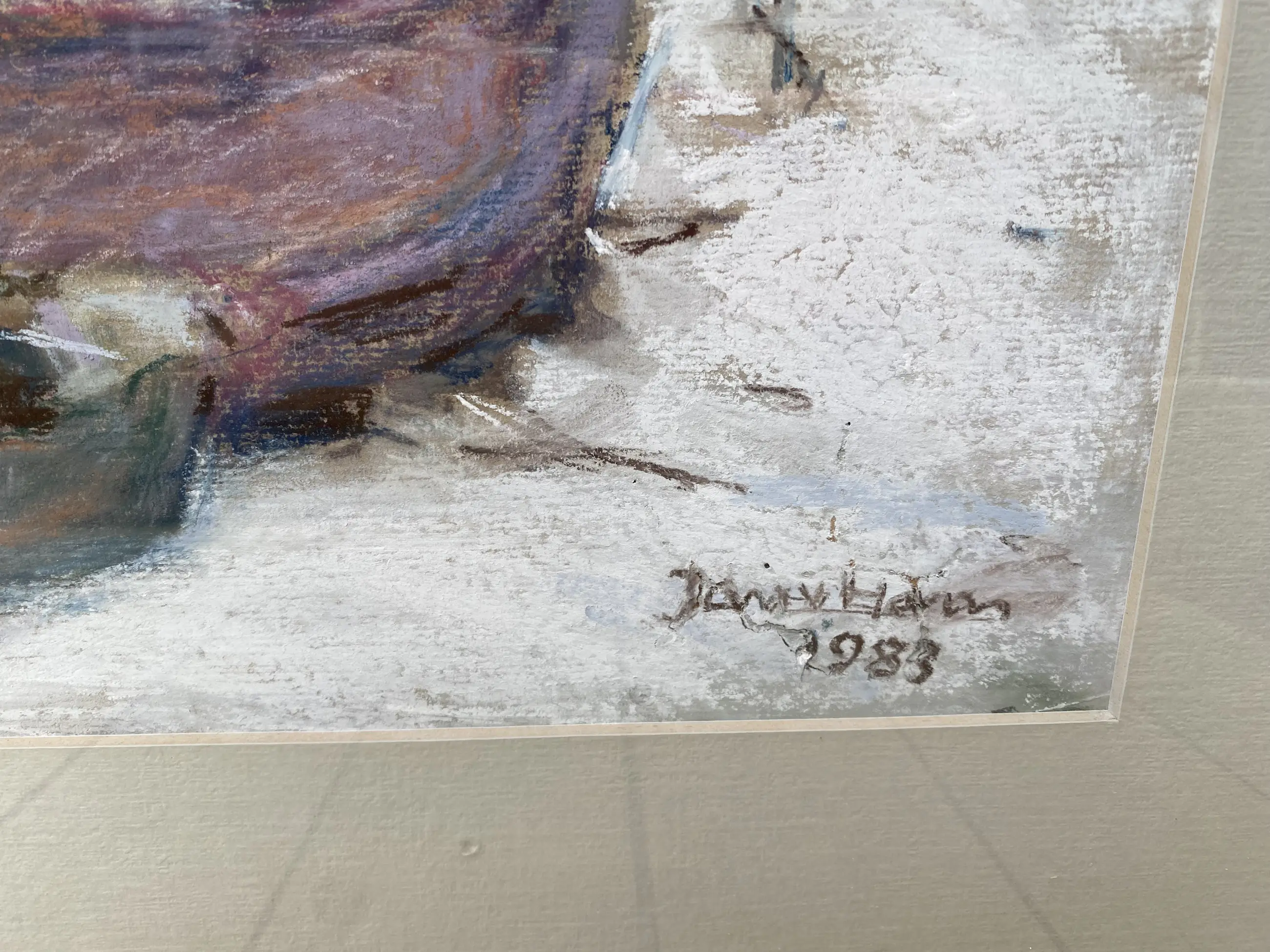 "Tjalk in de Hollandse IJssel" - in schets gemaakt rond 1930, in 1983 in pastel afgewerkt.