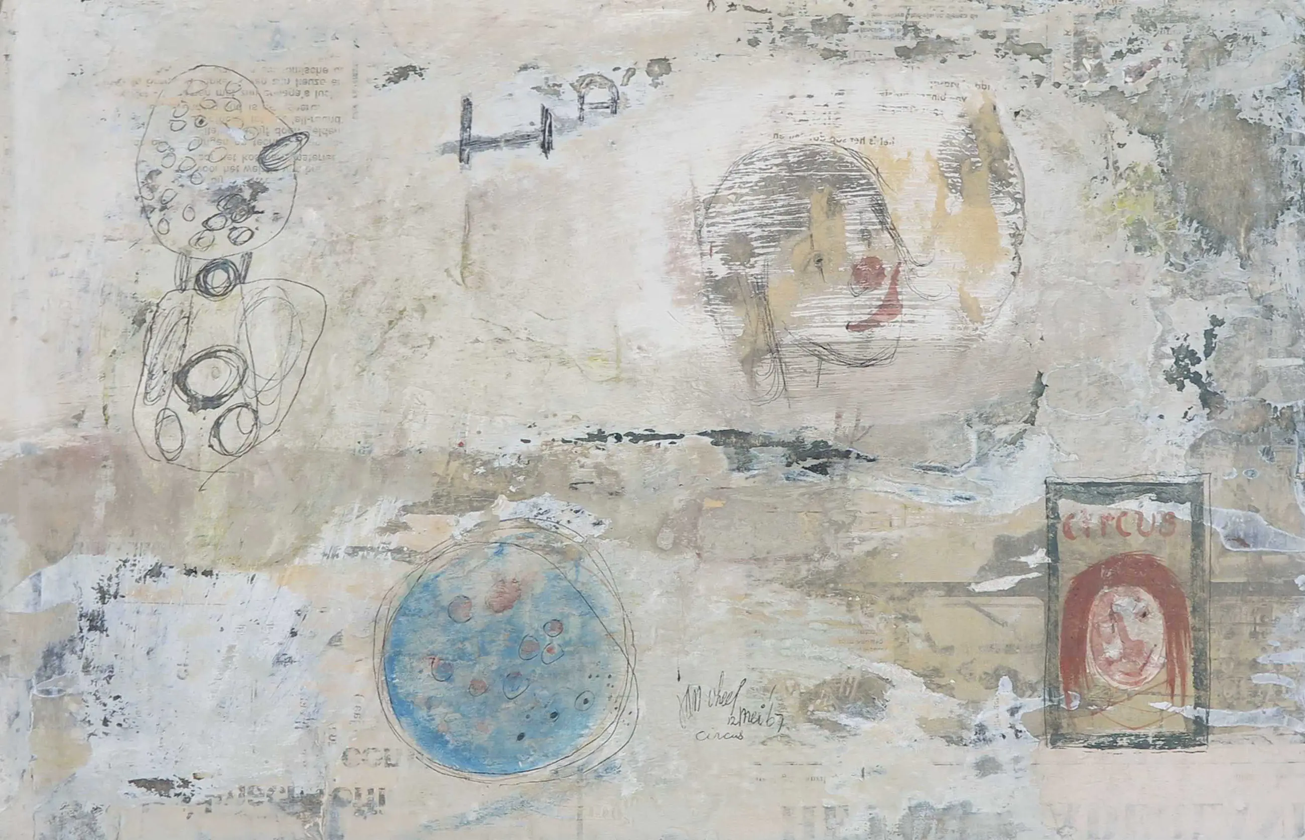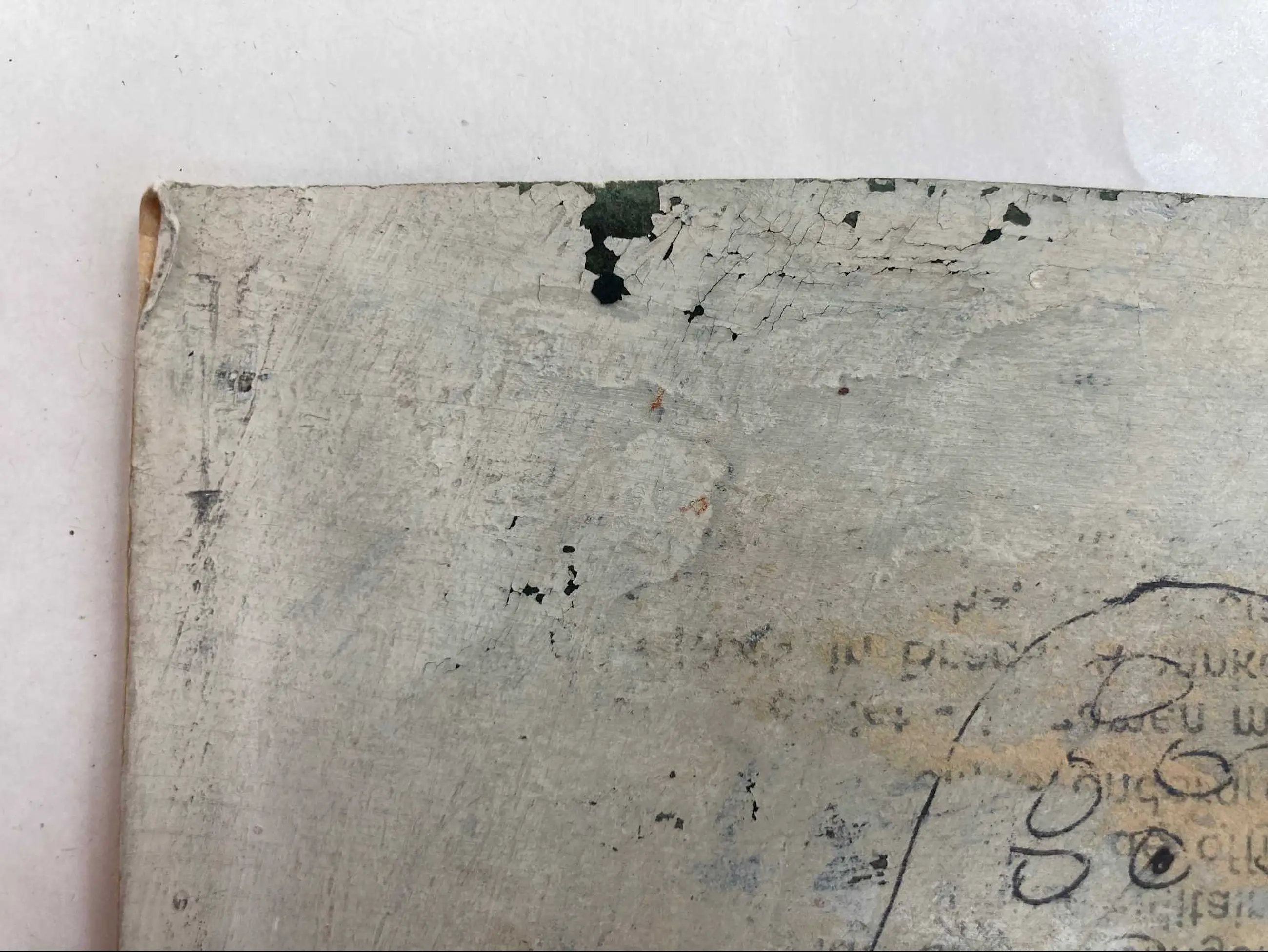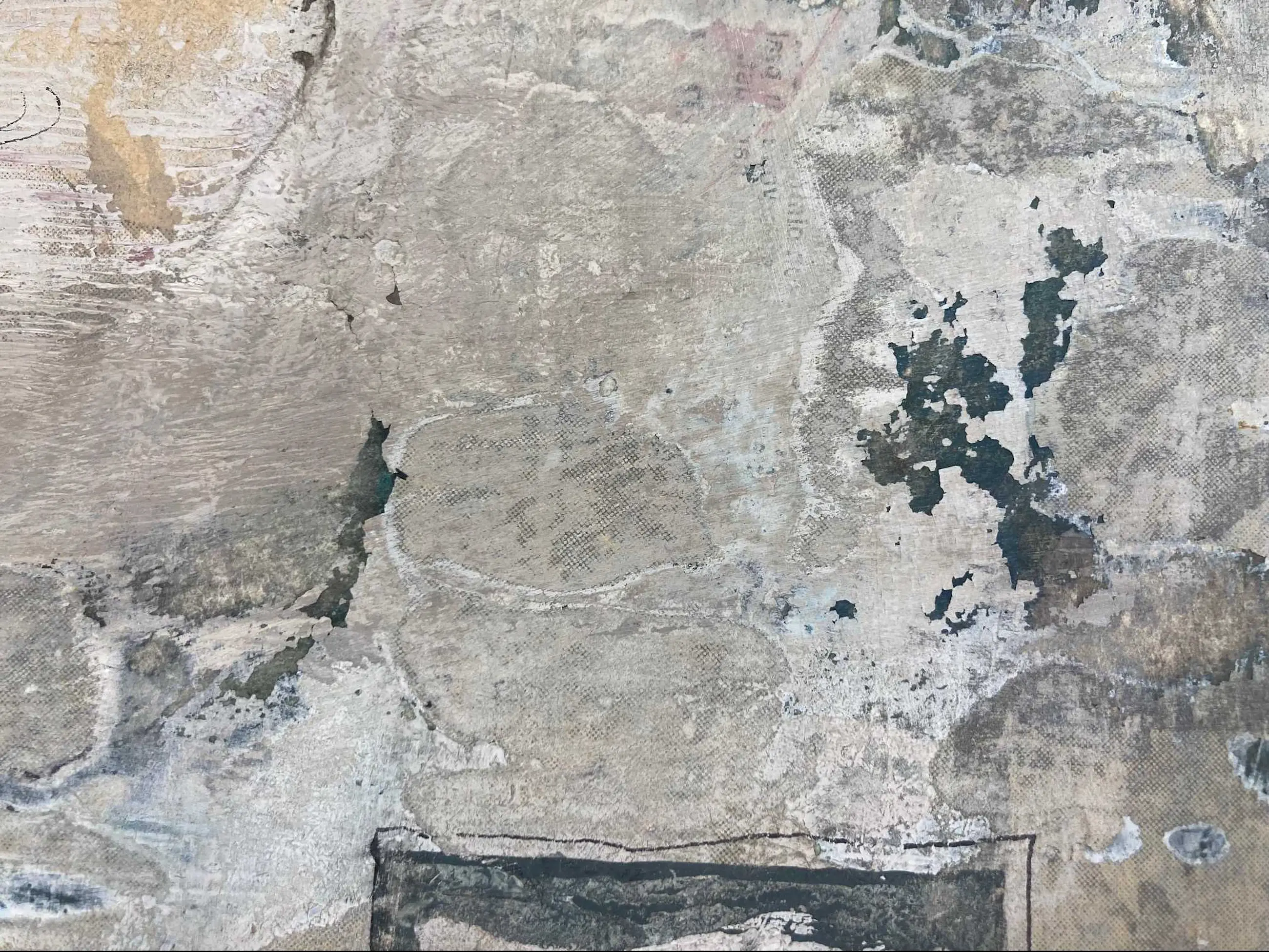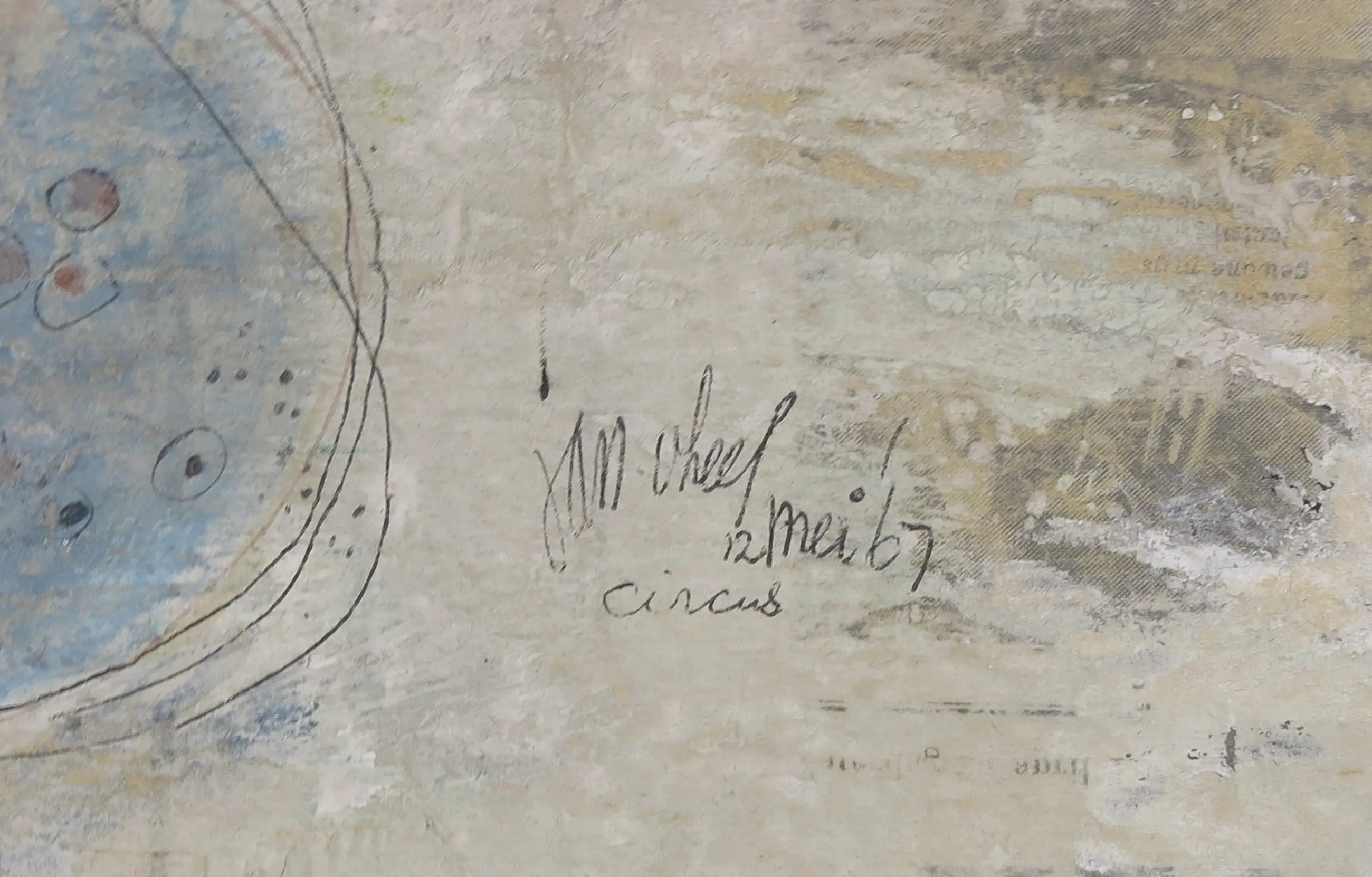 | Op een aantal plekken wat barstjes van verflaag en verfverlies, bijvoorbeeld in de hoek linksboven (zie detailfoto). Deels (waarschijnlijk) onderdeel van de voorstelling, deels door veroudering. | |||||||||||
