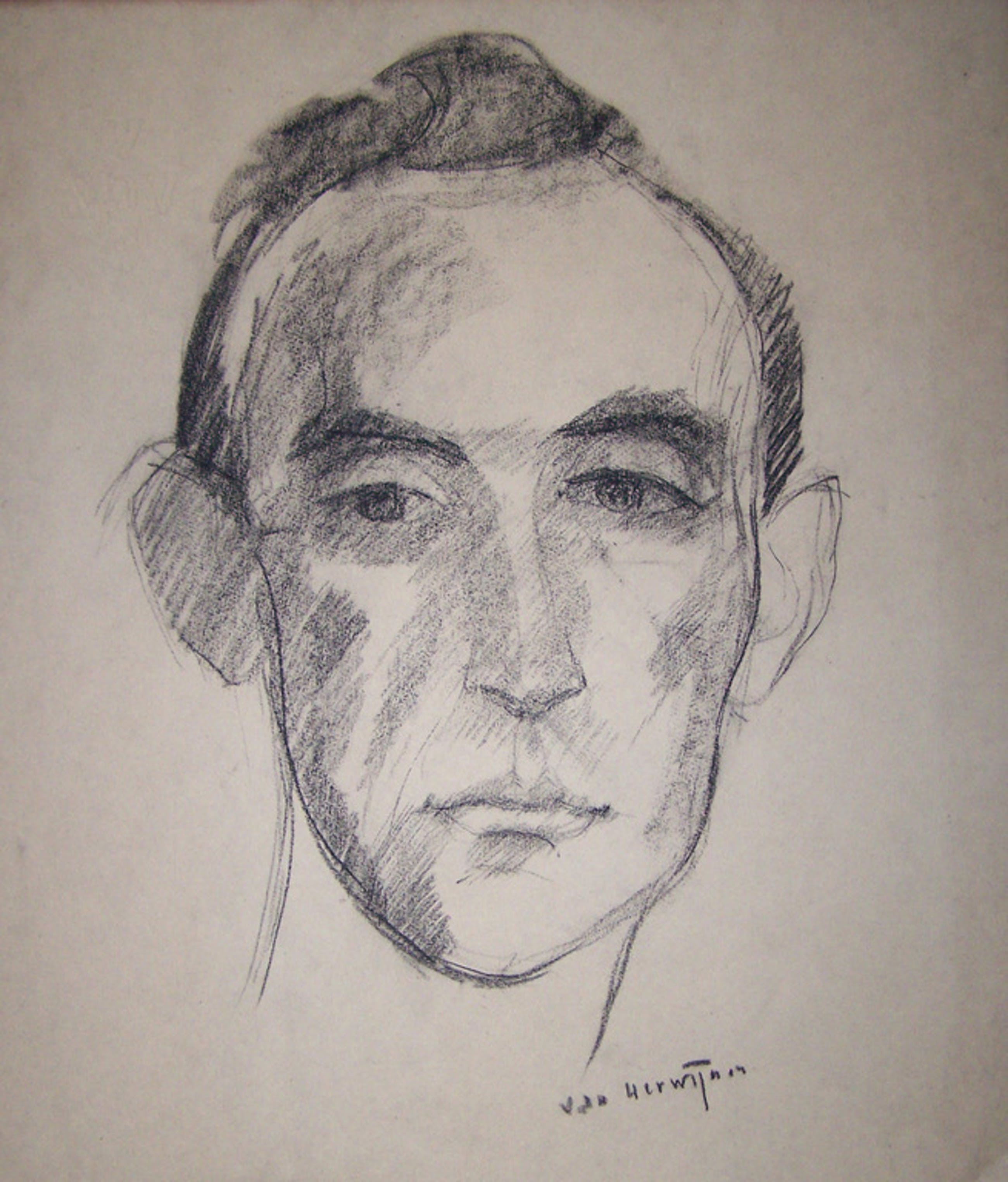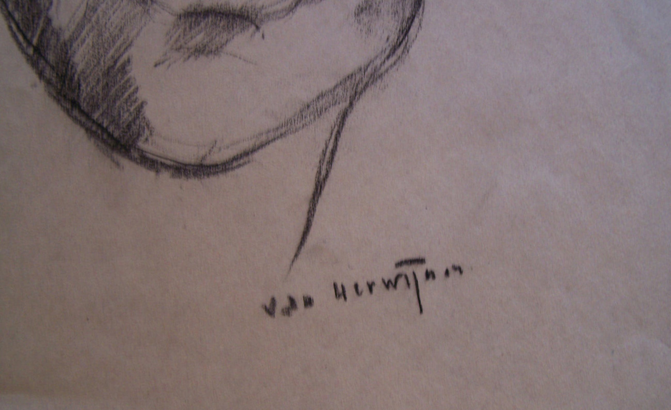 Een prachtig portret van de hand van deze schilder die tot de Bergense school wordt gerekend. Tekening is in goede conditie. 46 x 36 cm