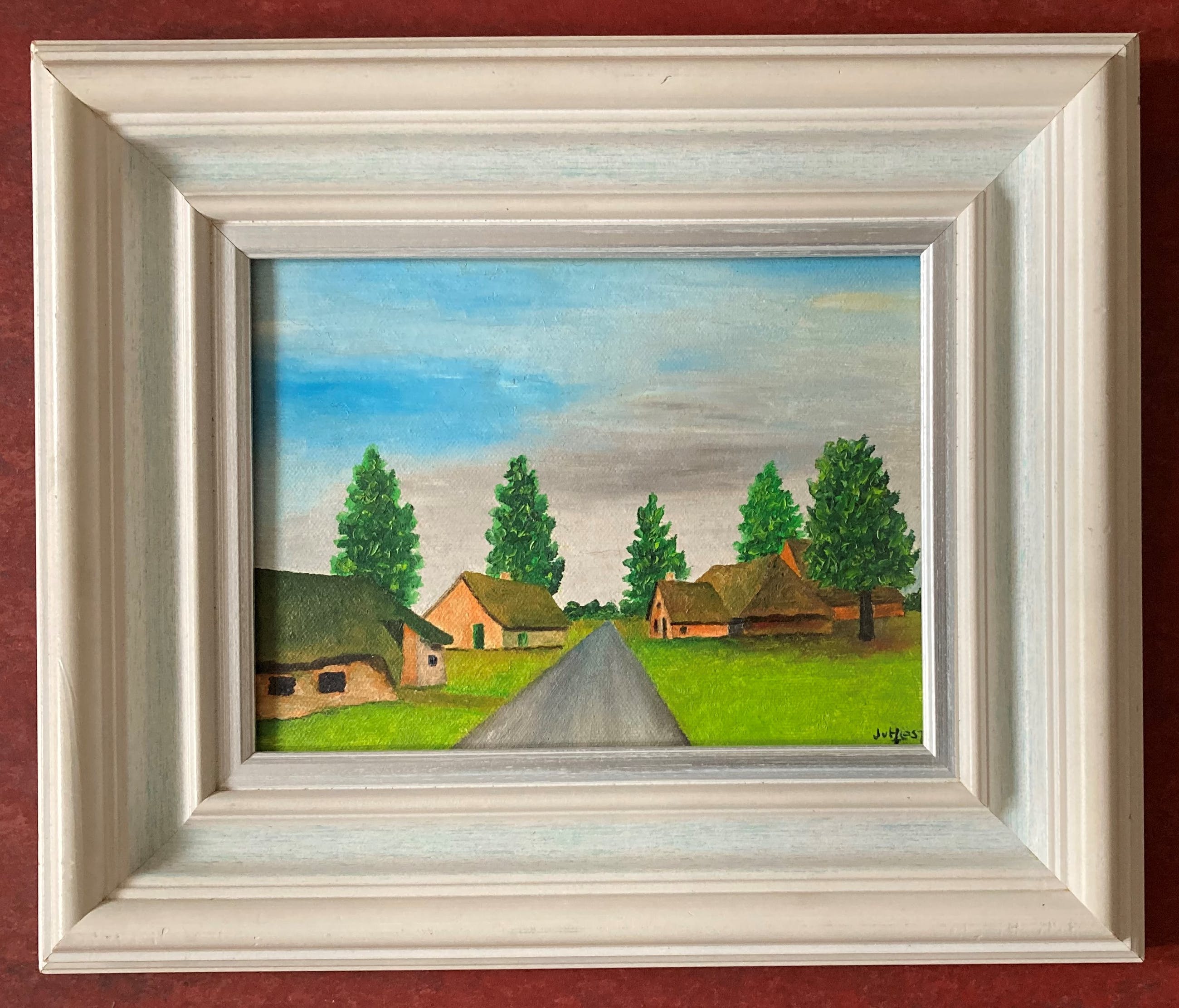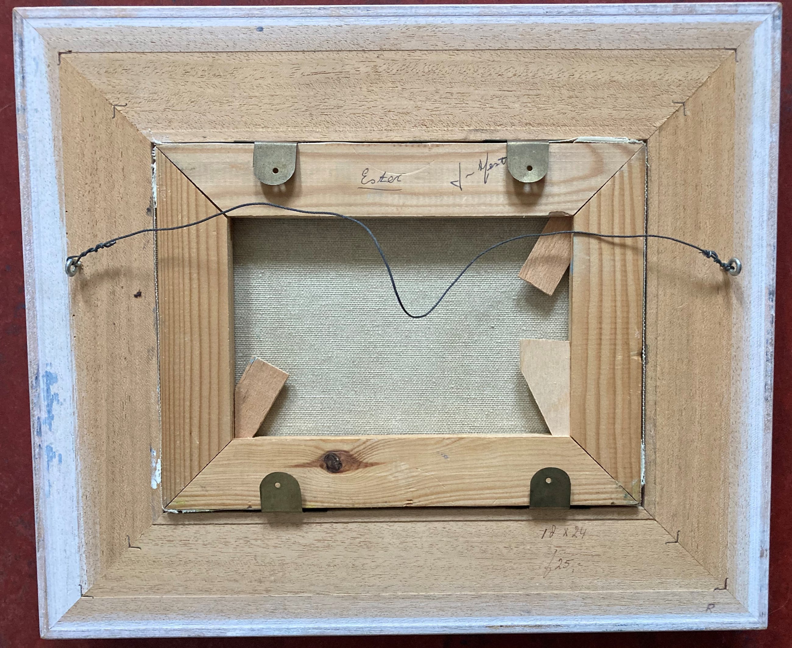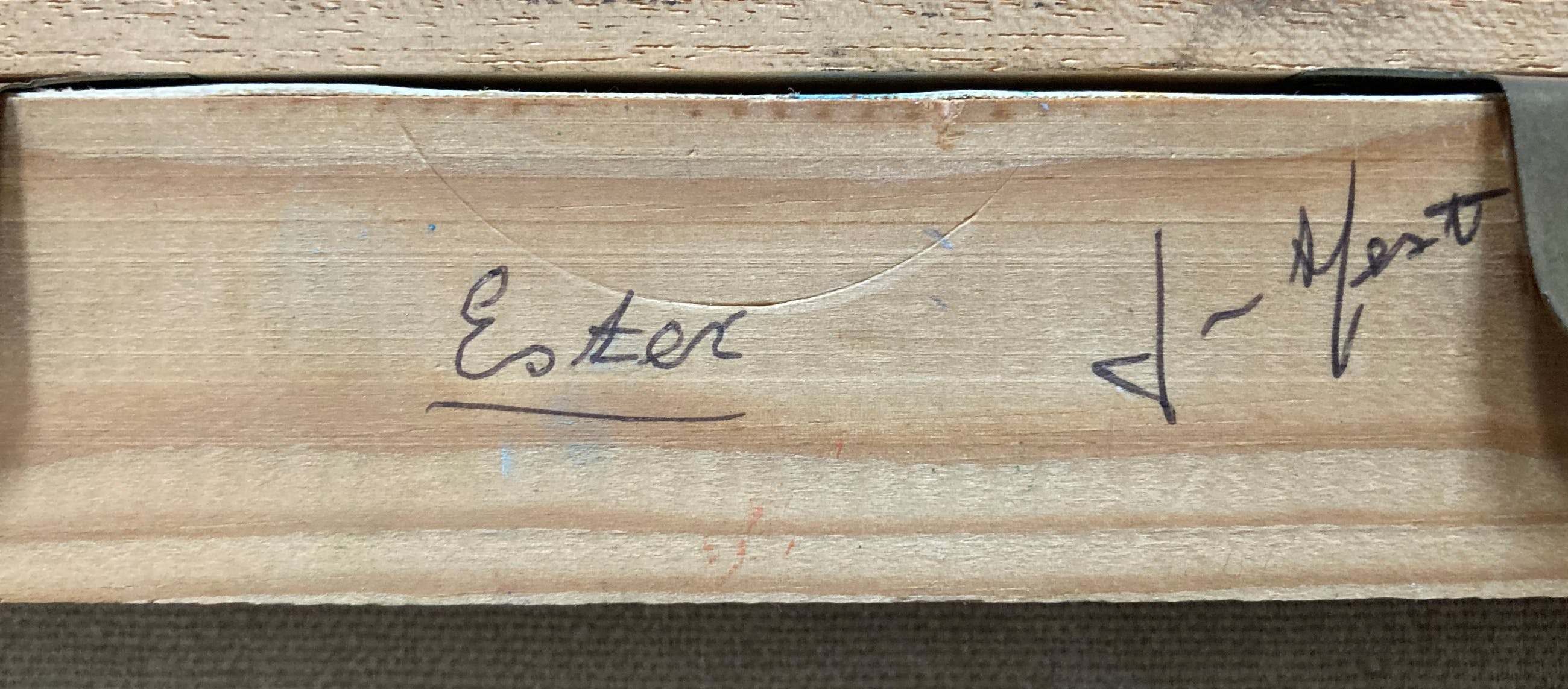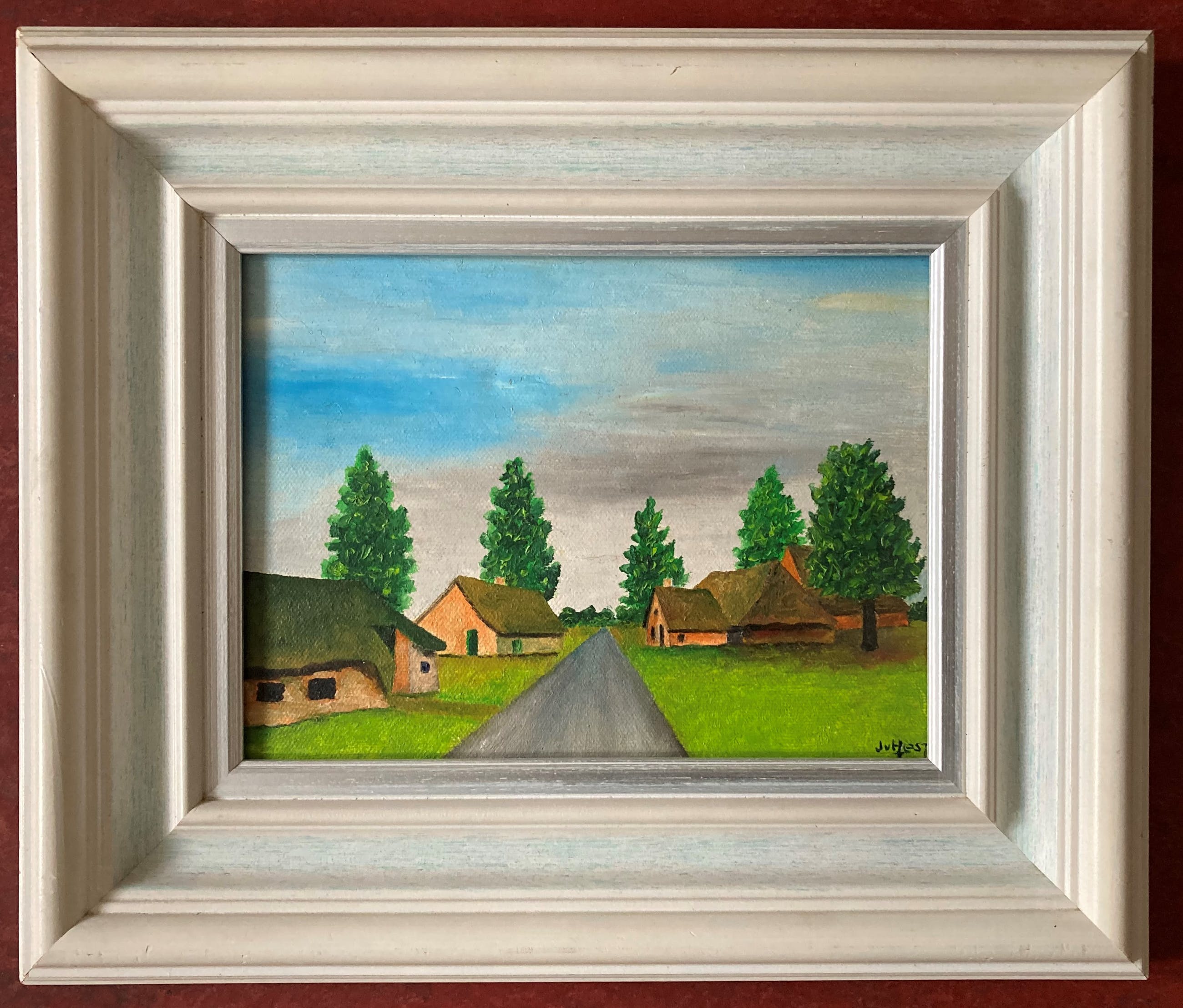 Een fraai klein schilderij van de Eindhovense kunstenaar Van Hest. Met passende houten lijst, wit met zachtblauw accent. Achterzijde vermeldt: "Ester'. Bij voorkeur ophalen in Eindhoven. Verzending voor risico koper.