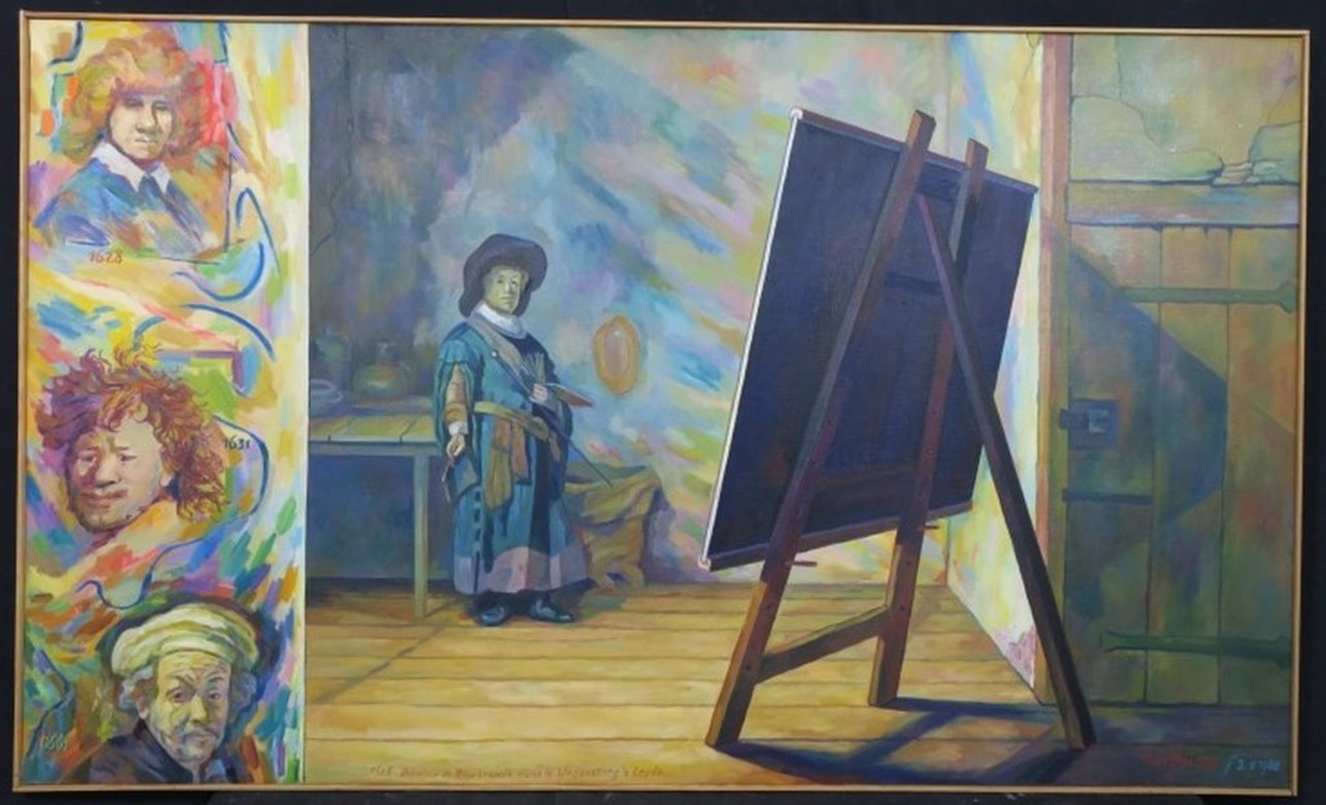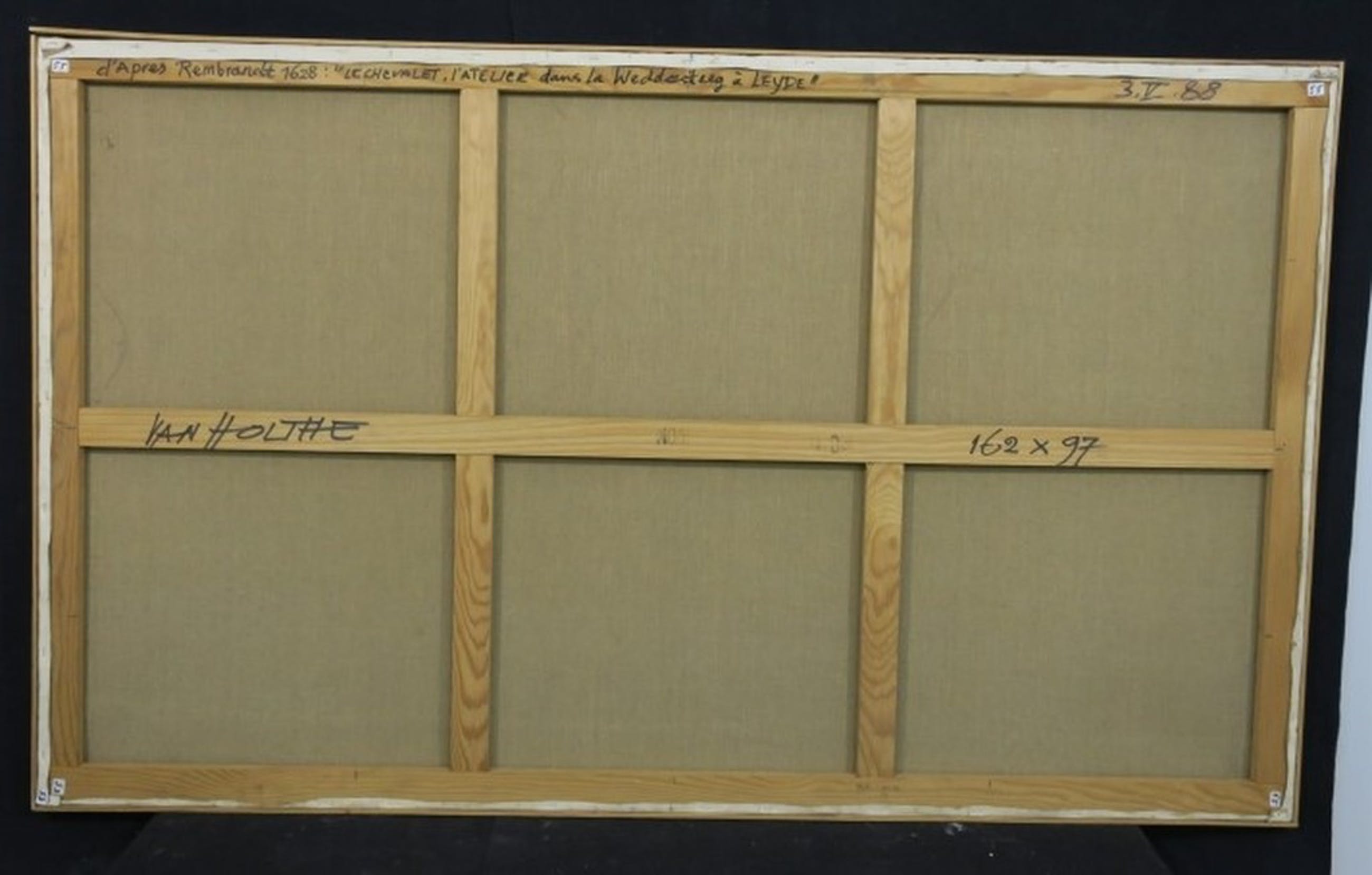 Titel: d'Apres Rembrandt 1628: Le Chevalet, l'Atelier dans la Weddesteeg à Leyde