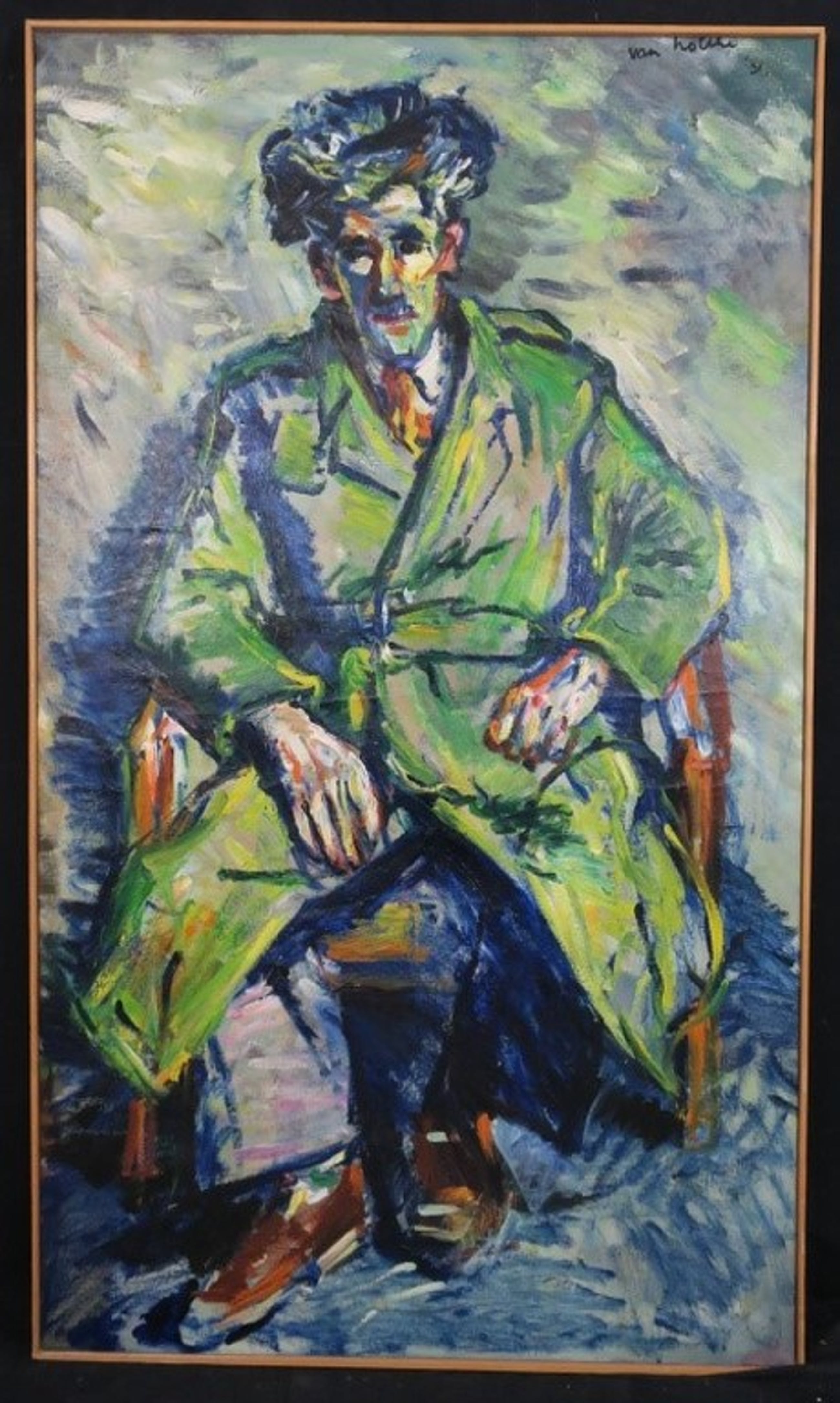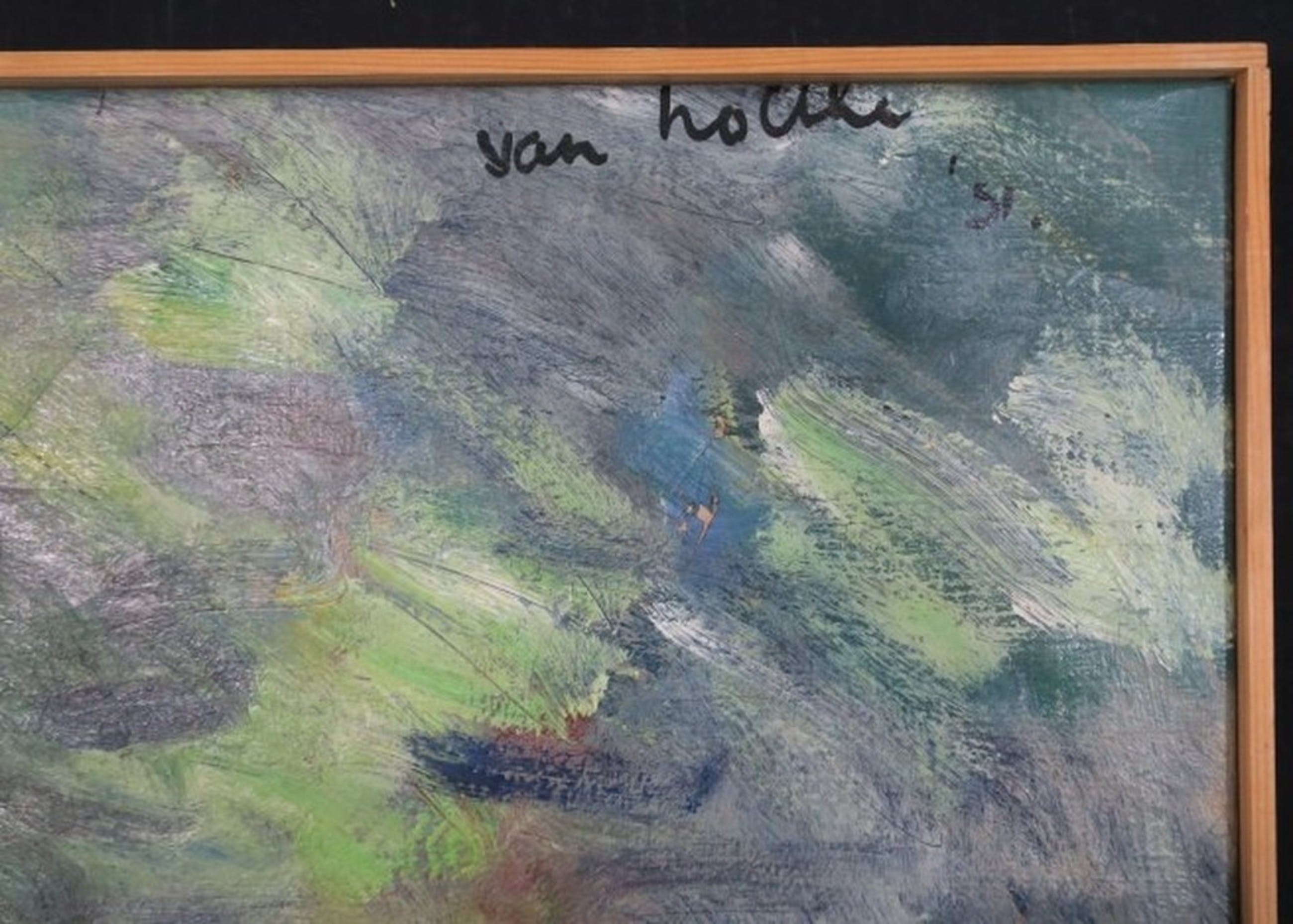 Conditie: In goede staat, maar met licht craquelé in de verflaag van het gehele doek en enkele kleine stukjes verfverlies (zichtbaar op de foto van de signatuur)