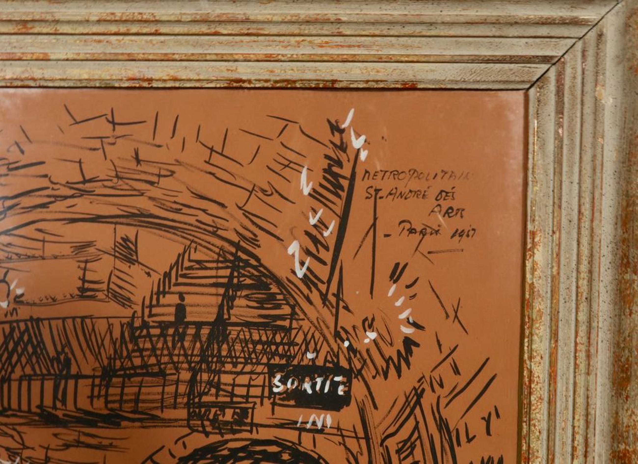 Conditie: In goede staat. Het papier is iets gaan golven in de lijst.