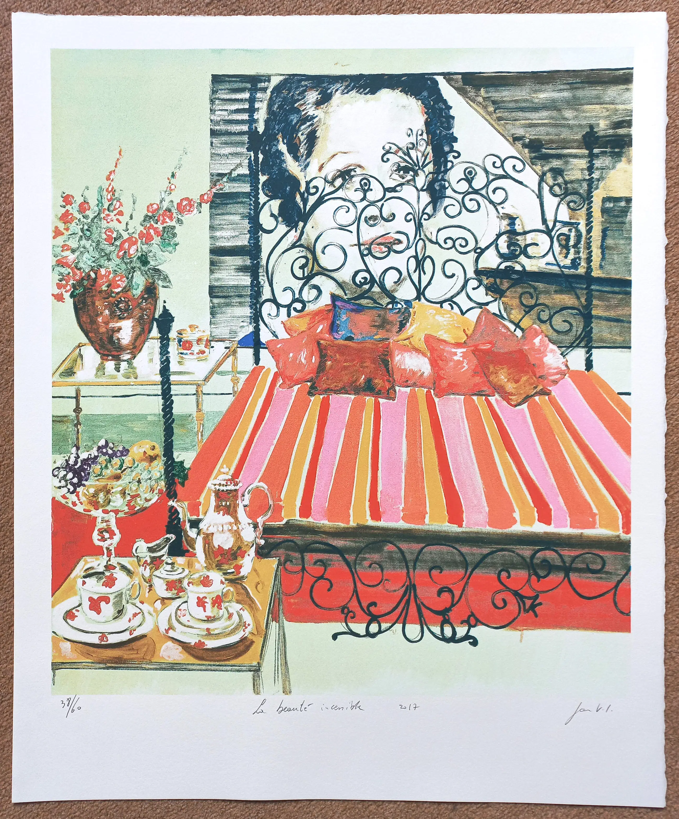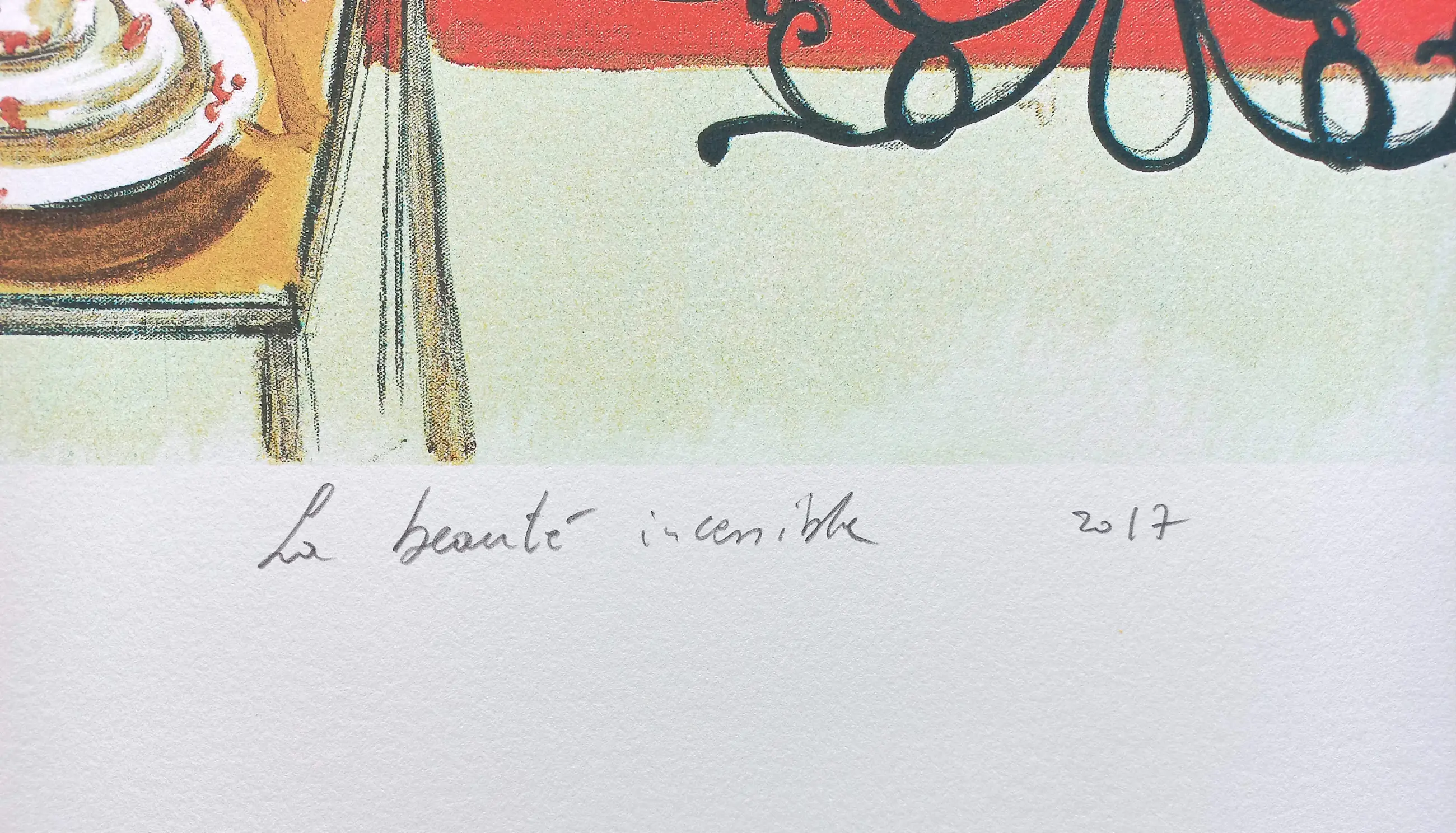Mooi, karakteristiek werk van de Belgische kunstenaar Jan Van Imschoot. Zeefdruk op BFK Rives papier, met potlood gesigneerd, getiteld, gedateerd (2017) en genummerd (38/60). In mint conditie.