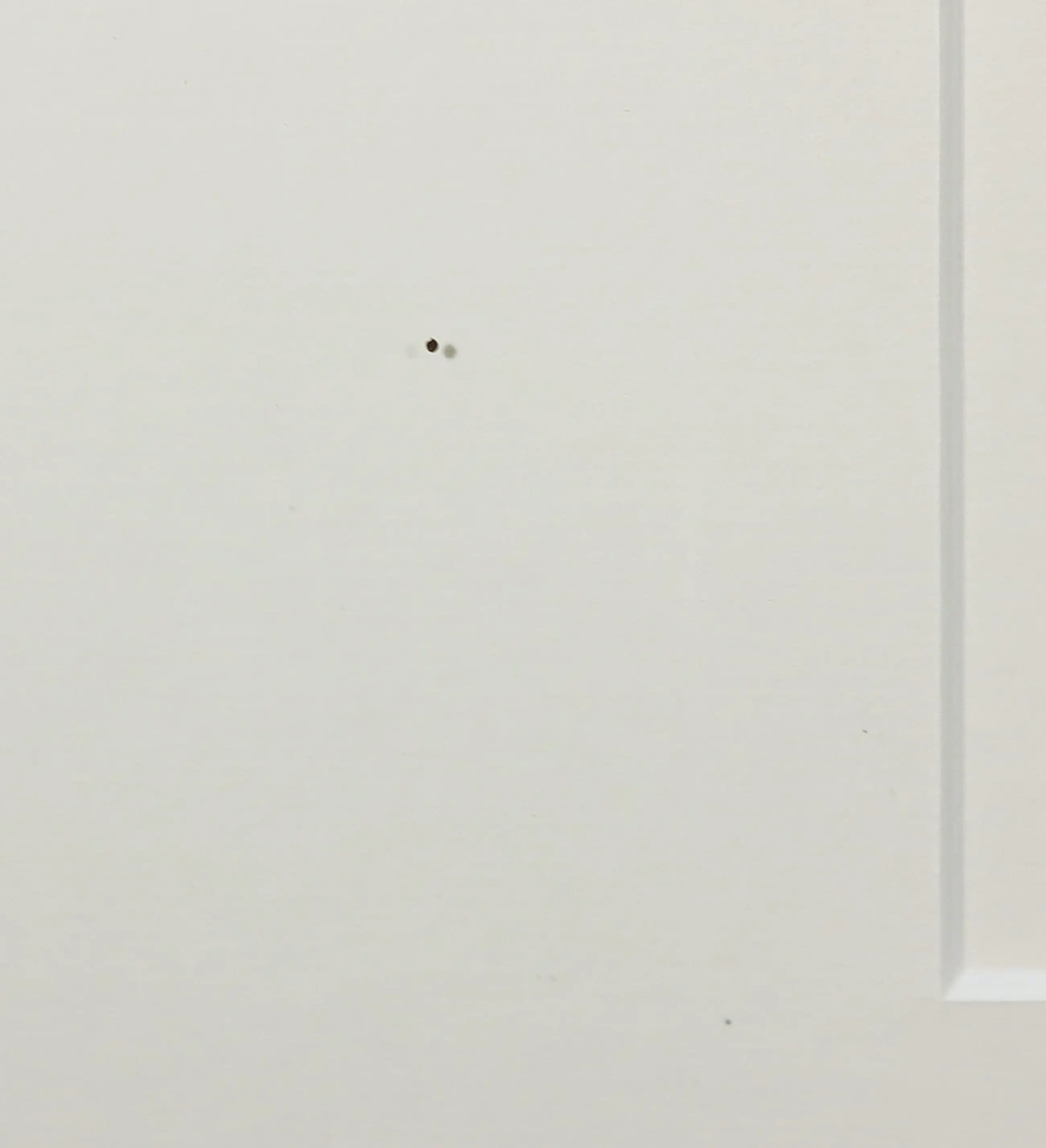 Klein vouwen in de hoekjes van het papier. Daarnaast wat vuiltjes achter de glasplaat. | |