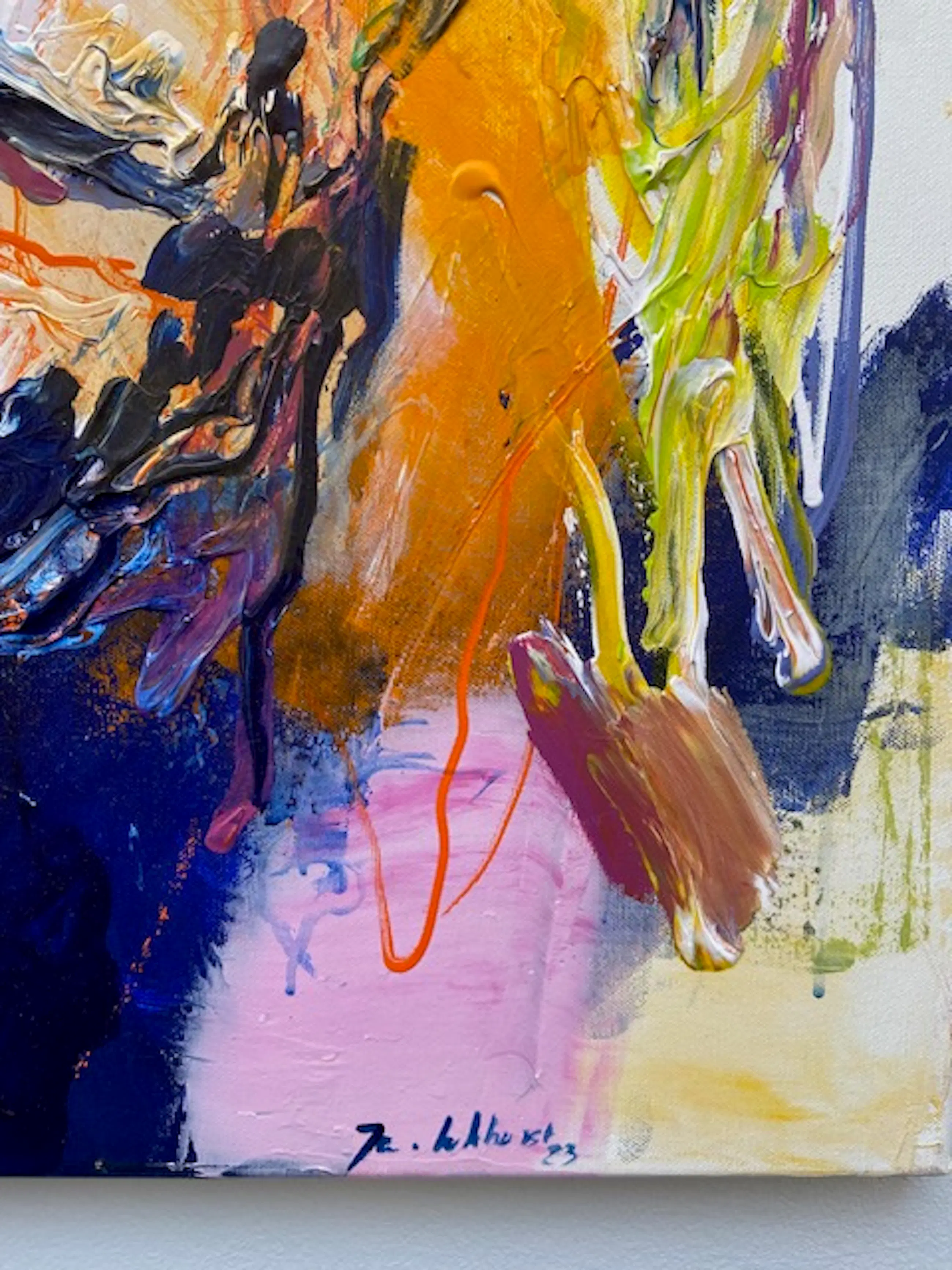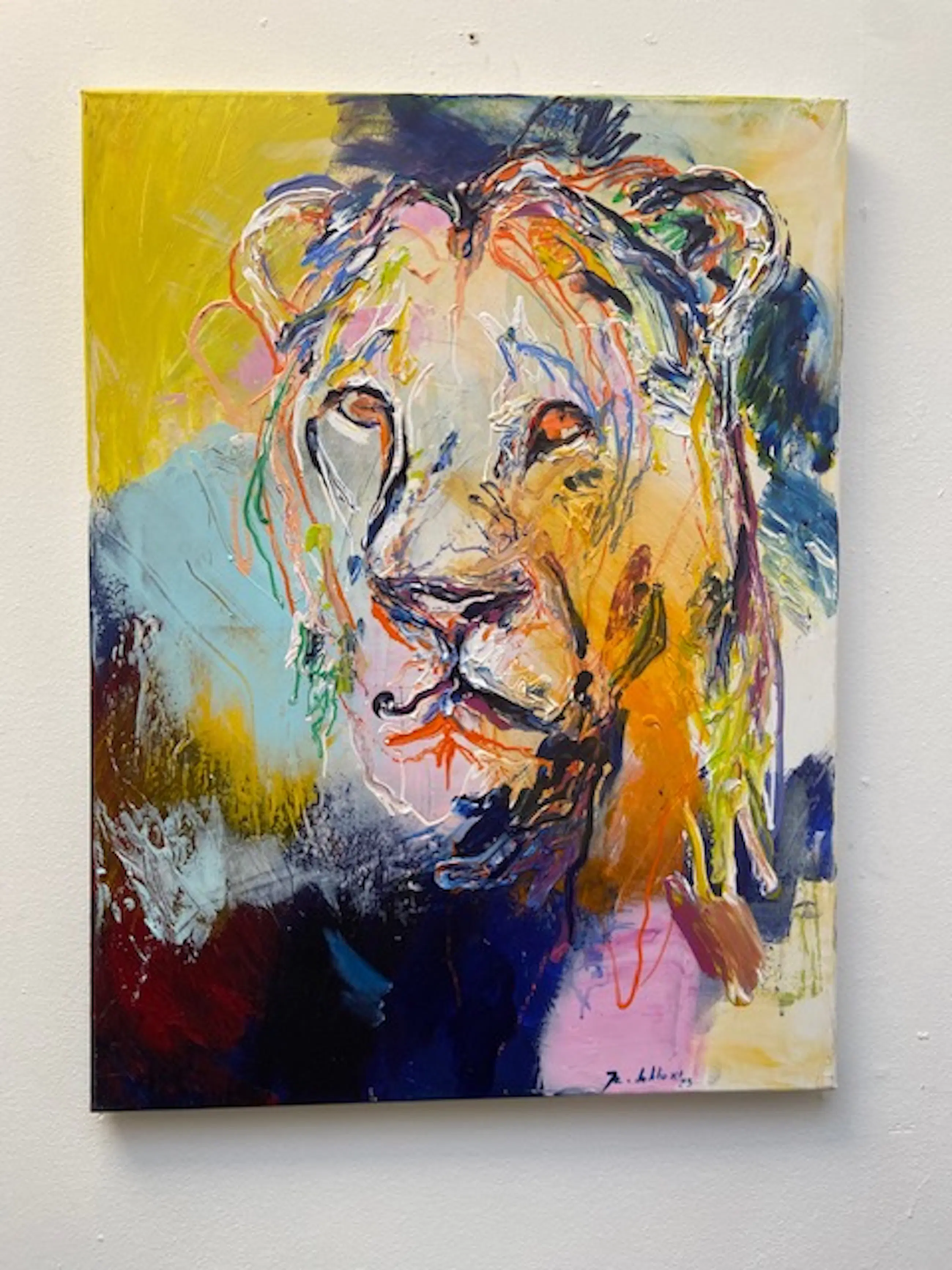 Prachtig werk van deze kunstenaar, vooral geliefd vanwege zijn dierenschilderijen. Met veel kleur en dik opgezet. De koper kan het werk naar eigen smaak zelf inlijsten.