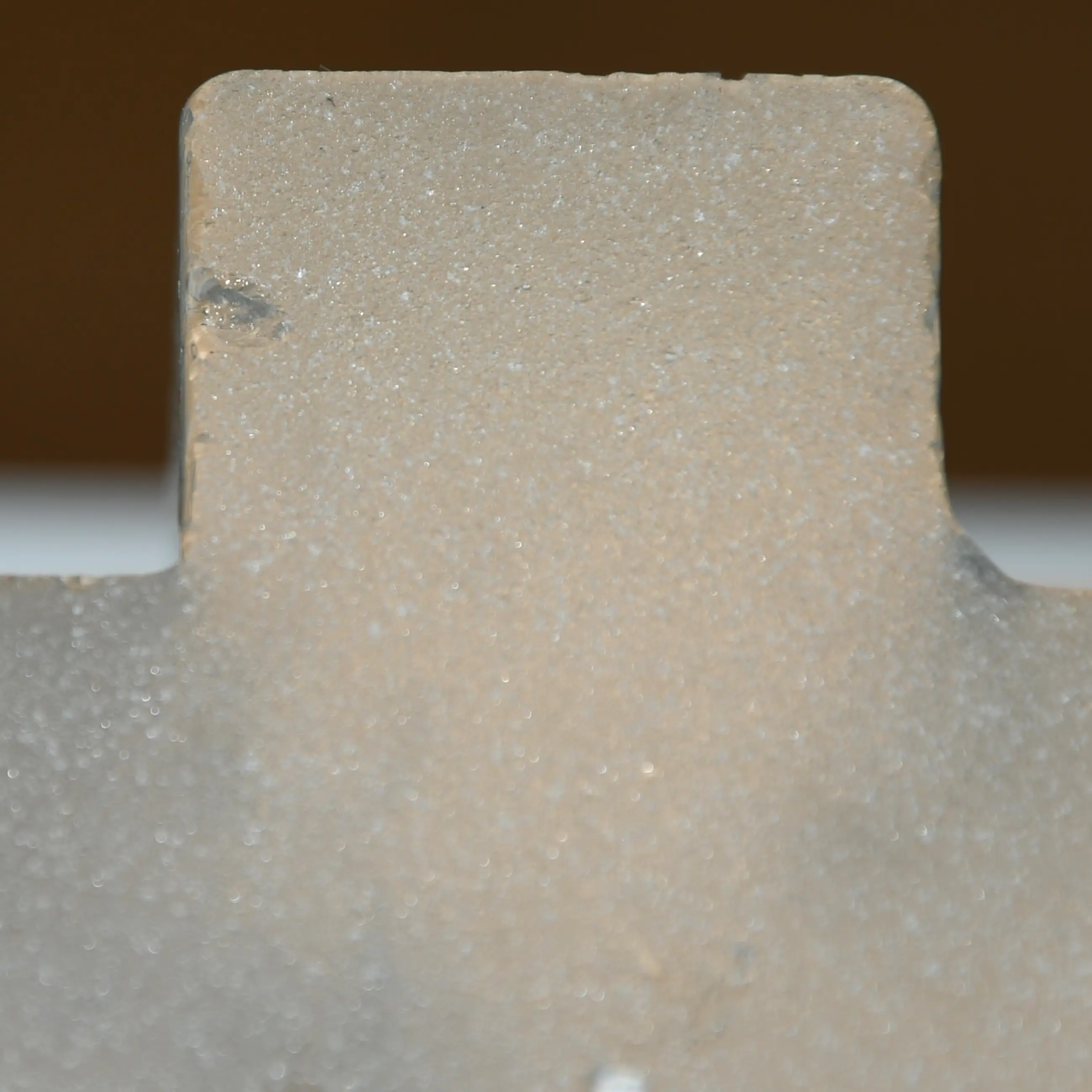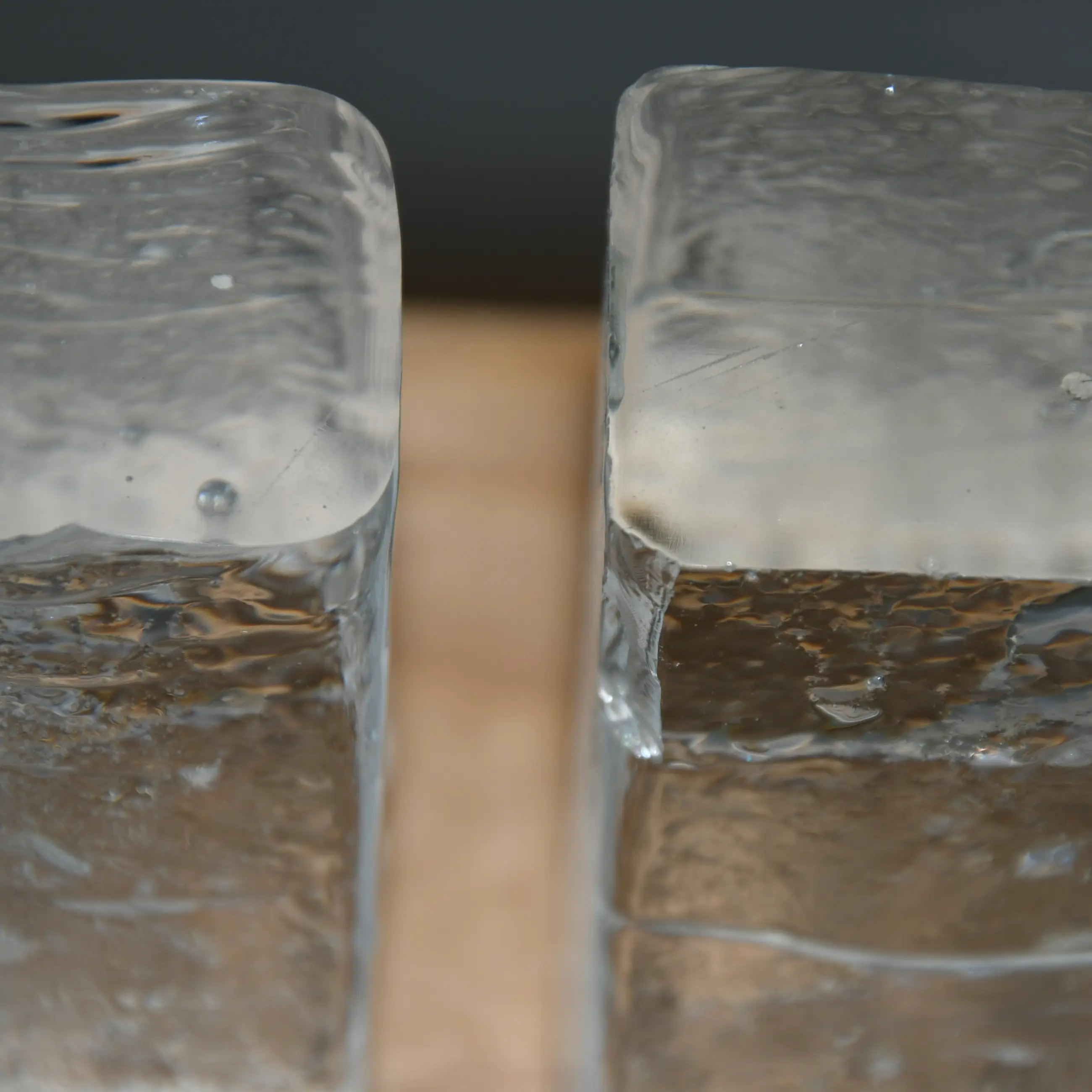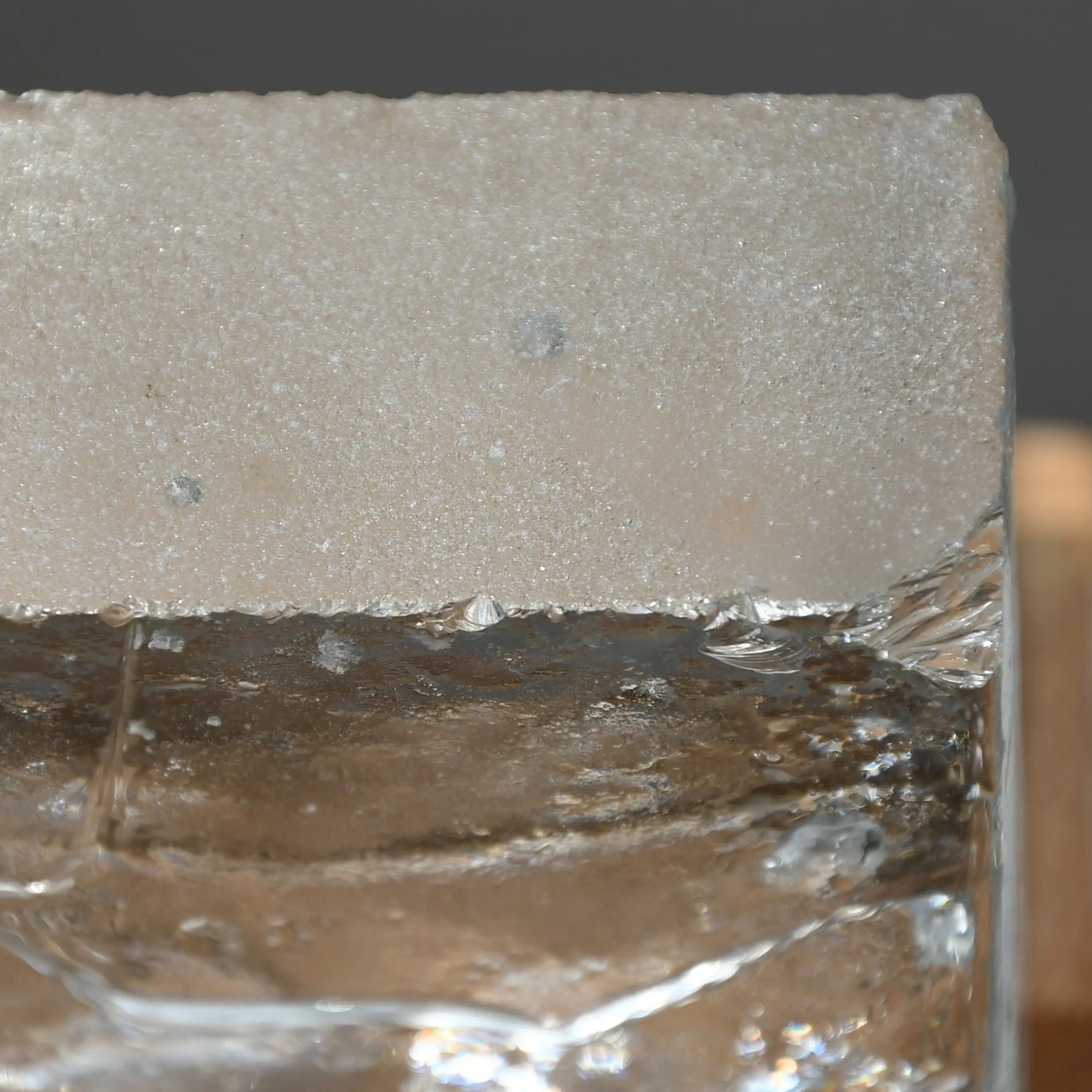 Beide glazen sculpturen hebben oneffenheden aan de buitenranden welke waarschijnlijk komt door het bewerken van het het glas waardoor er onregelmatigheden aan zitten, zoals fleabites en chips.