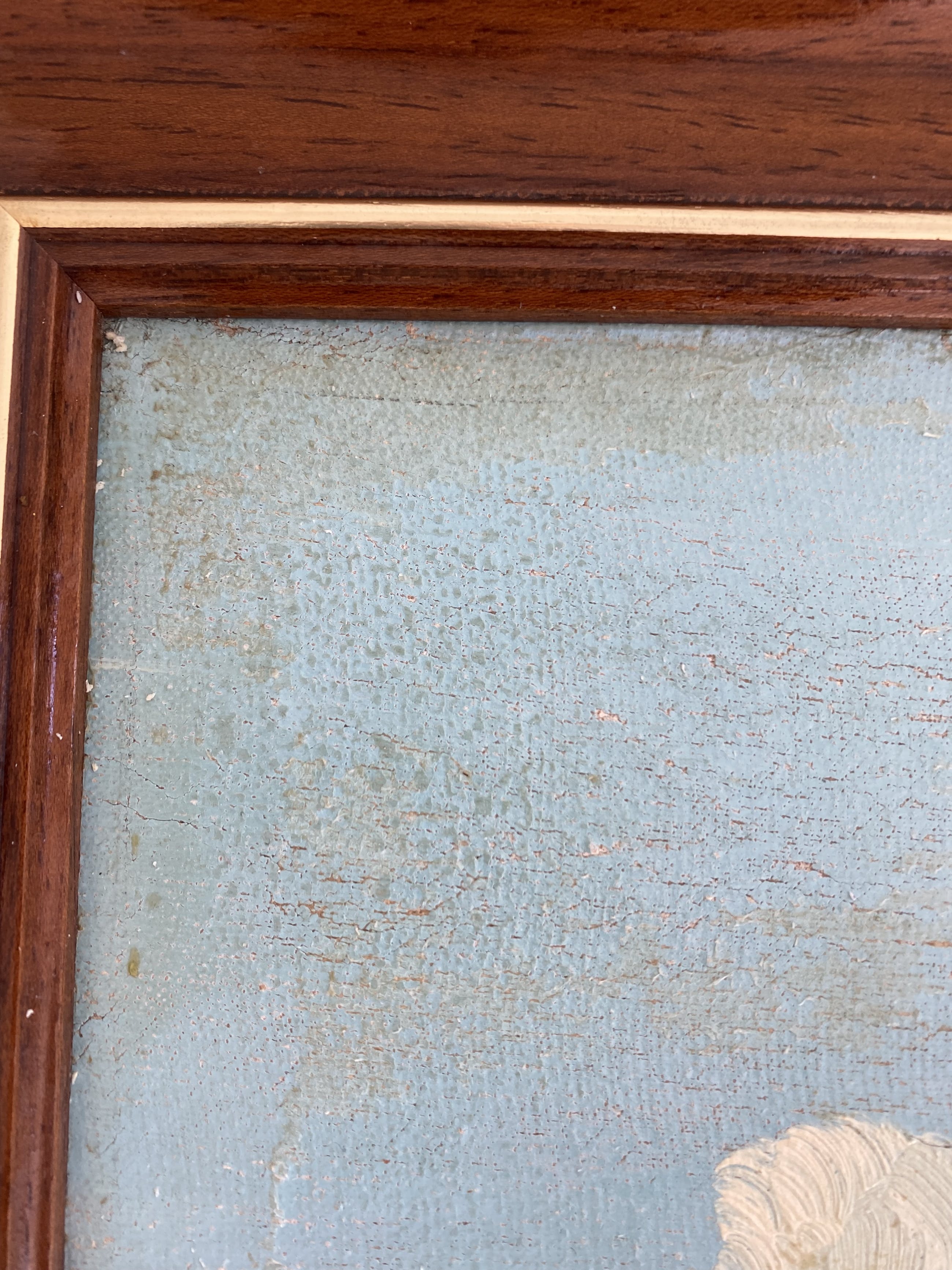 Het schilderij verkeert in goede conditie. Afgezien van wat vuil in de linkerbovenhoek (zie ook foto's) is het schilderwerk in prima staat en is er nagenoeg geen craquelé.