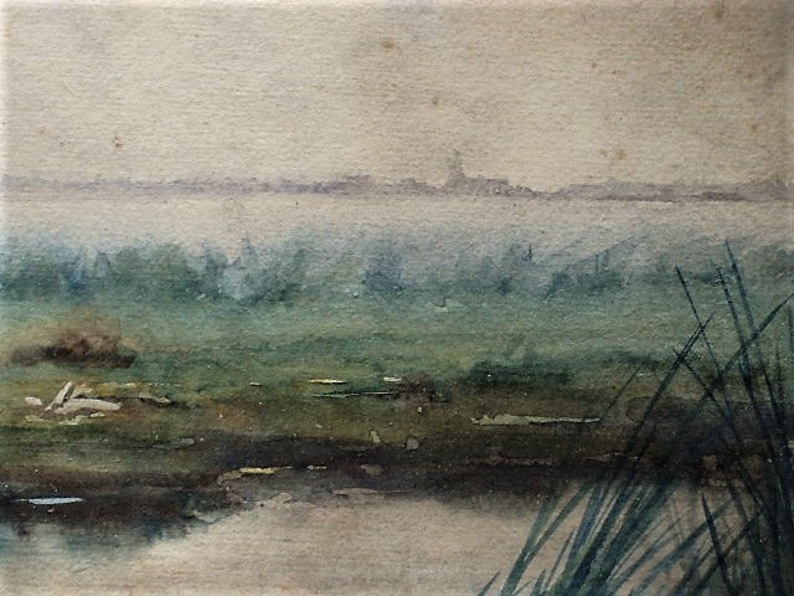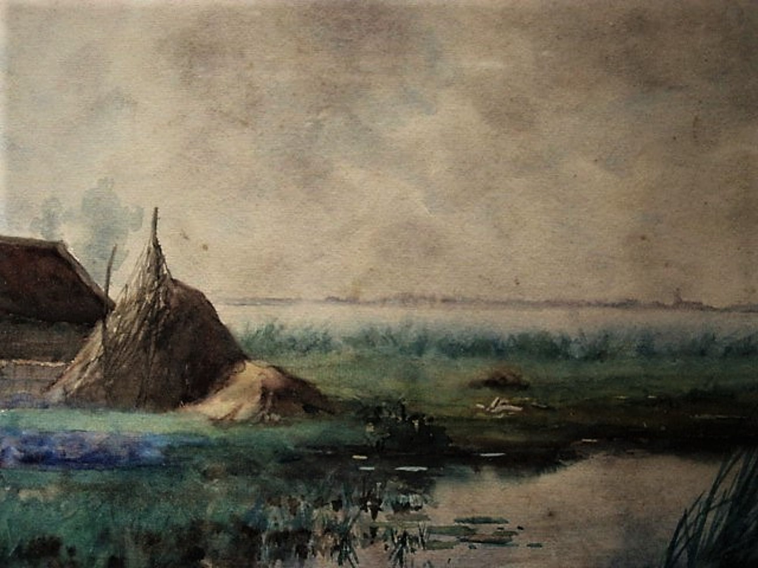 Jan van Rhijnnen - Sfeervol Aquarel "Boerderij bij het dorp Noorden" gesigneerd ca. 1900 - Verkocht