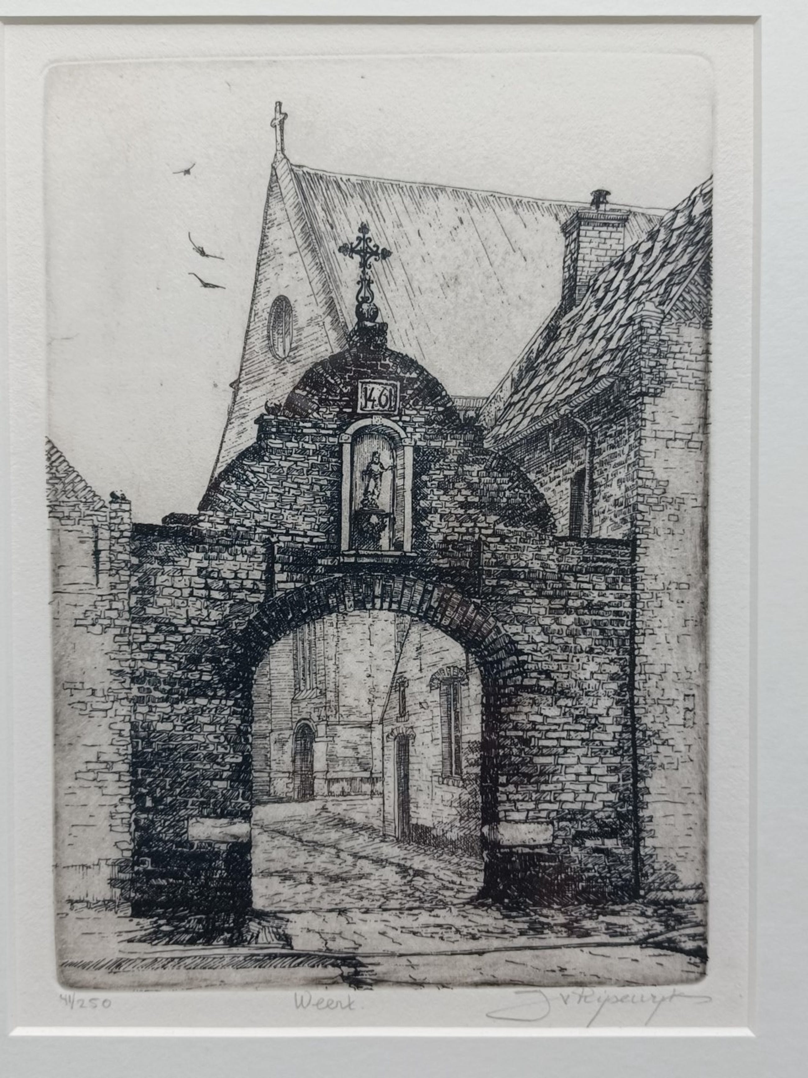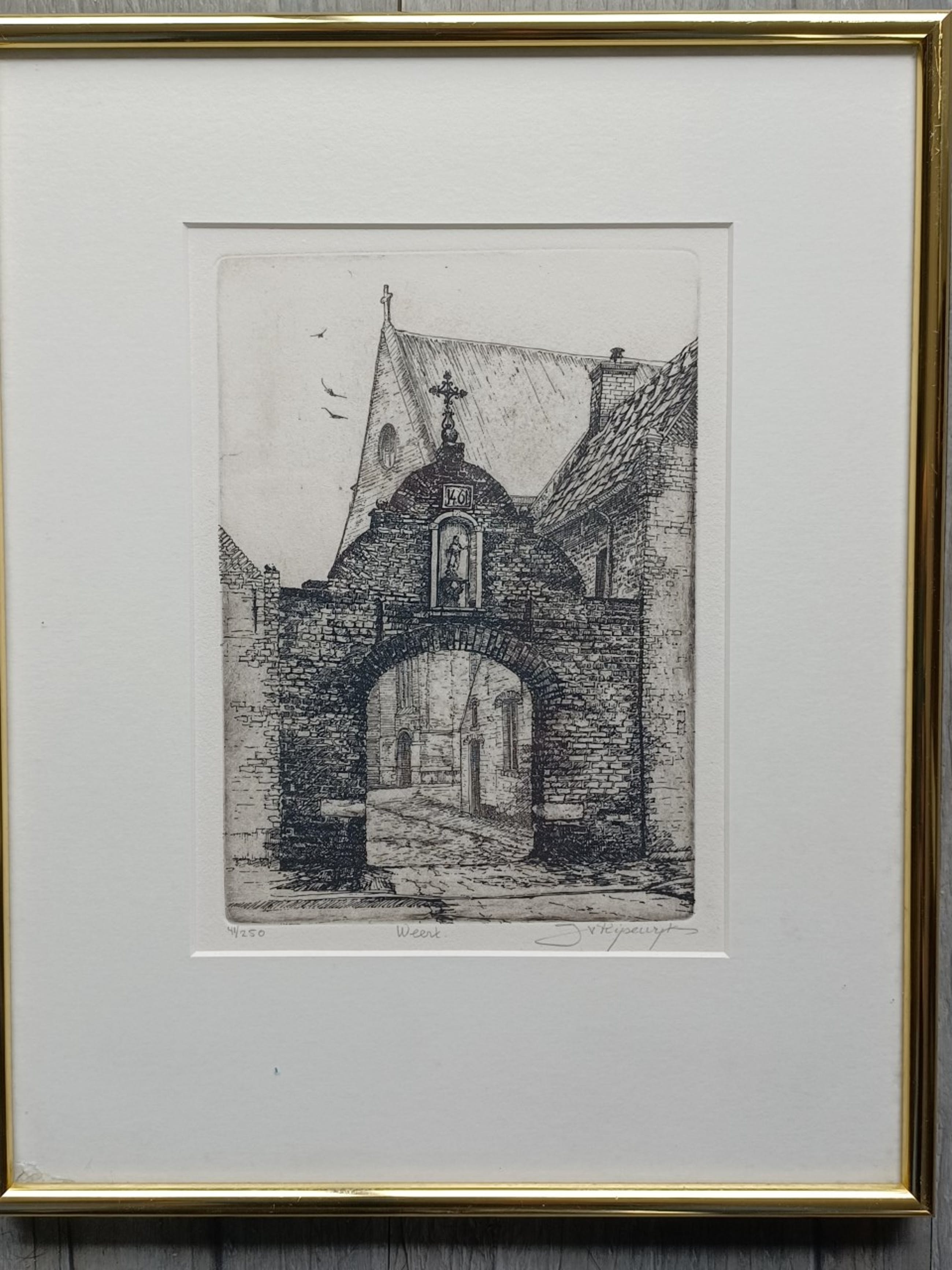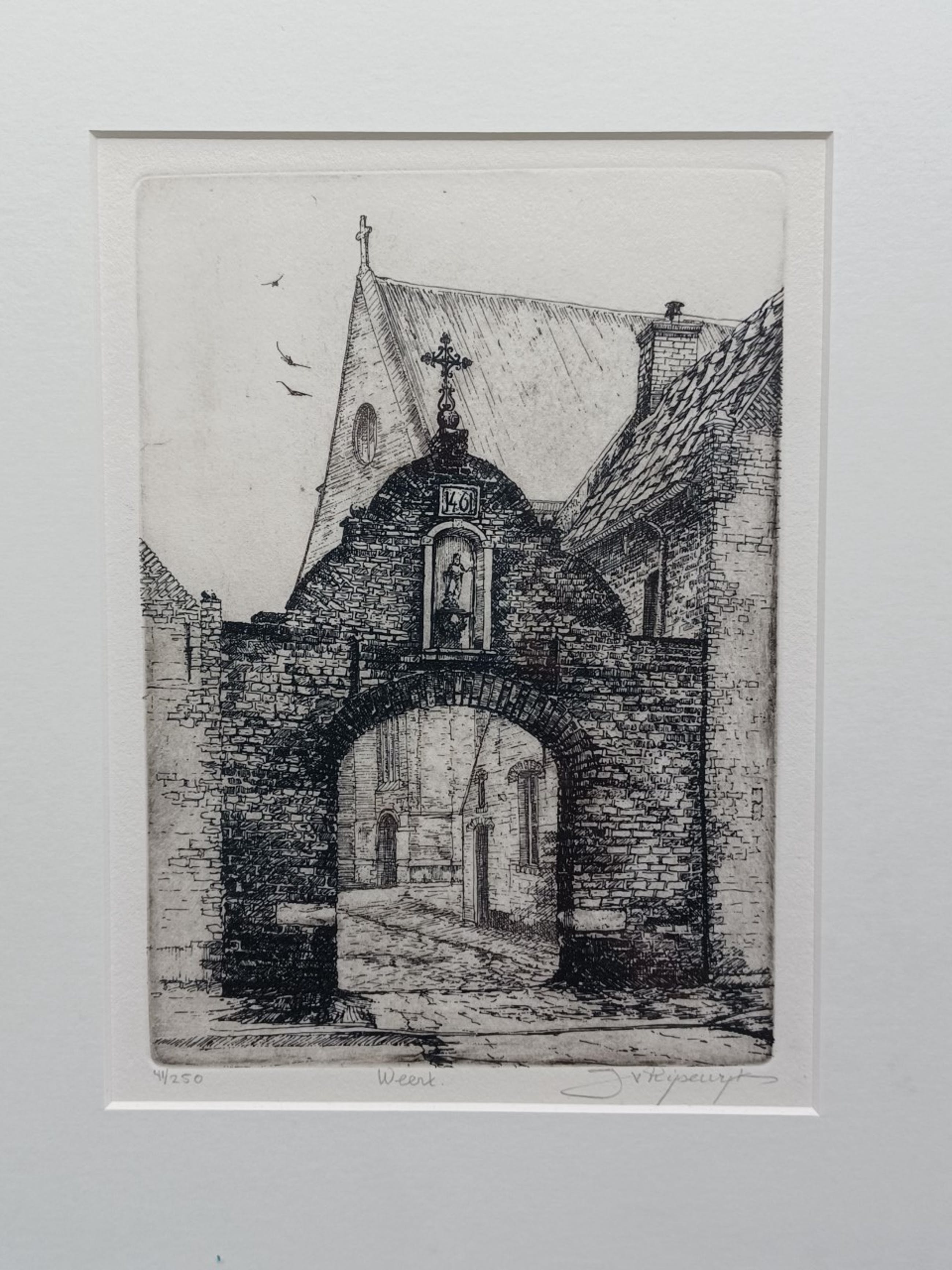Mooi ingelijste ets van Weert. Wordt zeer goed verpakt verzonden.