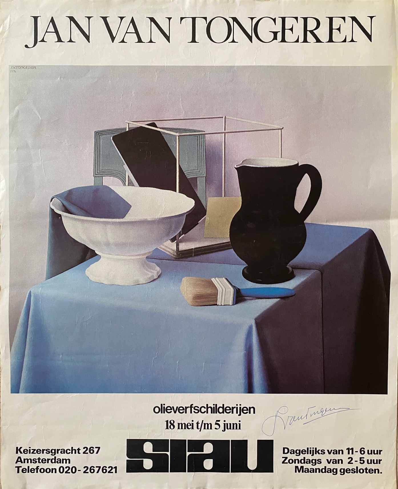 Affiche uit 1977. Betreft expositie van werk van Jan van Tongeren in Galerie Siau in Amsterdam. Affiche is gesigneerd.