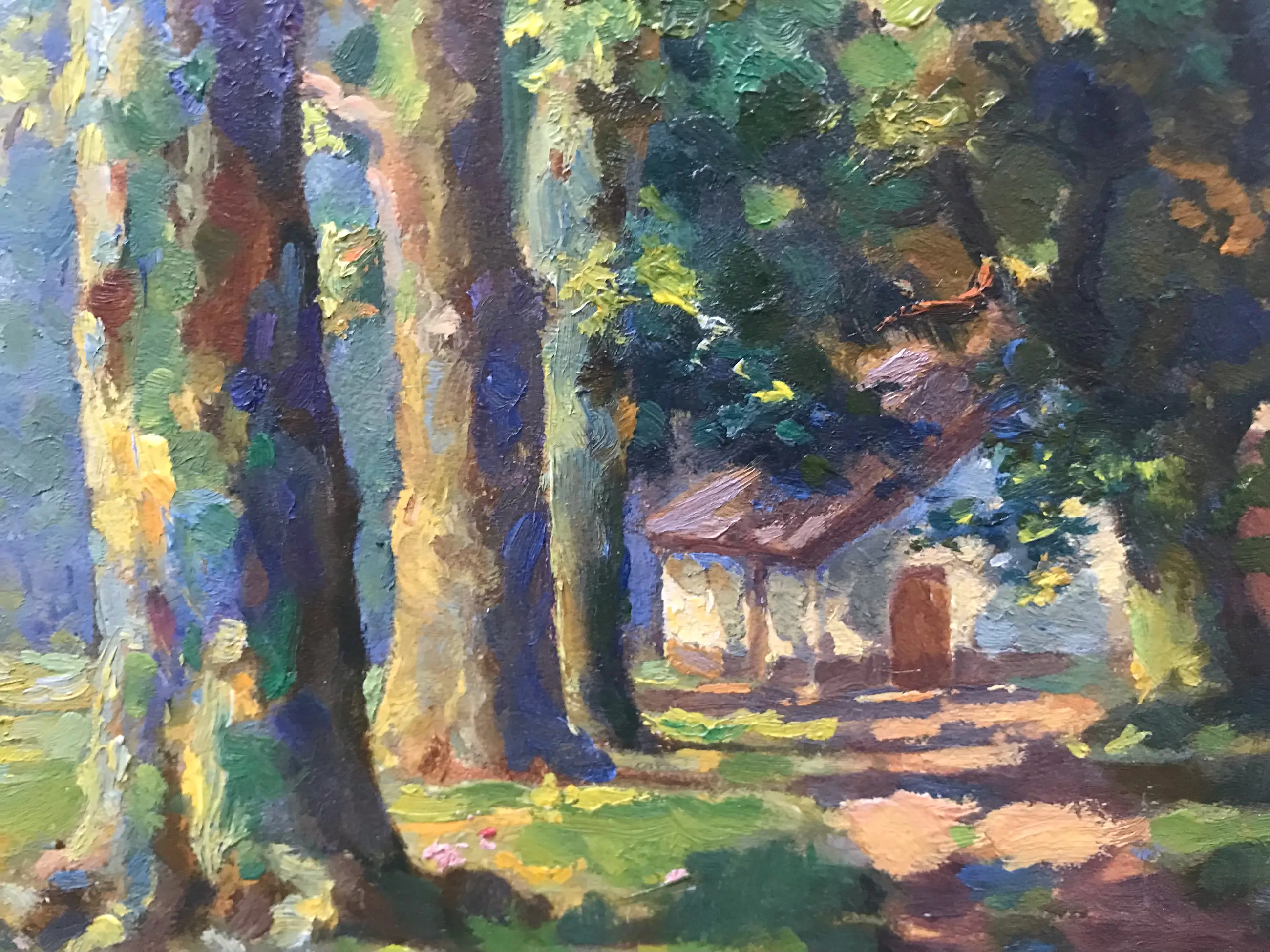 De staat van het schilderij is goed. Geen beschadigingen, waterschades of lijst problemen. Geen deuken. Lijst in uitstekende staat. Er zit een heel klein vlekje linksboven in de verf van de blauwe lucht, maar ik durf dat zelf niet te cleanen want ik ben zelf onervaren met schoonmaak van olieverfdoeken.