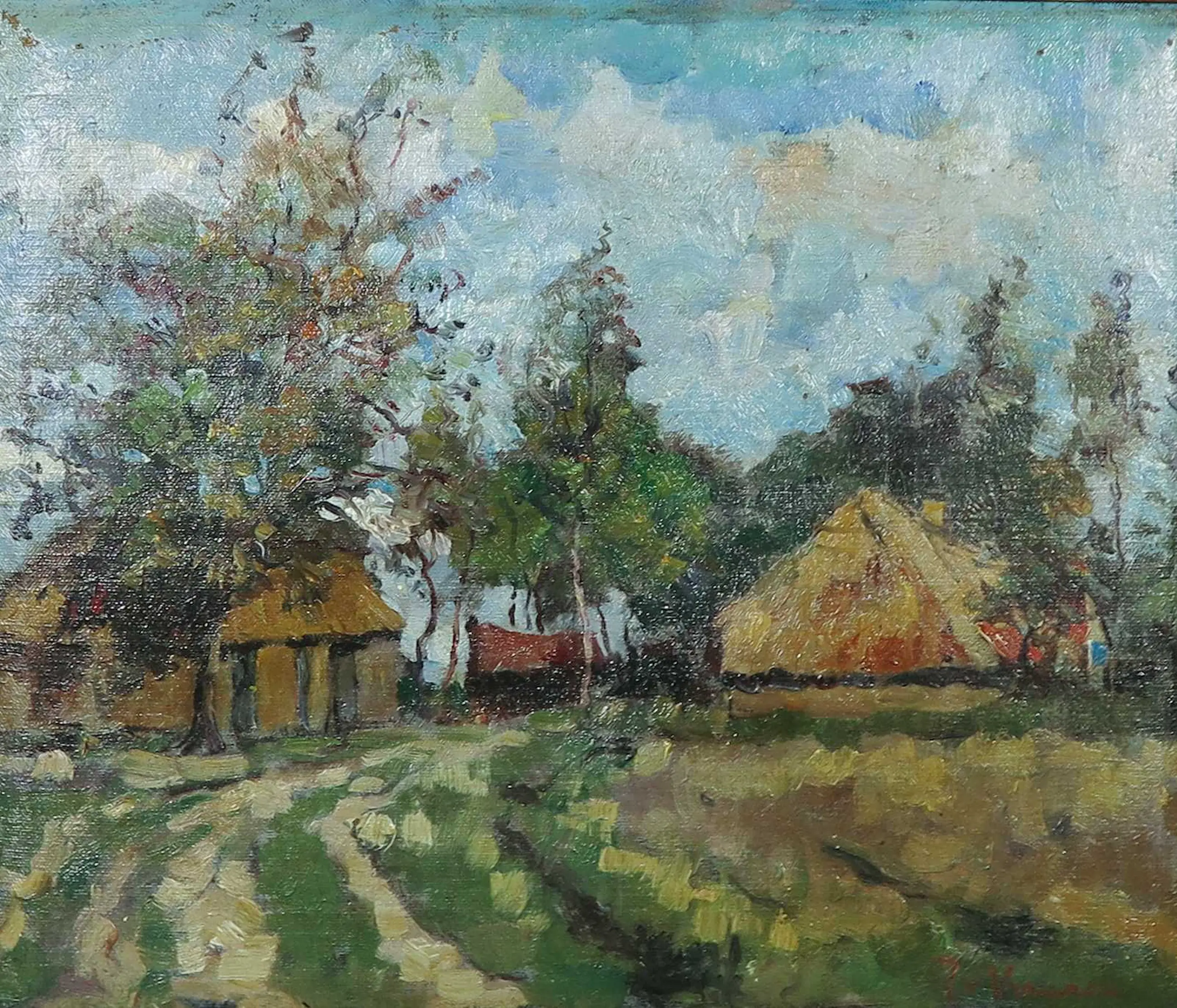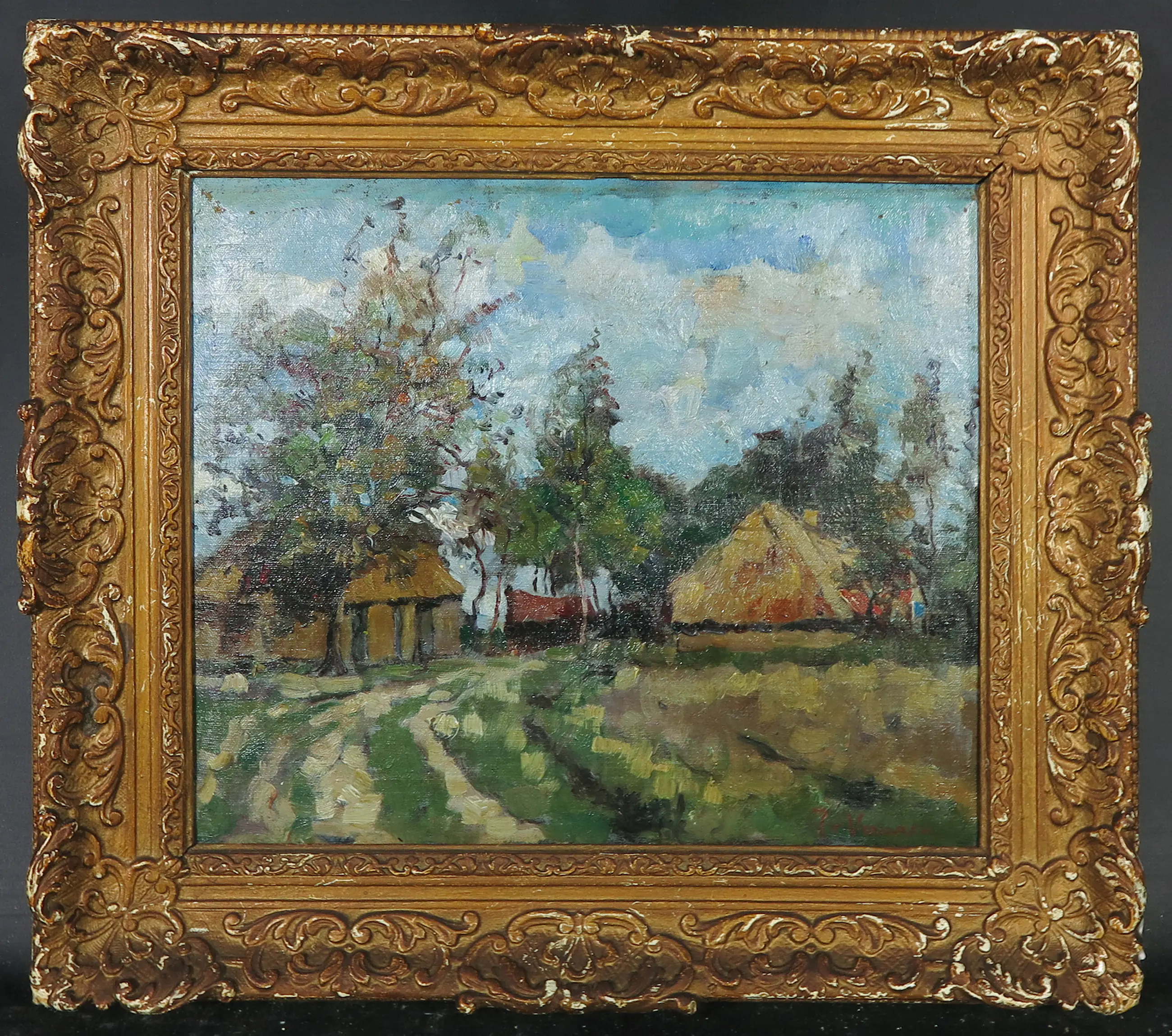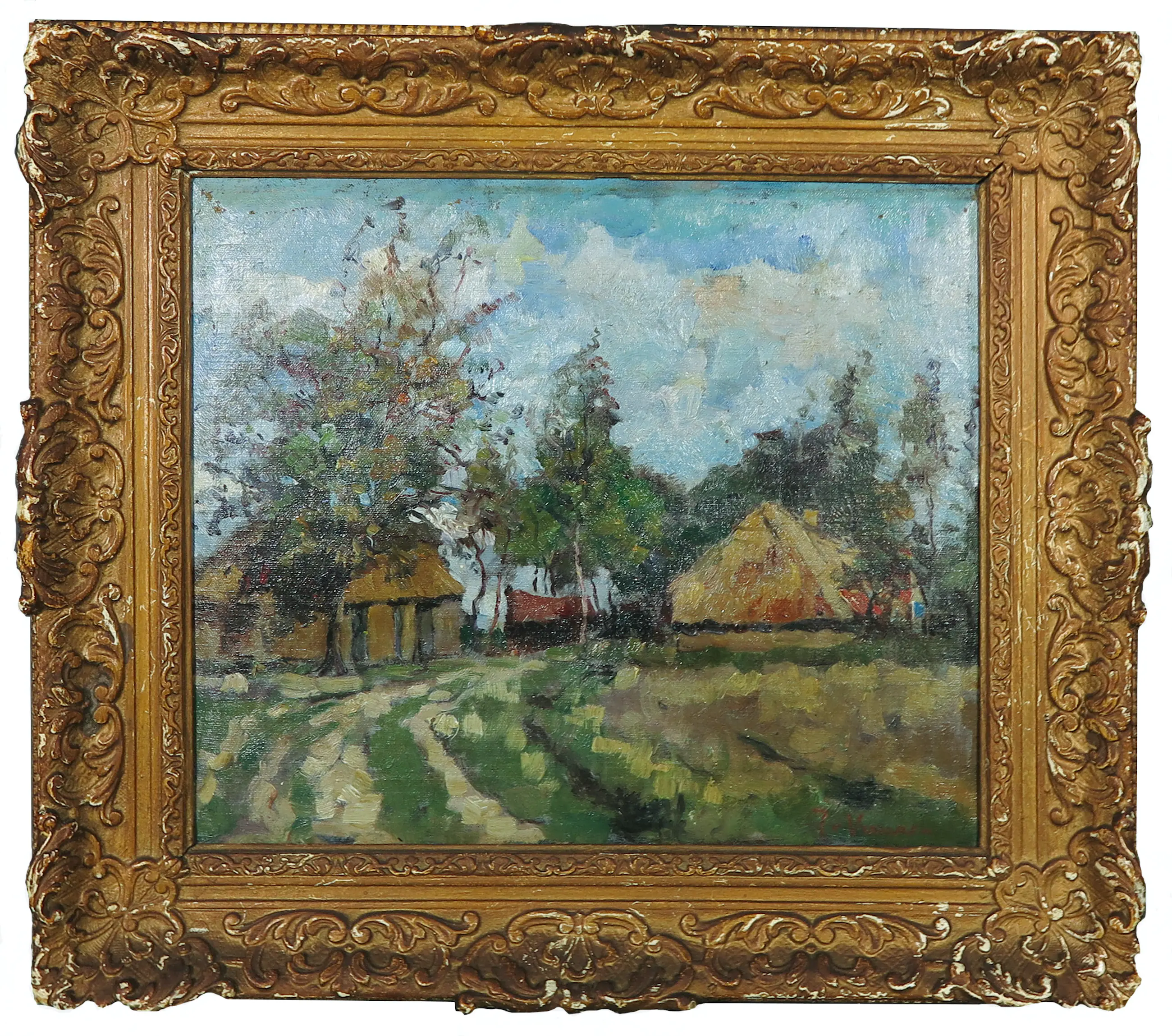 | Het werk dient opnieuw te worden gespannen. En heeft aan de bovenzijde op enkele plekjes met verfschade. (Zie detailfoto's) Daarnaast is de lijst aan vervanging toe. | |