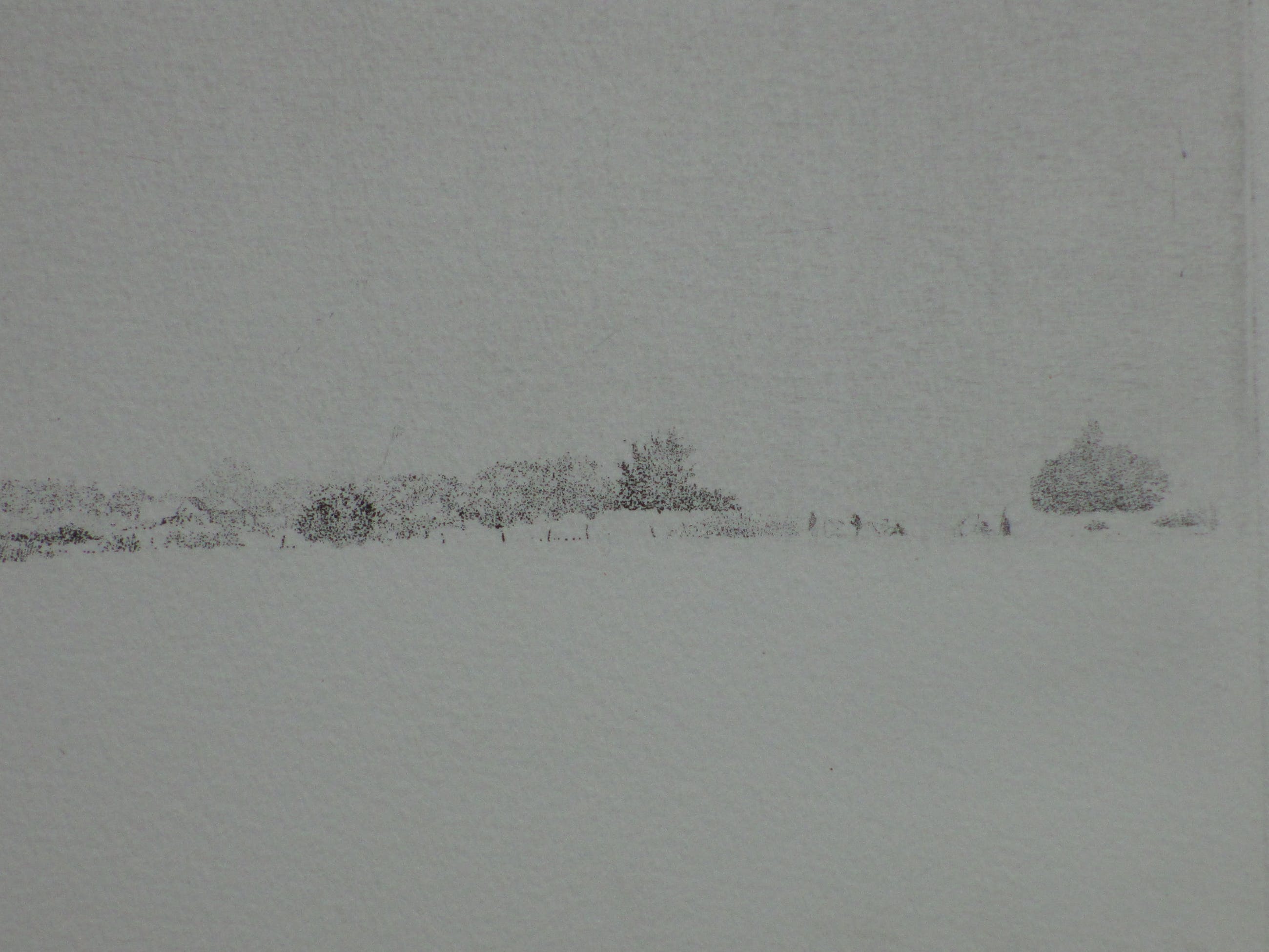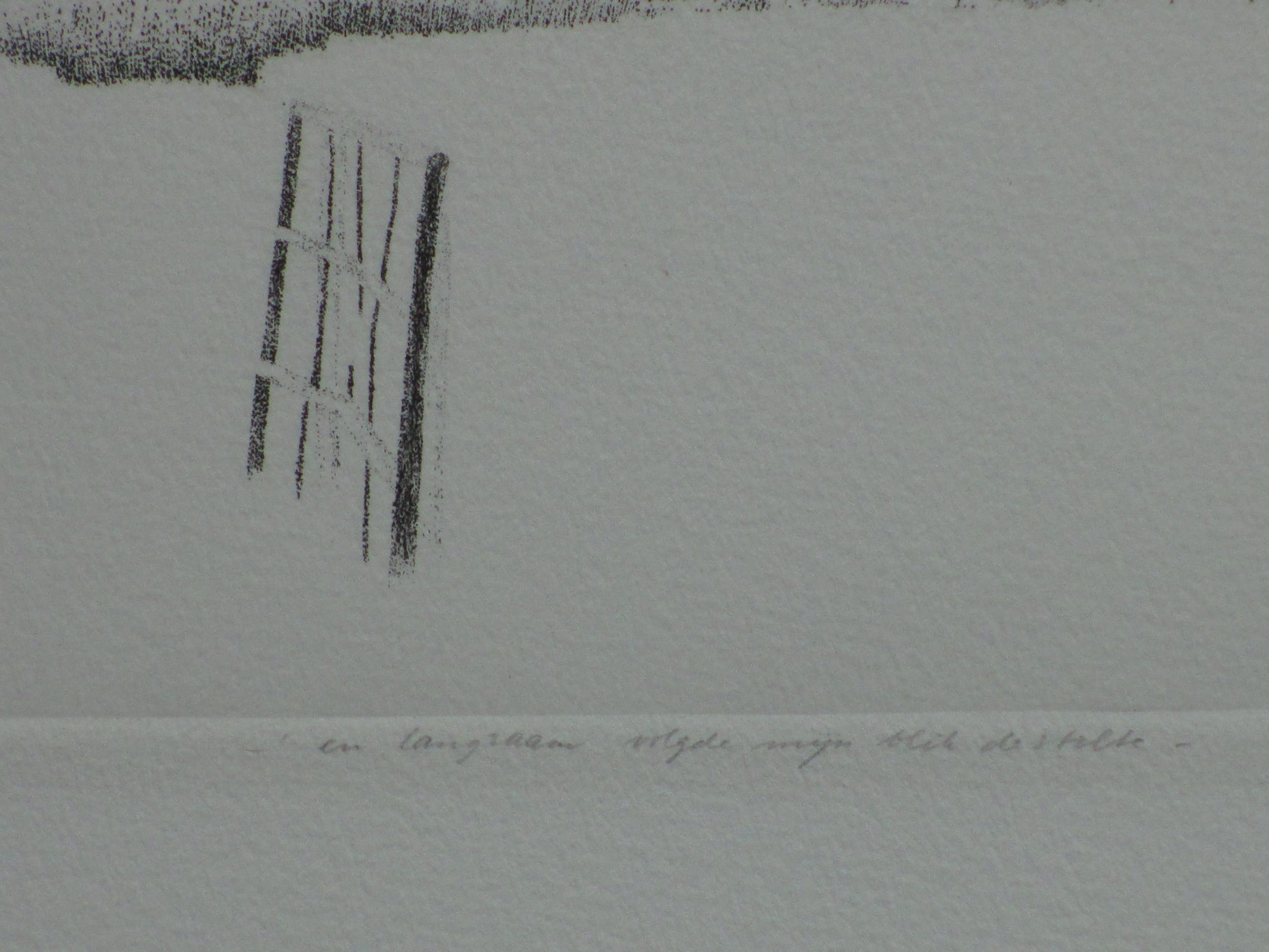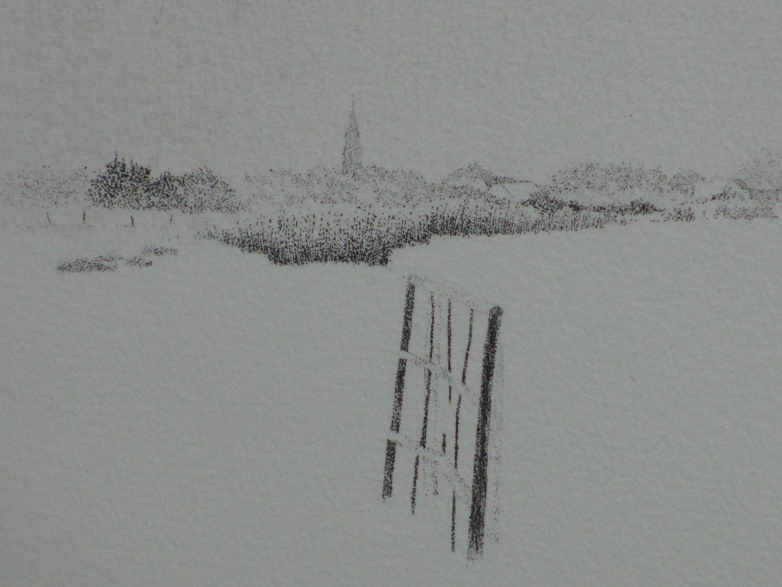 Ets door Jan van Winkel Voorstelling van een landschap met een kerk op de achtergrond en een hek op de voorgrond. Losbladig, beeldmaat 18x25, bladmaat 26x33 Gesigneerd in potlood l.o.: 'Jan van Winkel' Getiteld m.o.: 'En langzaam volgde mijn blik de stilte' Annotatie, datering en nummering r.o.: 'e/d mei 80. 26/30' Authenticiteit volledig gegarandeerd