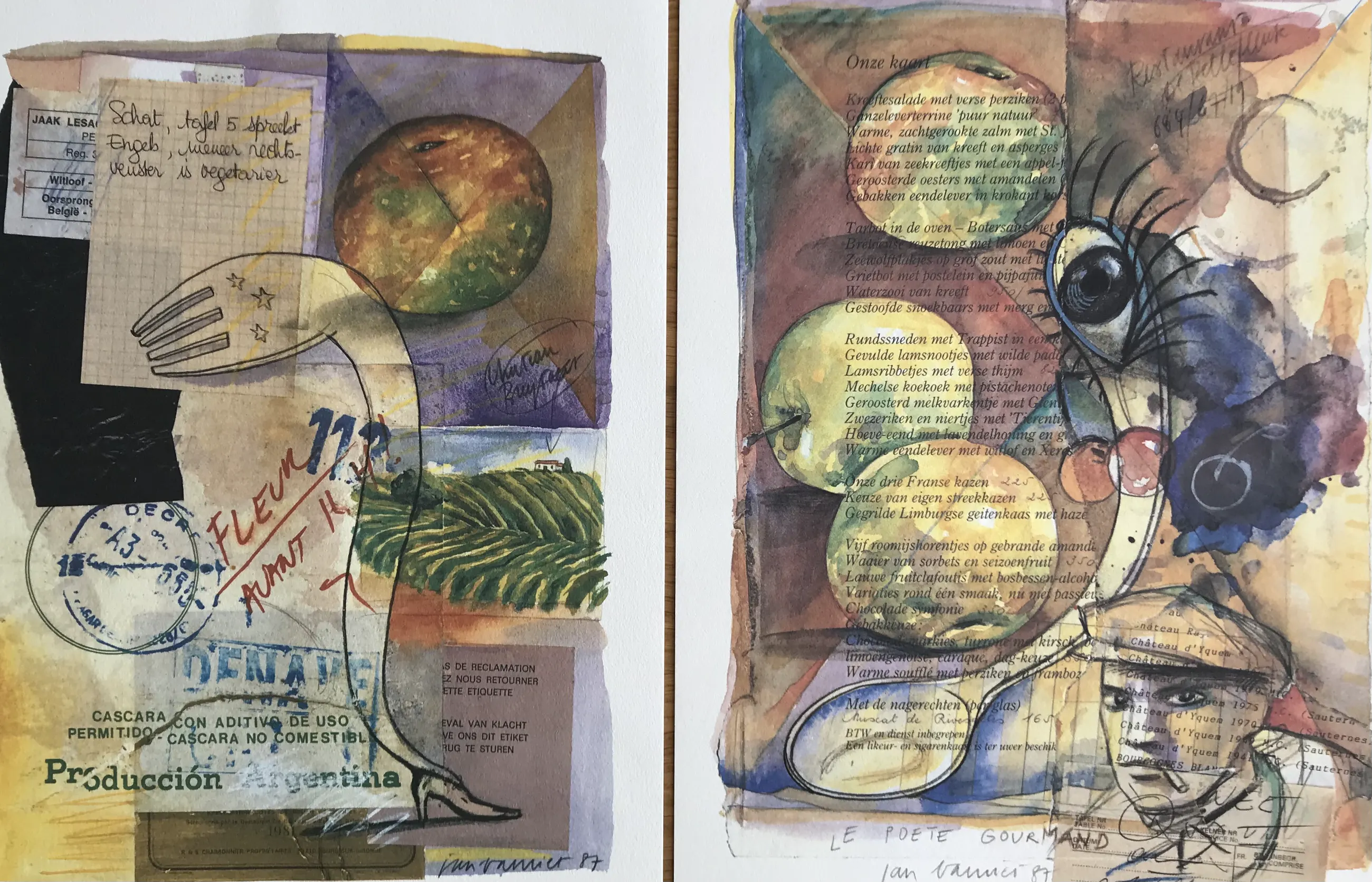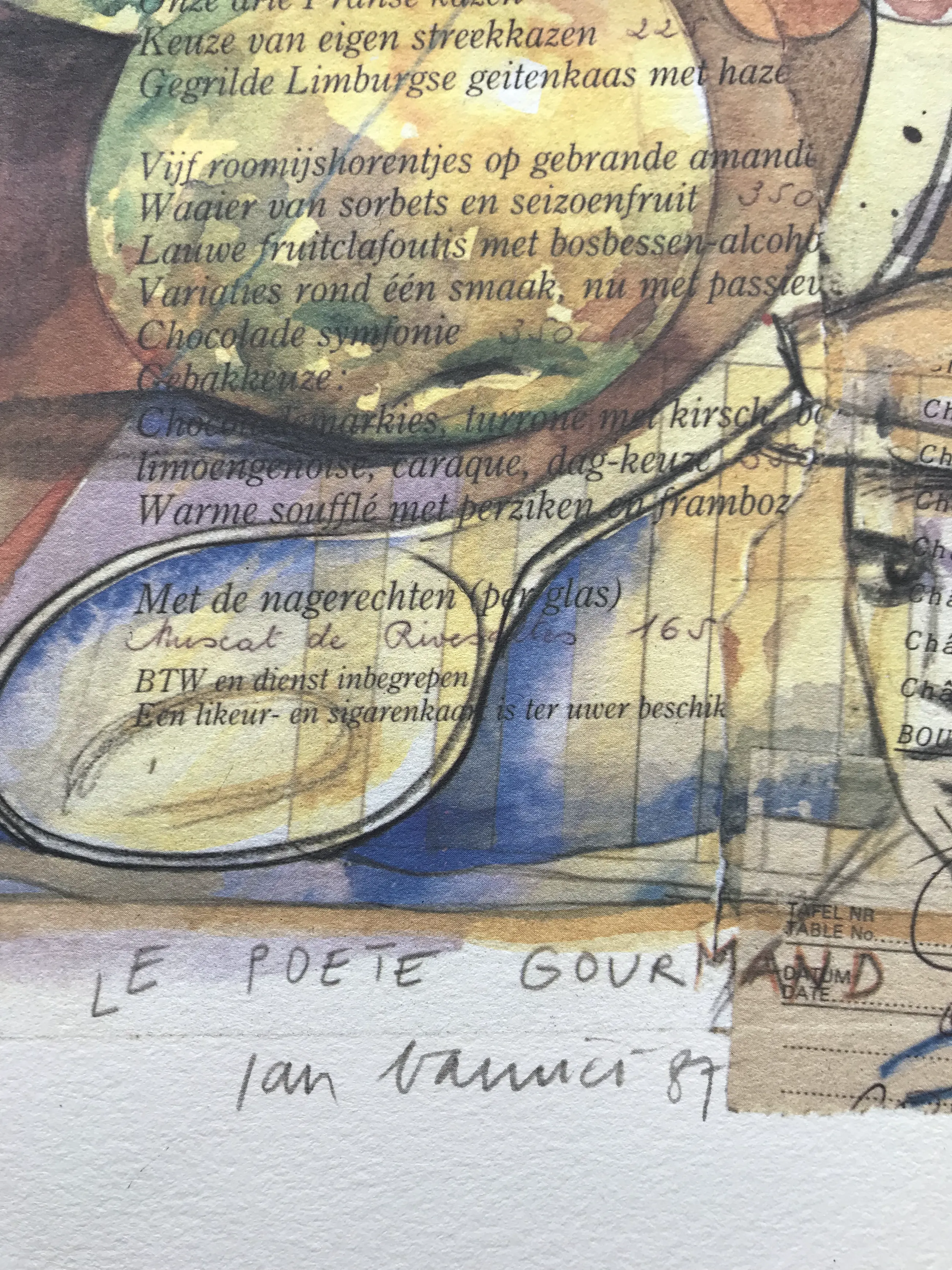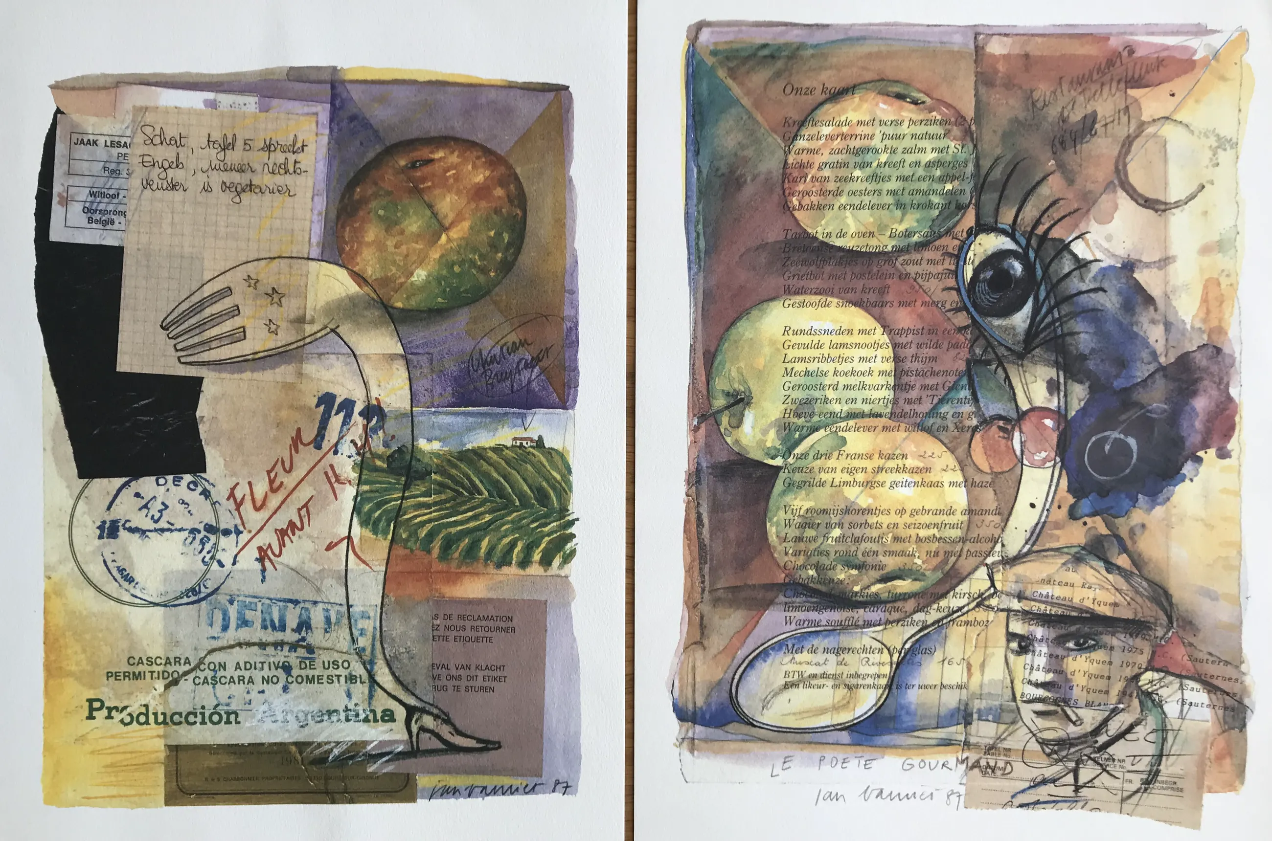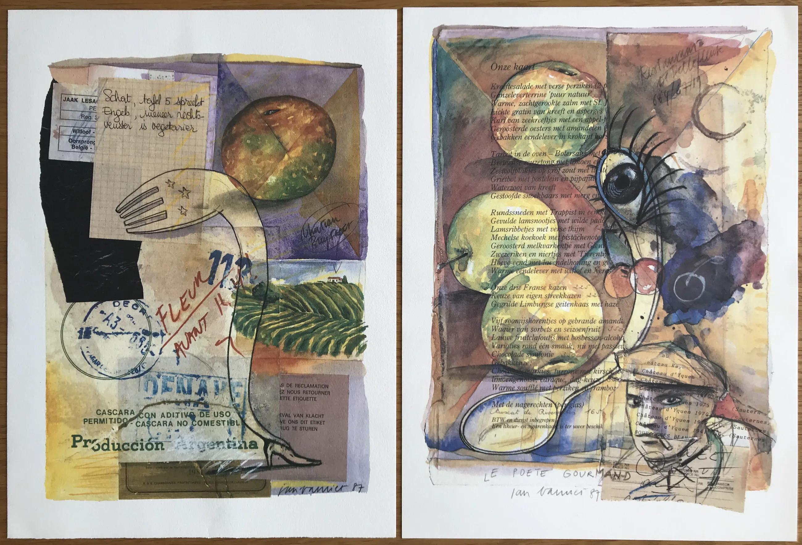 2 mooie, originele litho's van Jan Vanriet uit 1987 Gesigneerd Titel: 'Bellefleur' en 'Le poete gourmand' Afmetingen: 38cm x 28cm. Meerkleurige litho's in uitstekende staat.