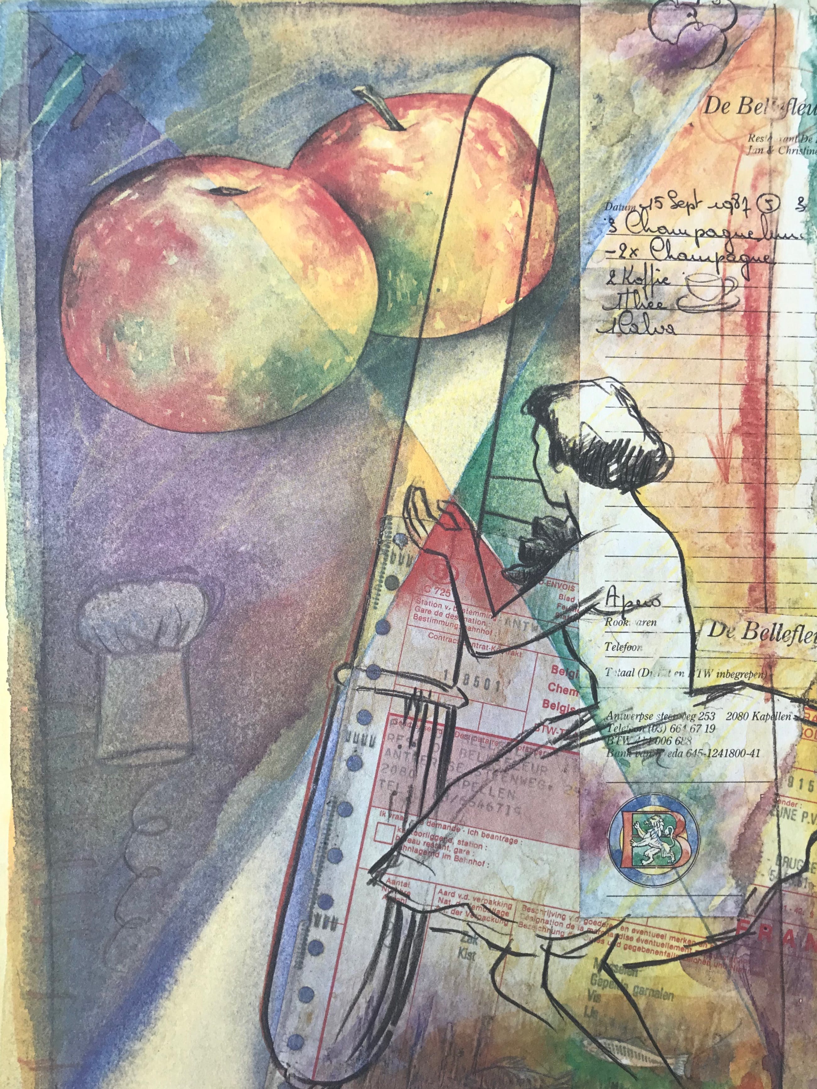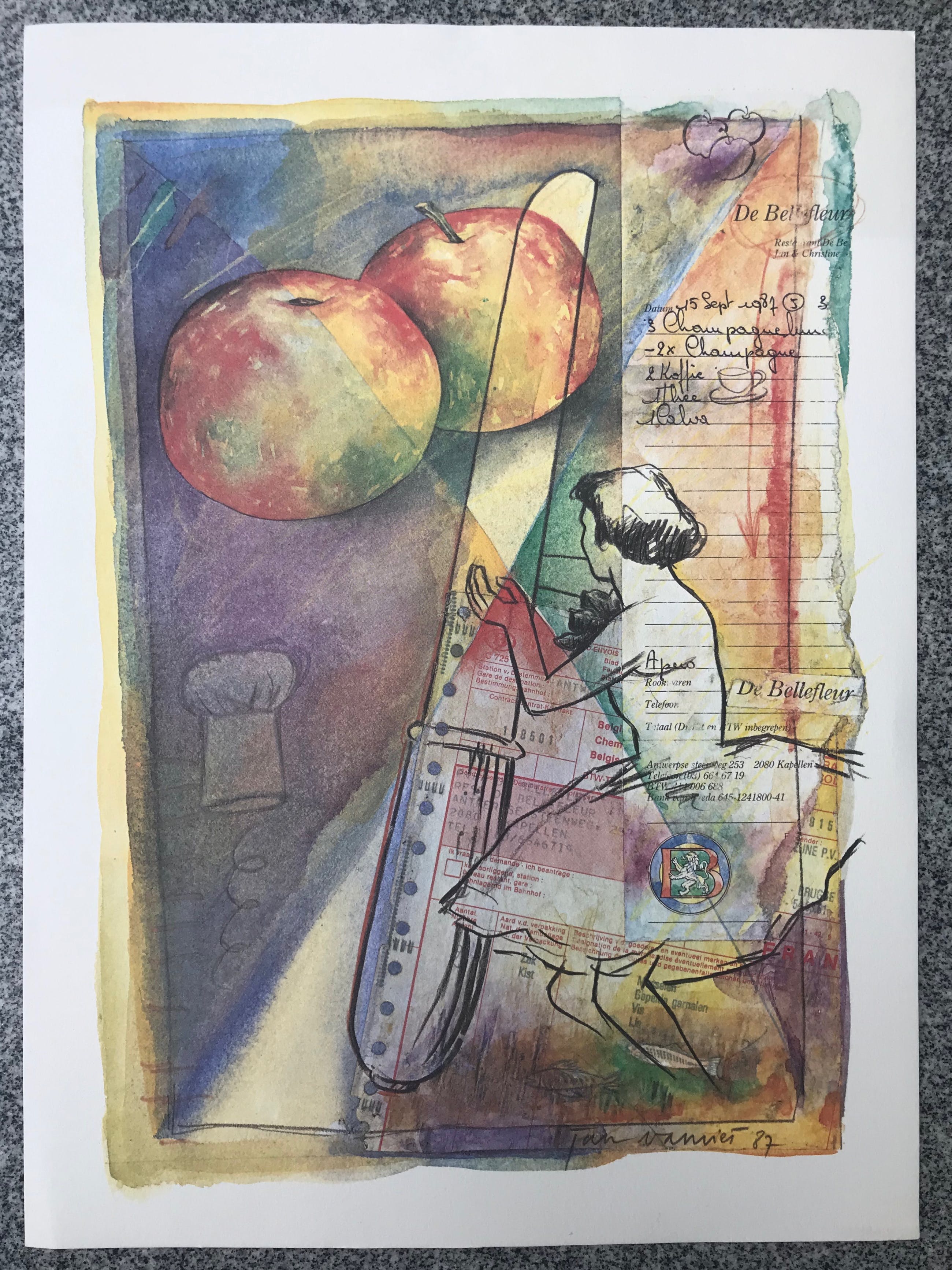 Mooie, originele litho van Jan Vanriet uit 1987 Gesigneerd Titel: 'Bellefleur' Afmetingen: 38cm x 28cm. Meerkleurige litho in uitstekende staat.