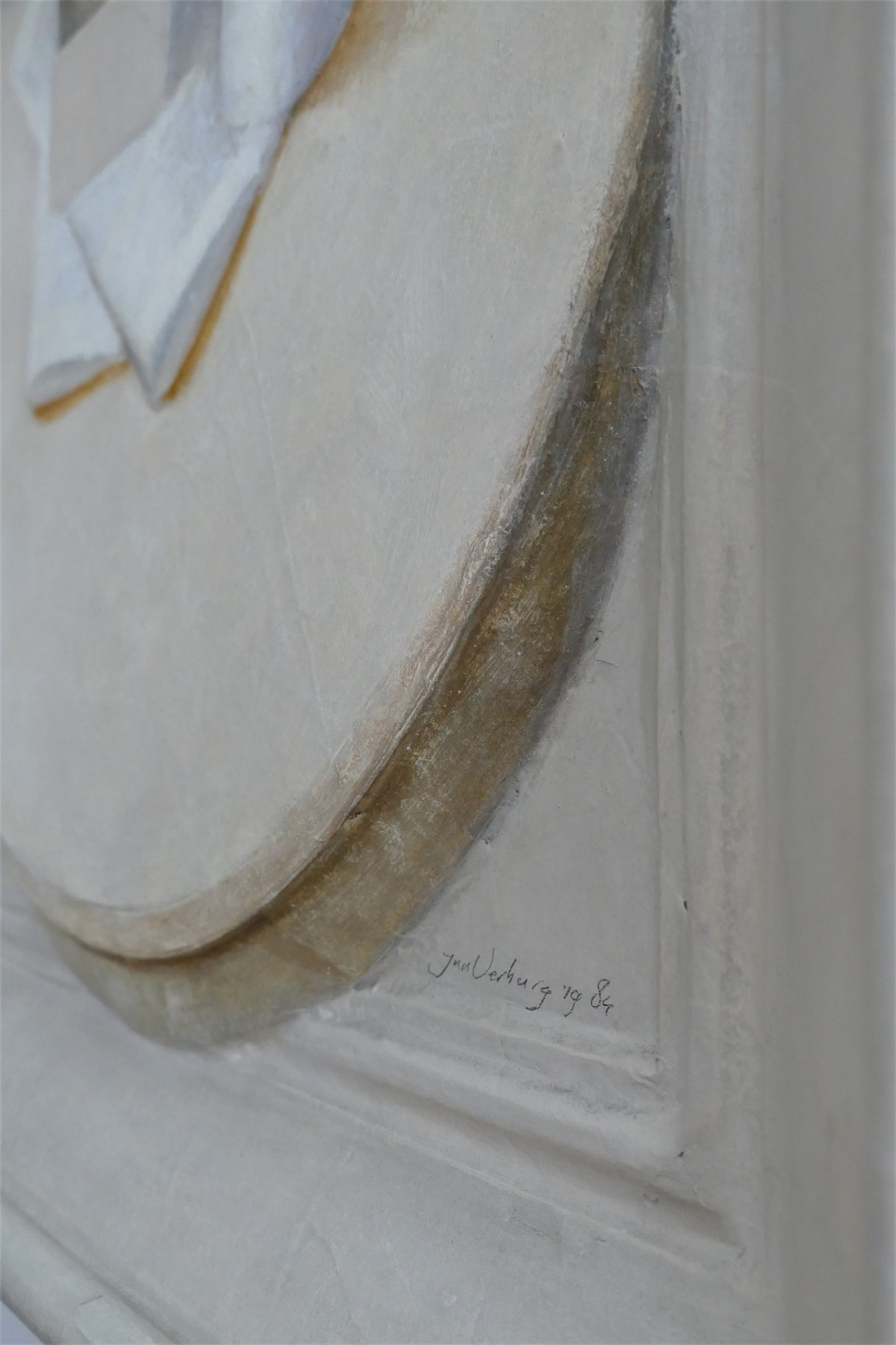 Olieverf/ gemengde techniek 3D op doek en paneel. De afbeelding loopt door in de lijst en wordt zo onderdeel van het werk zelf. Het werk verkeert in goed conditie en meet 95 x 72 cm.