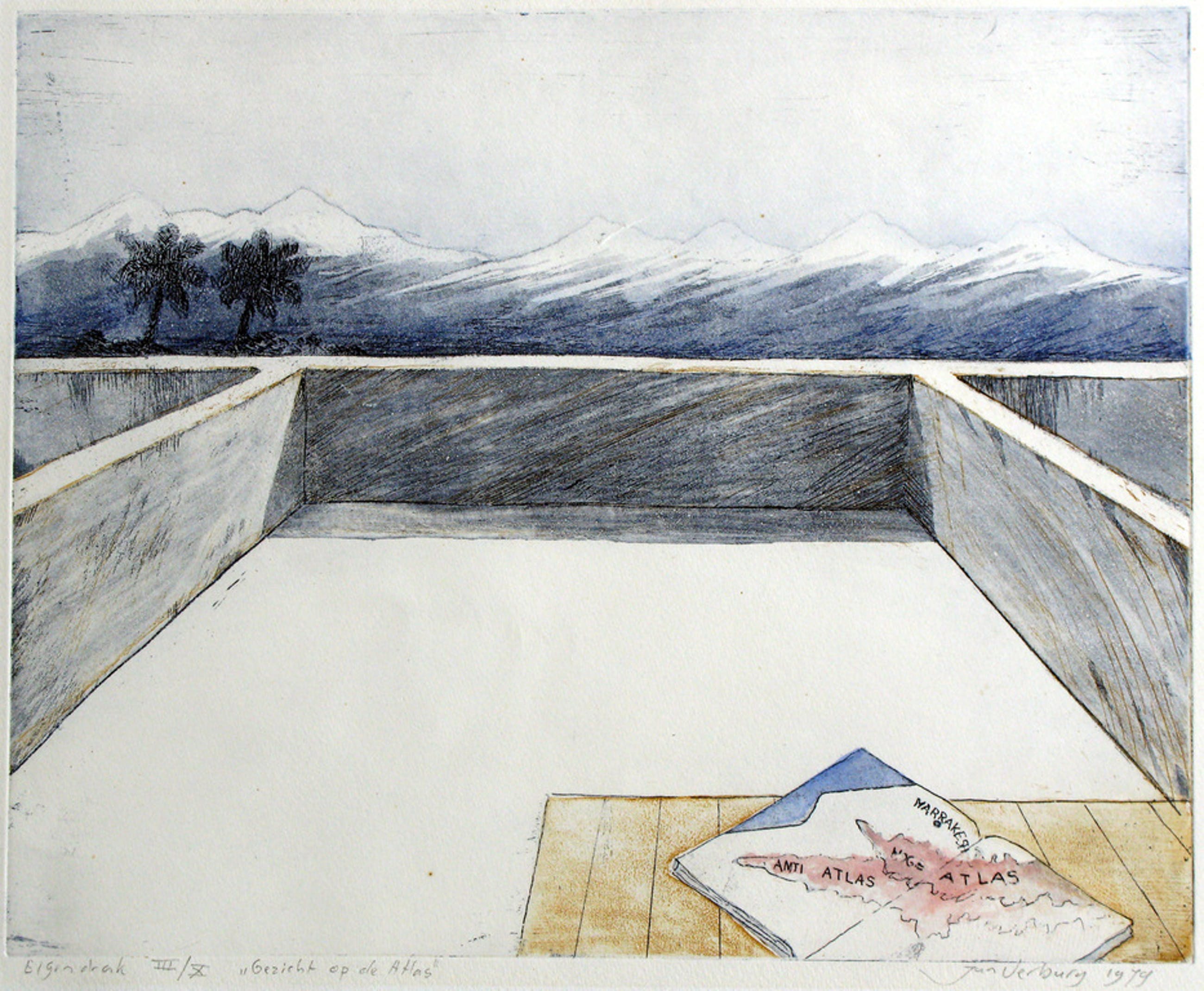 Betreft een modern van werk van Jan Verburg uit 1979, uitgegeven in exclusieve oplage van slechts 10 exemplaren, dit is nummer 2. genummerd in romeine cijfers en in potlood gesigneerd. Het werk is altijd vlak bewaard, verkeert ondanks de antiquariaats leeftijd nog in hele mooie conditie, met vrijwel geen oxidatie. Het werk is gezet op geschept papier en kan zondermeer direct naar eigen smaak worden ingelijst.