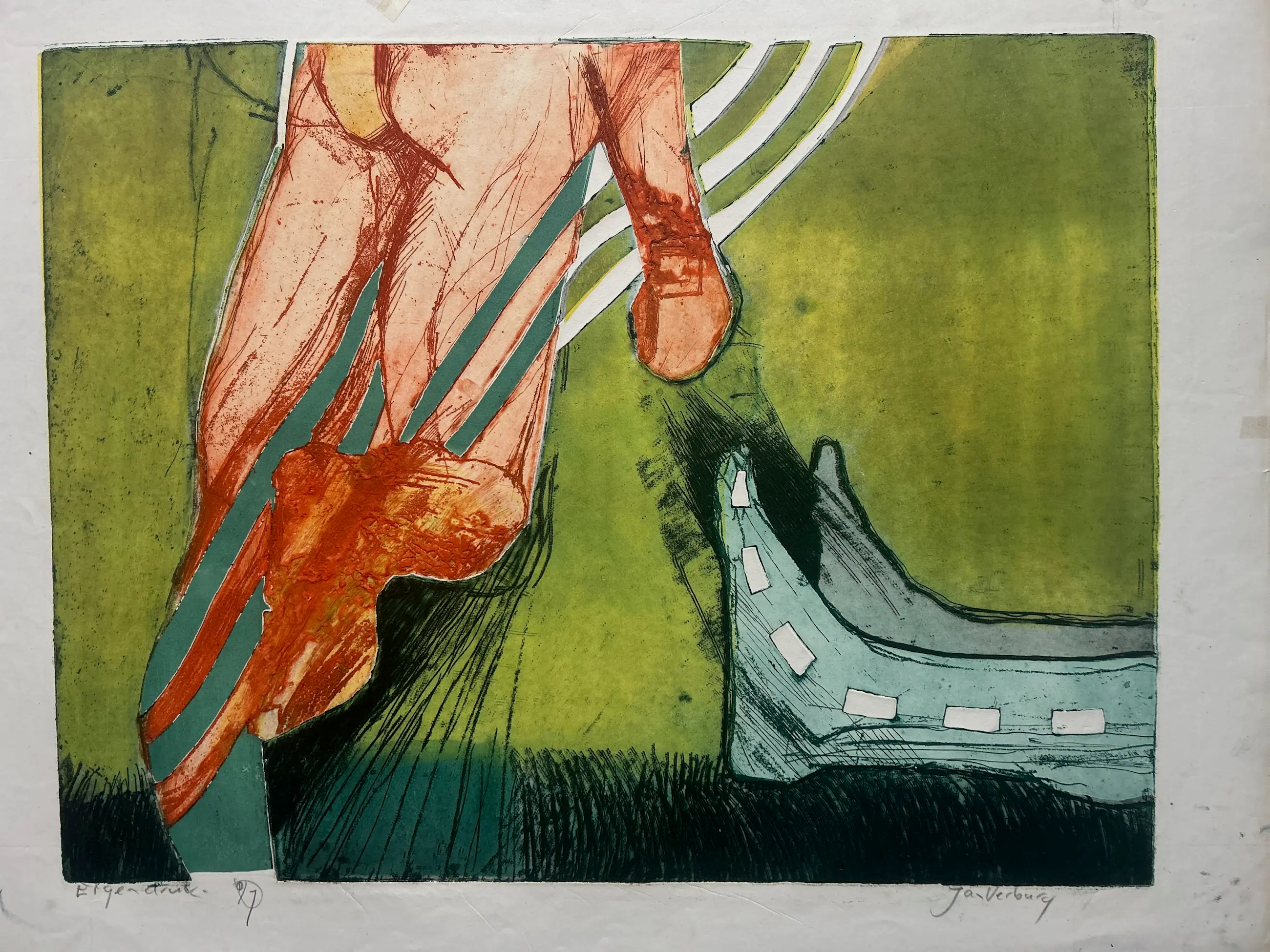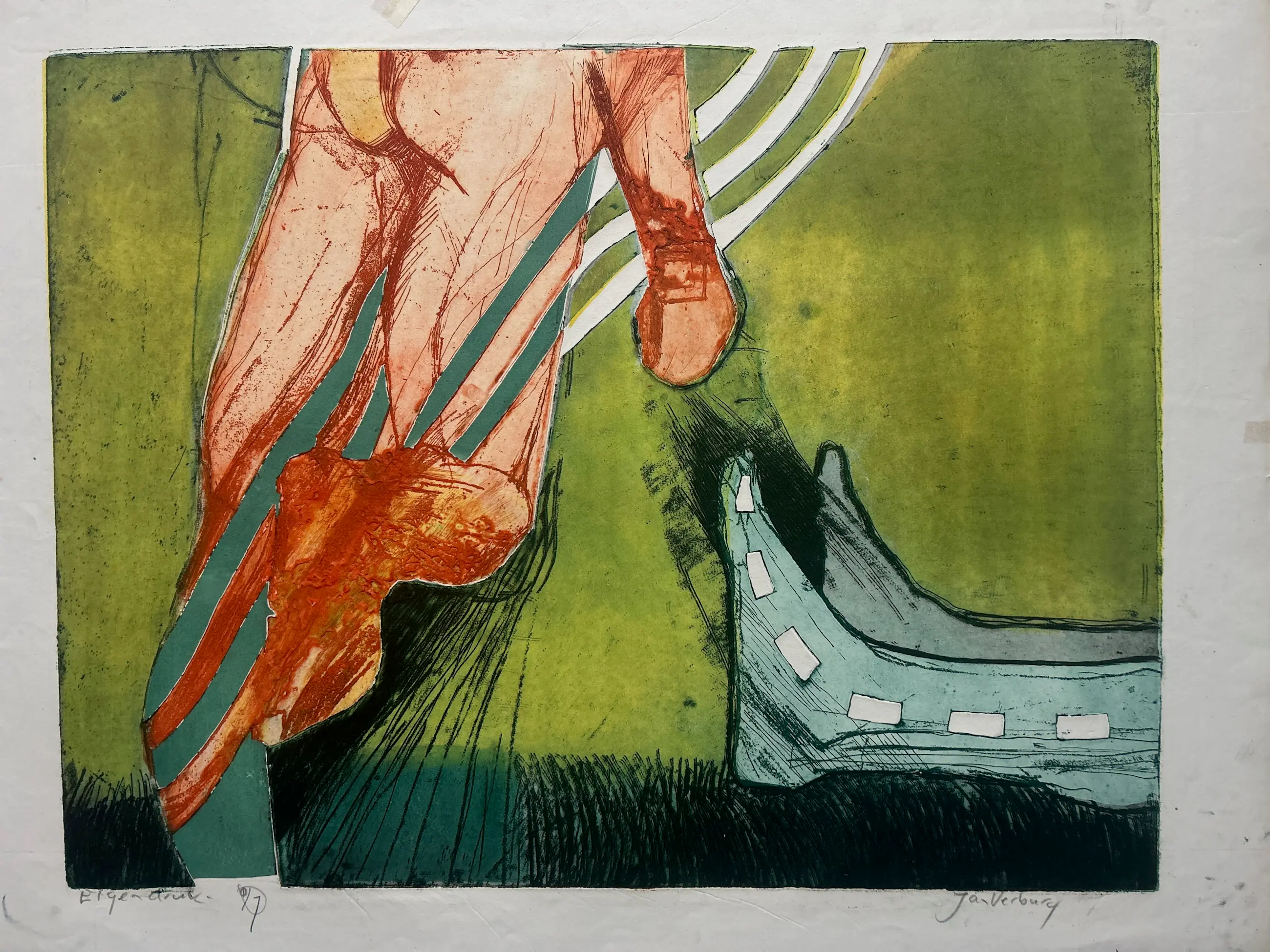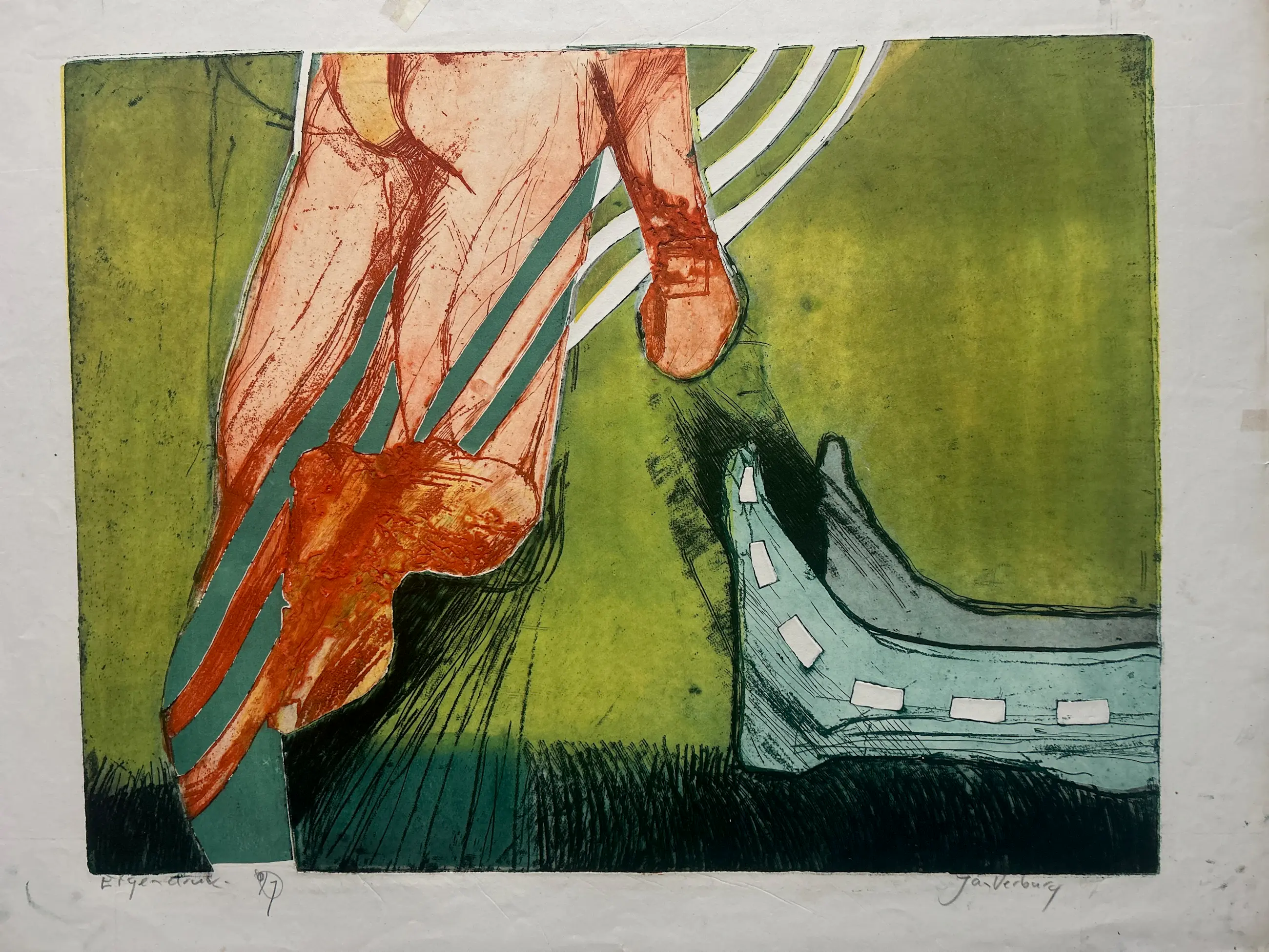 Conditie: goed, Vel heeft vlekjes en plakband van inlijsten , zie foto's. Afmeting: ets 46 x 60 cm. Wordt zorgvuldig verpakt en verzekerd verzonden.