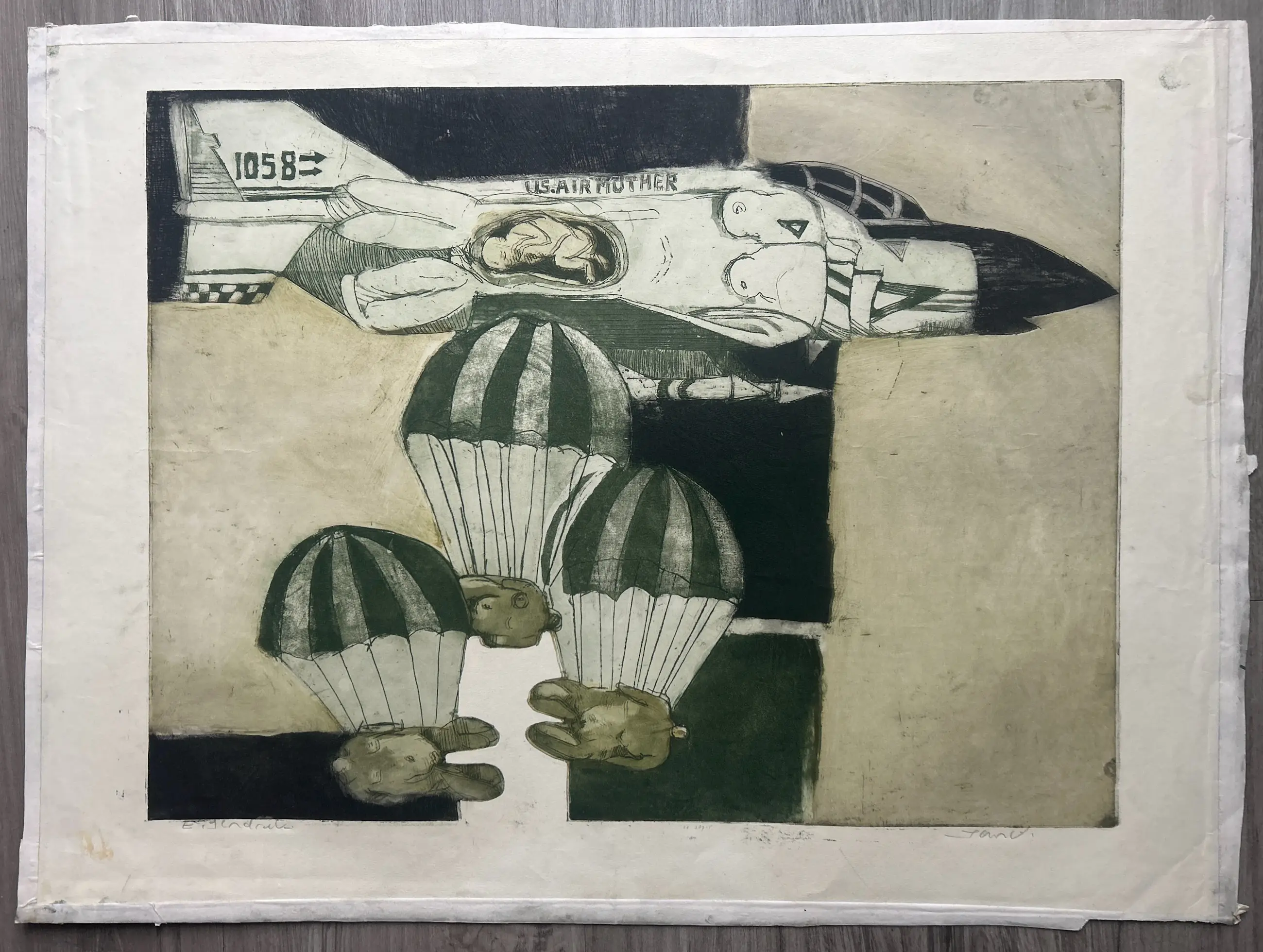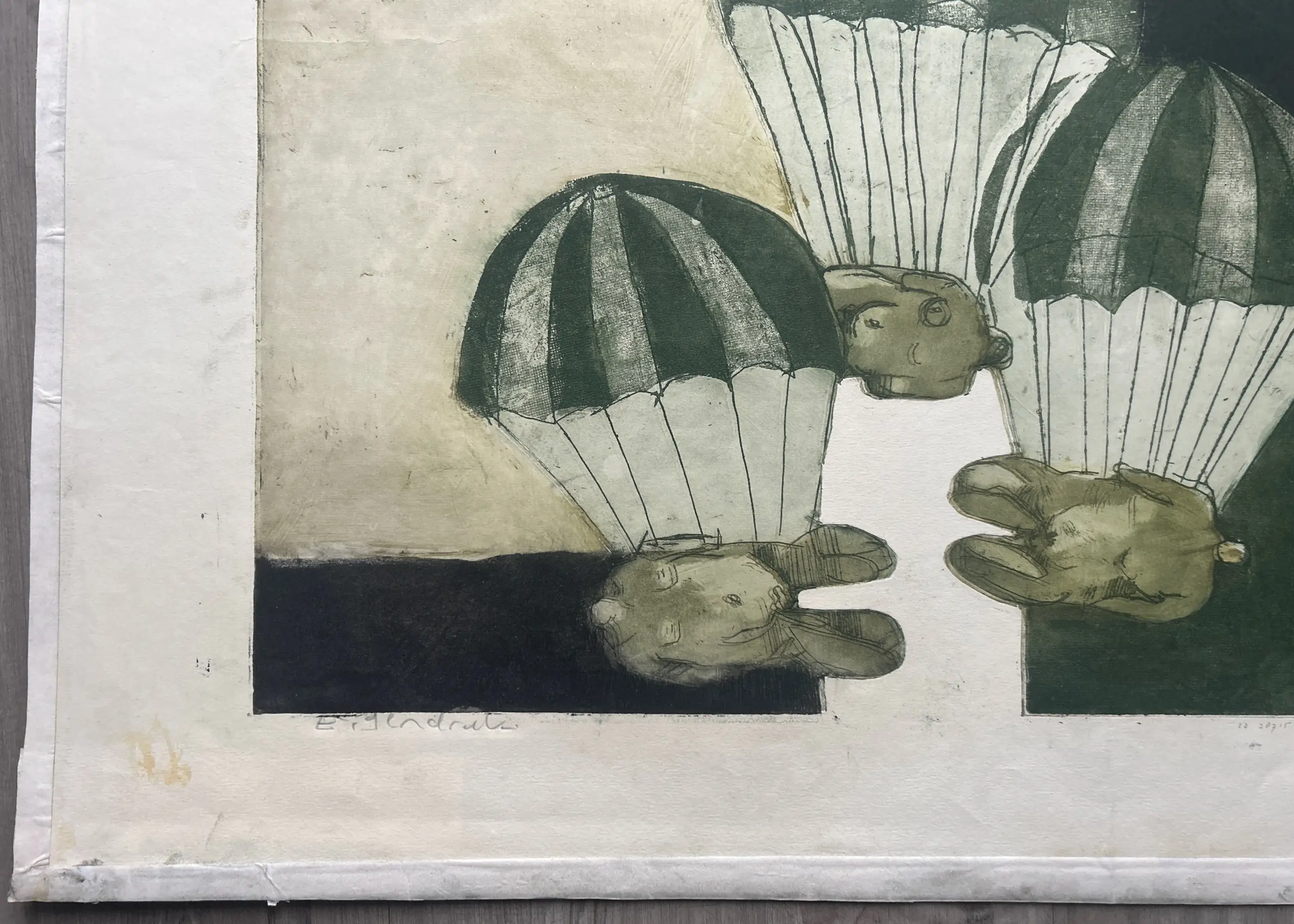 Conditie: goed. Vel heeft vlekjes, tap en vouwtje, zie foto's. Afmeting: ets 46 x 60 cm. Wordt zorgvuldig verpakt en verzekerd verzonden.