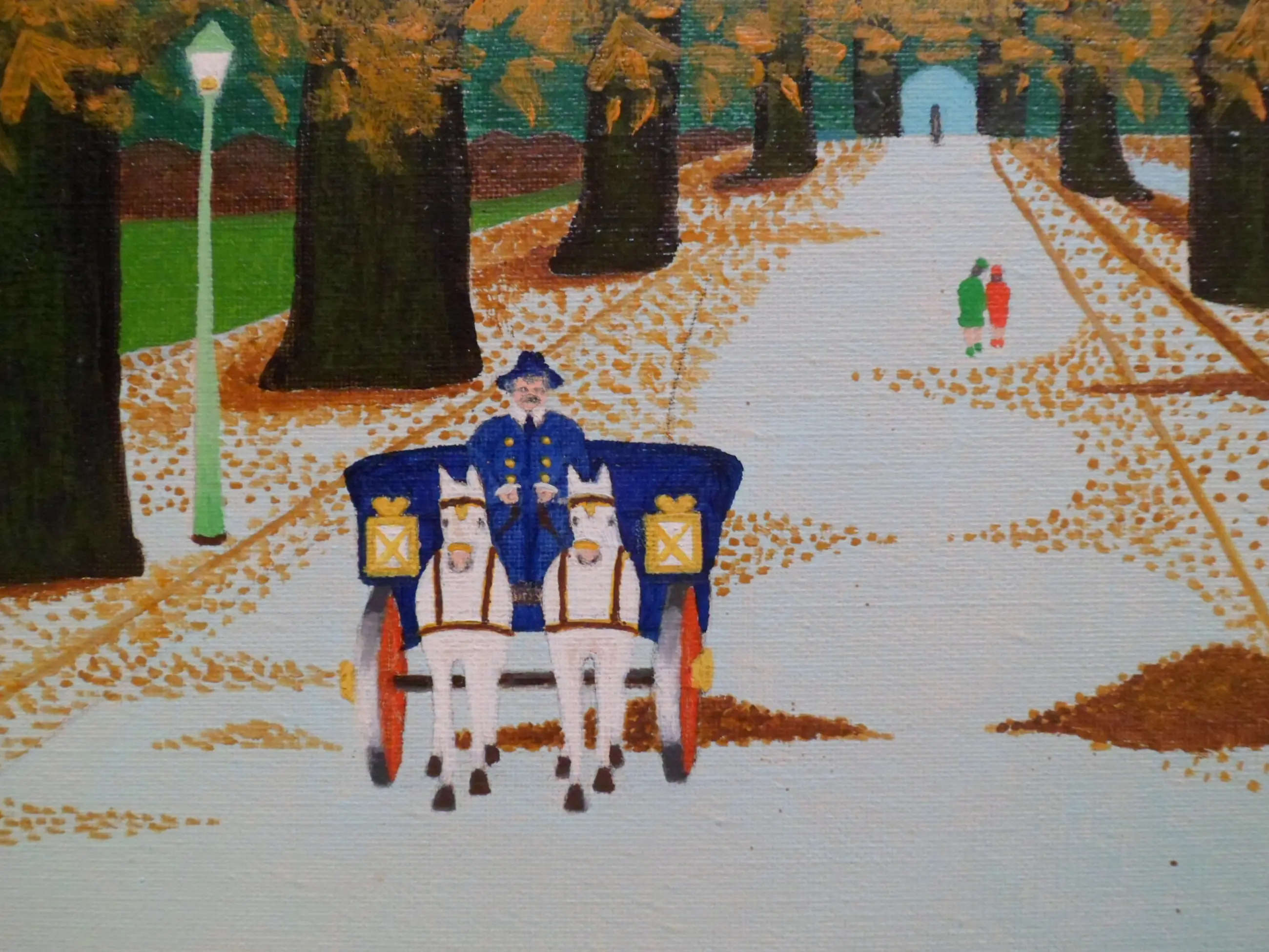 Jan Verheyen - herfst in Het Prater te Wenen. Naïve kunst.