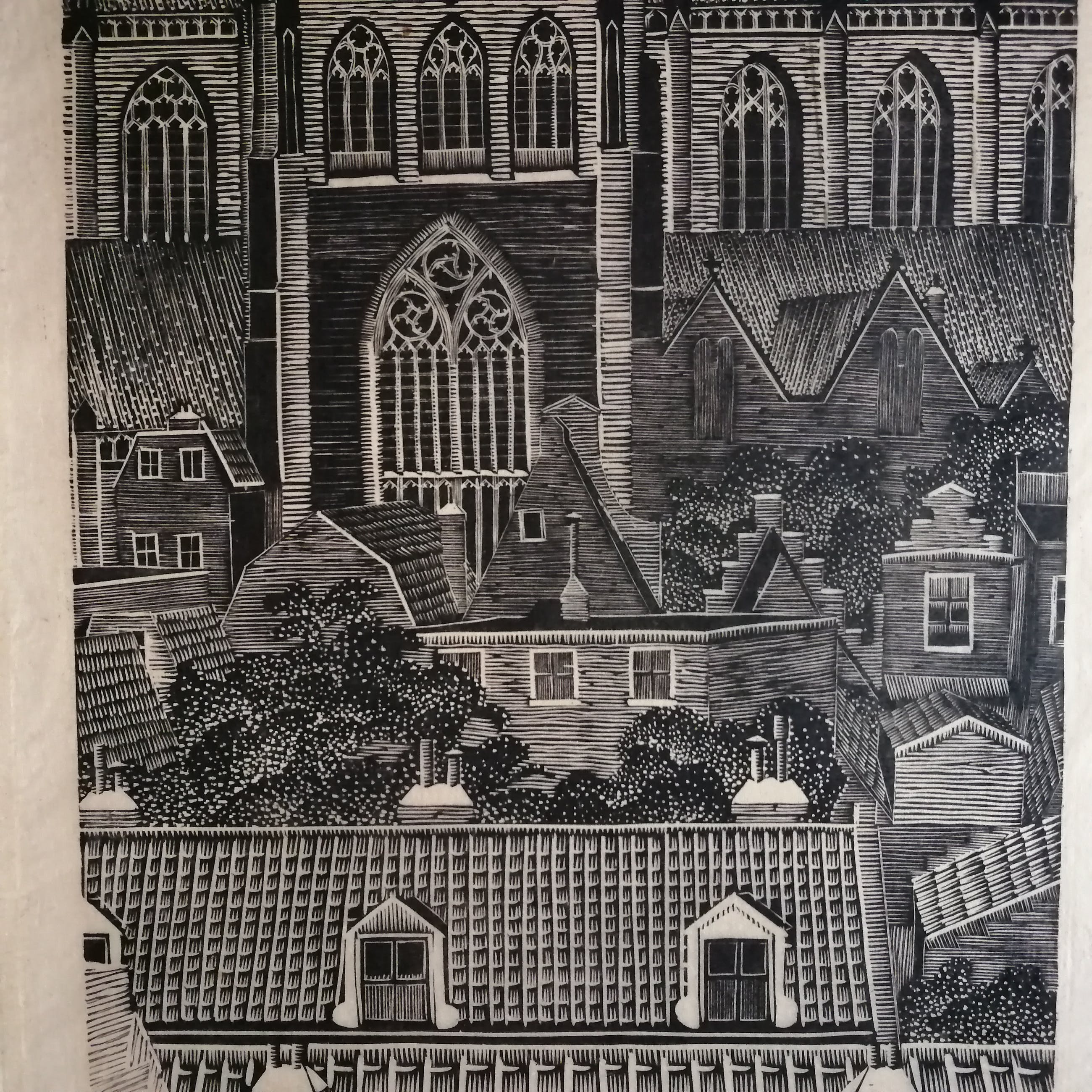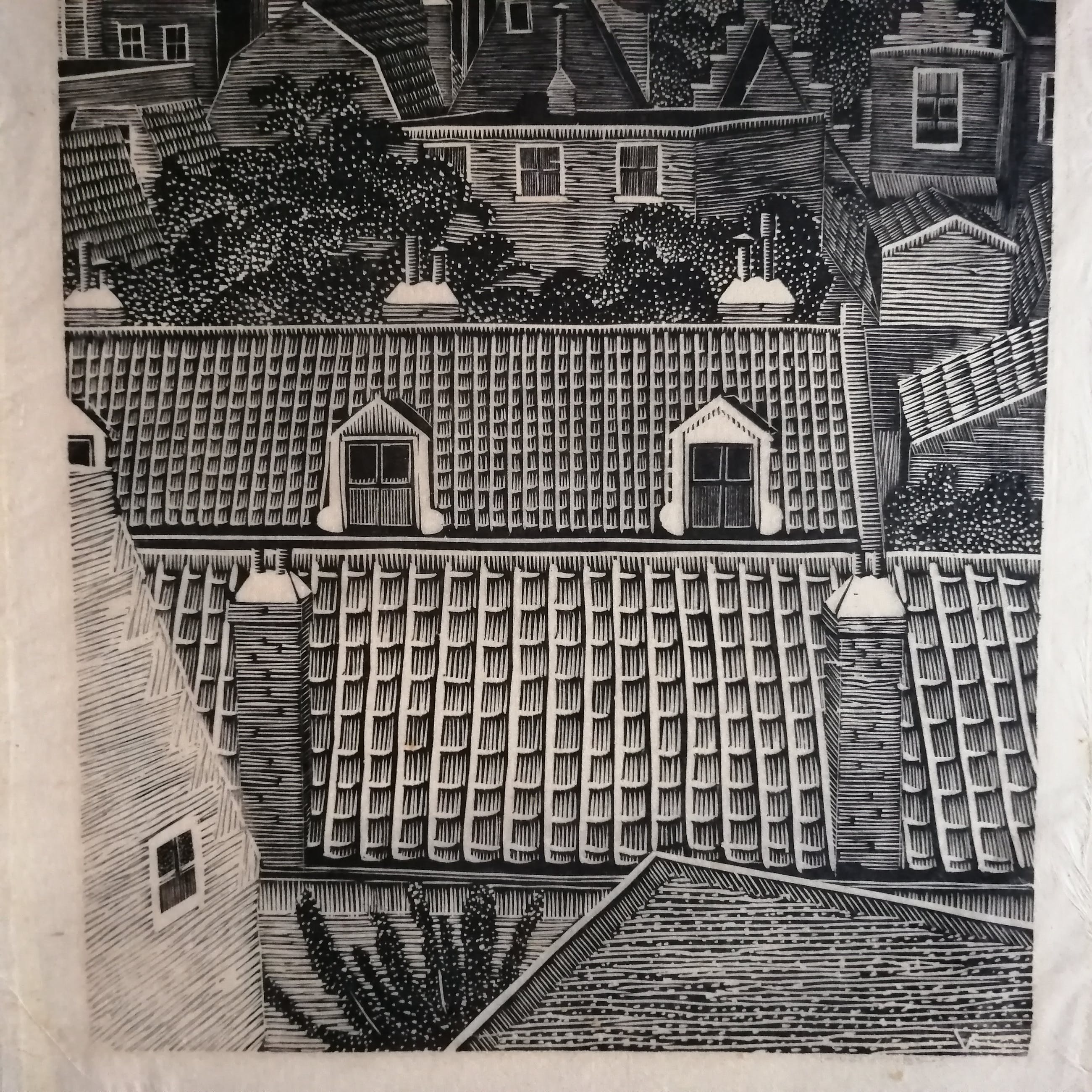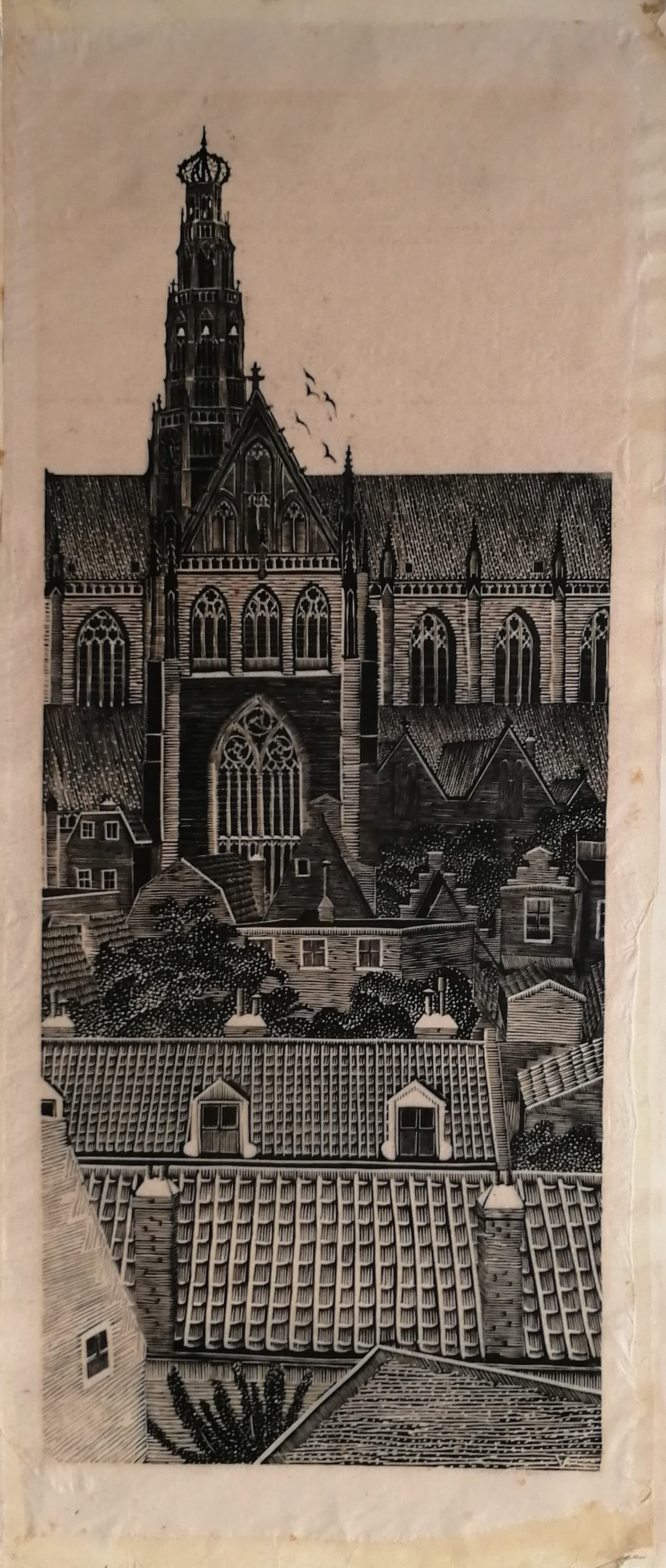 Prachtige weinig voorkomende houtsnede van Jan Veringa.Potlood gesigneerd rechtsonder.Beeldmaat 55x22,5 cm.Bladmaat 64x26 cm.Getipt op dun karton.