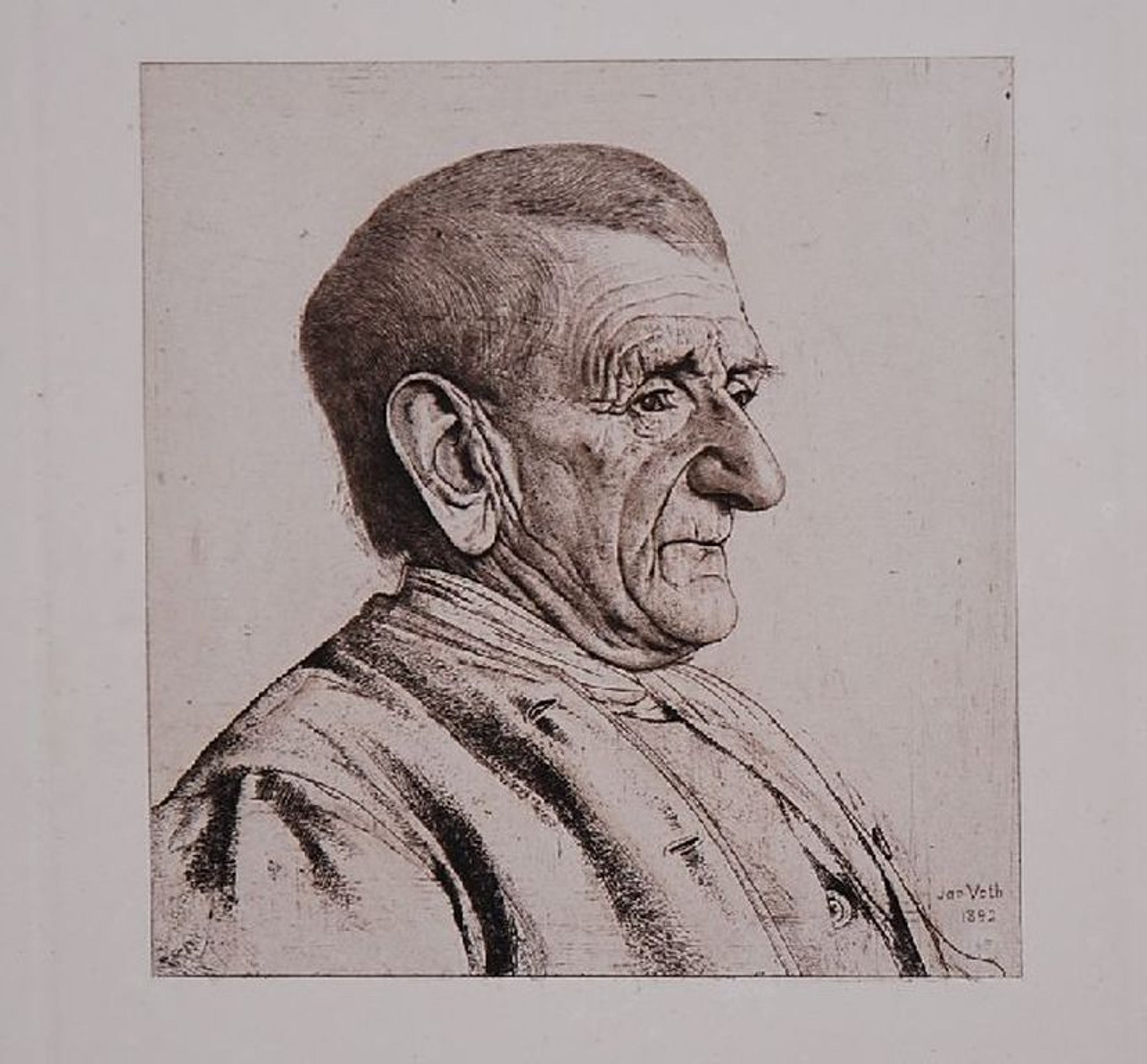 Prachtige ets van Jan Veth, ets van portret van Jan Schaap, Visscher.