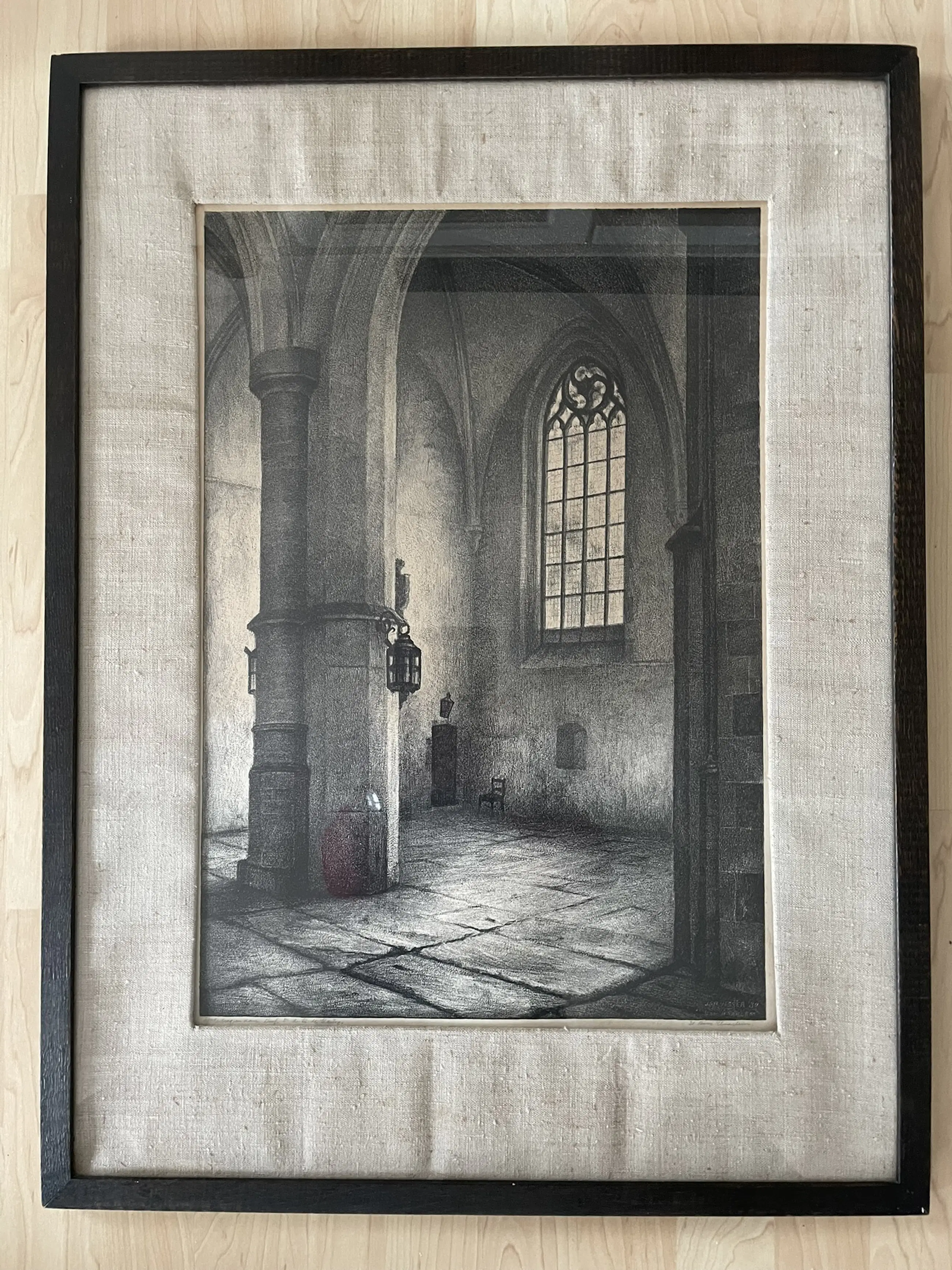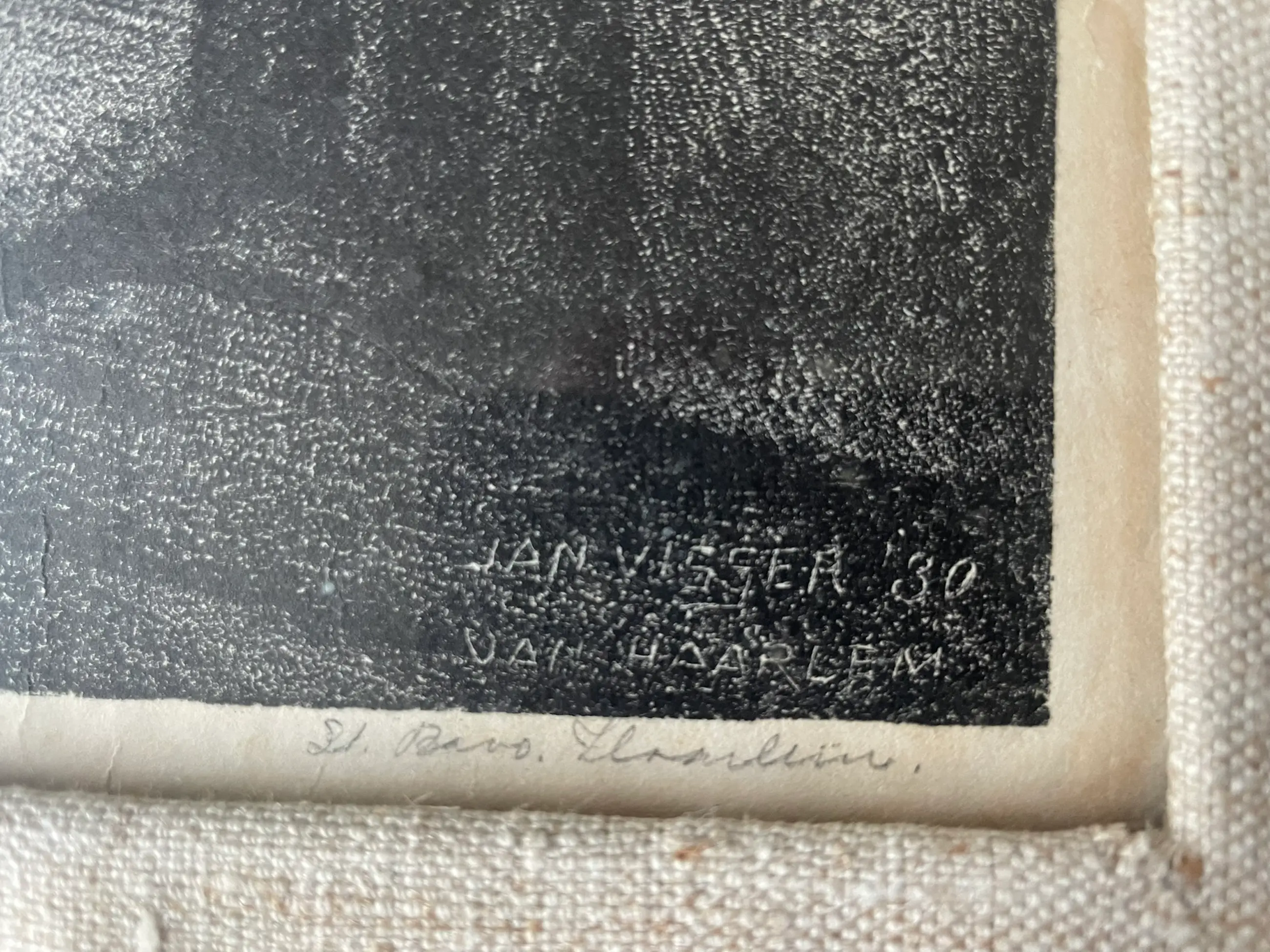 De litho is in zeer goede staat. De lijst en de (linnen ?) passe partout zijn van de jaren 1930.