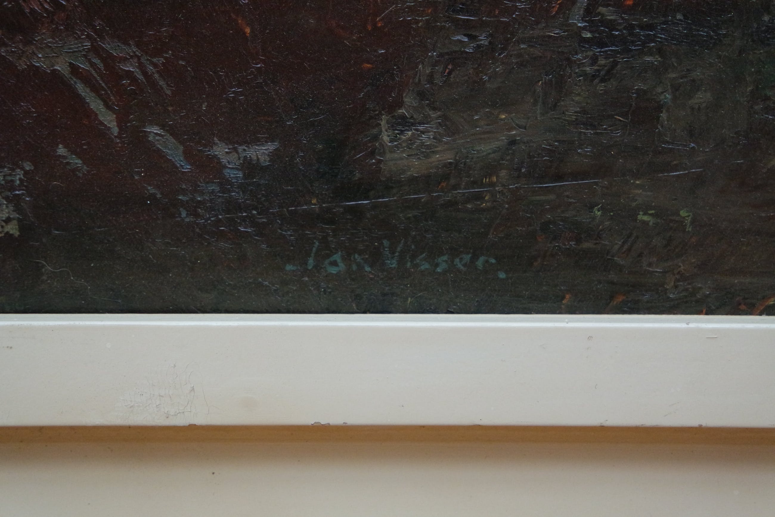 Aangeboden kunstenaar: Jan Visser (1903-1988) Onderwerp: LandschapTechniek: olieverfGesigneerd: midden onder.Conditie board: redelijk tot goed. De lijst heeft enkele gebruikssporen.Info kunstenaar: zie o.a. RKD