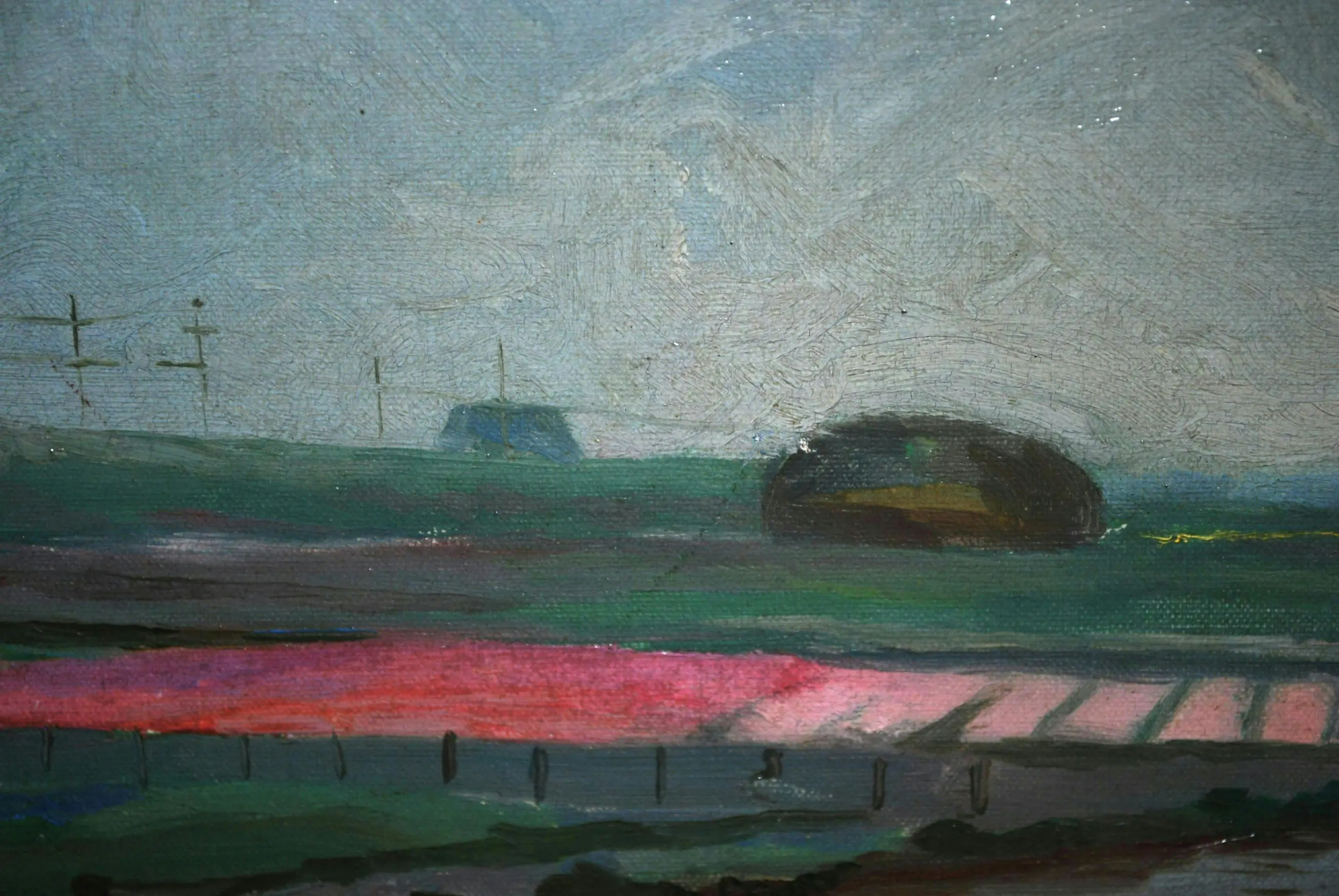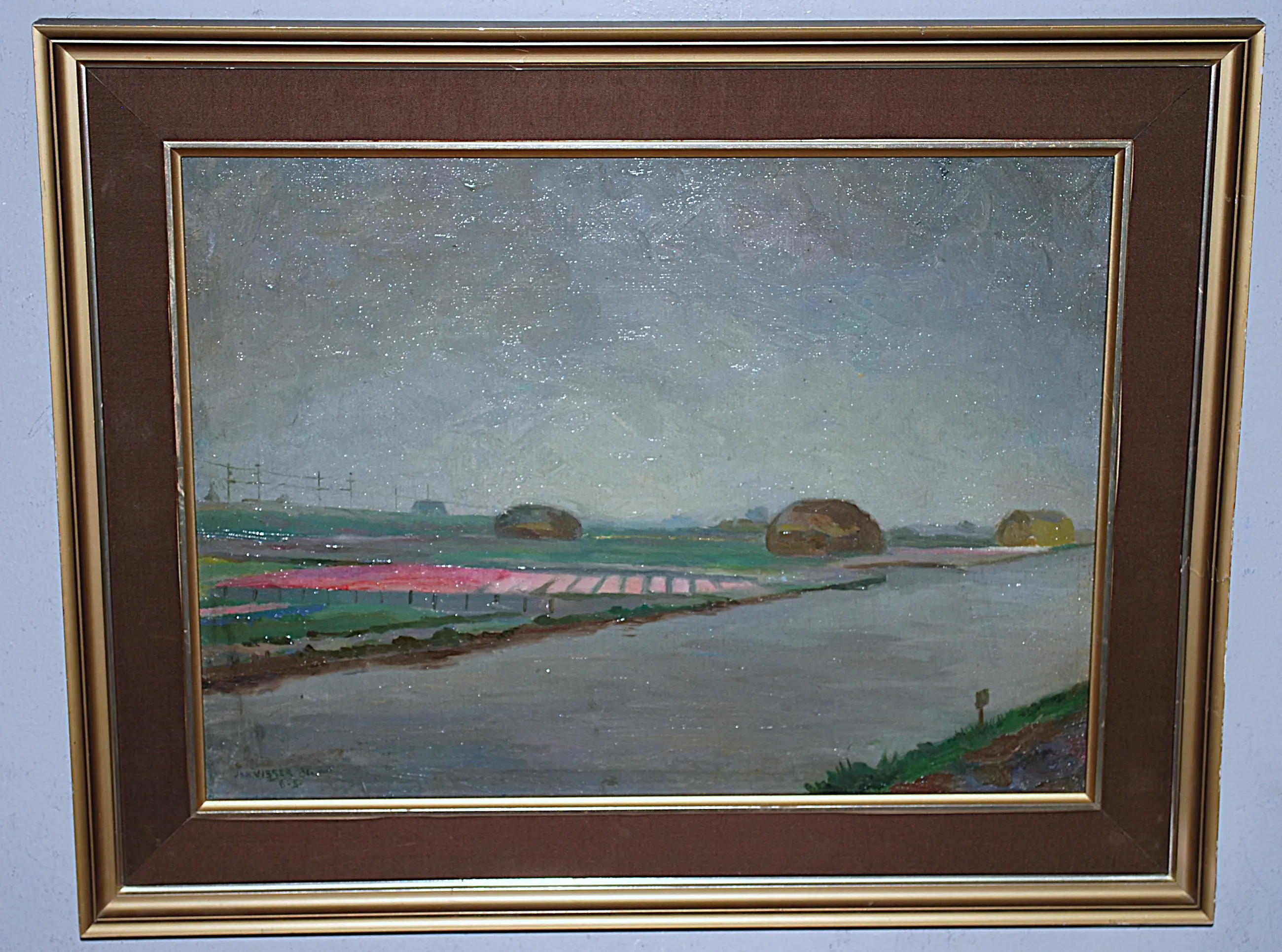 Jan Visser - olieverfschilderij: bollenveld aan de Ringvaart