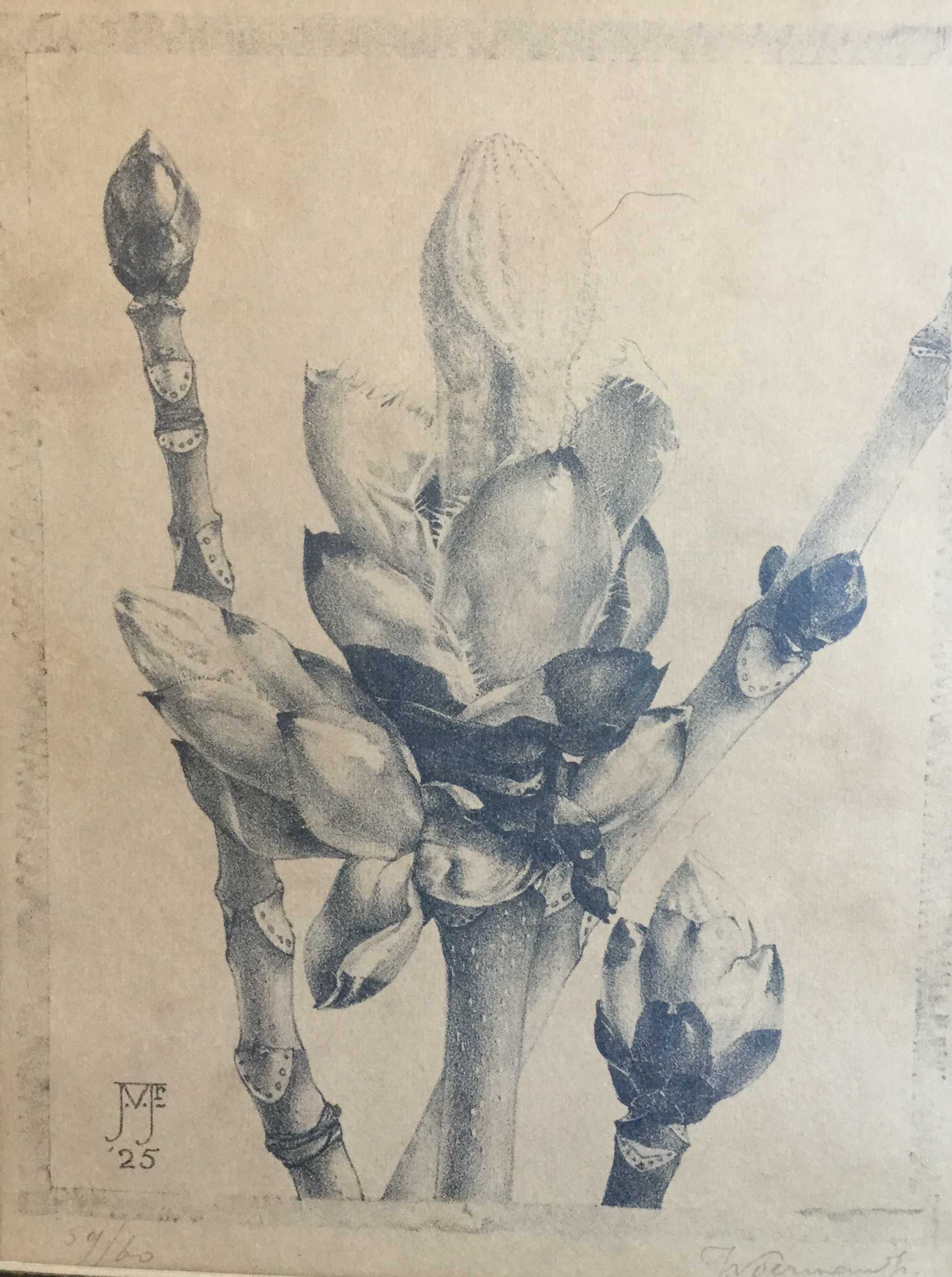 Voerman, Bloesem, r.o. gesigneerd, litho, in litho gemonogrammeerd en gedateerd 25, oplage 59/60.