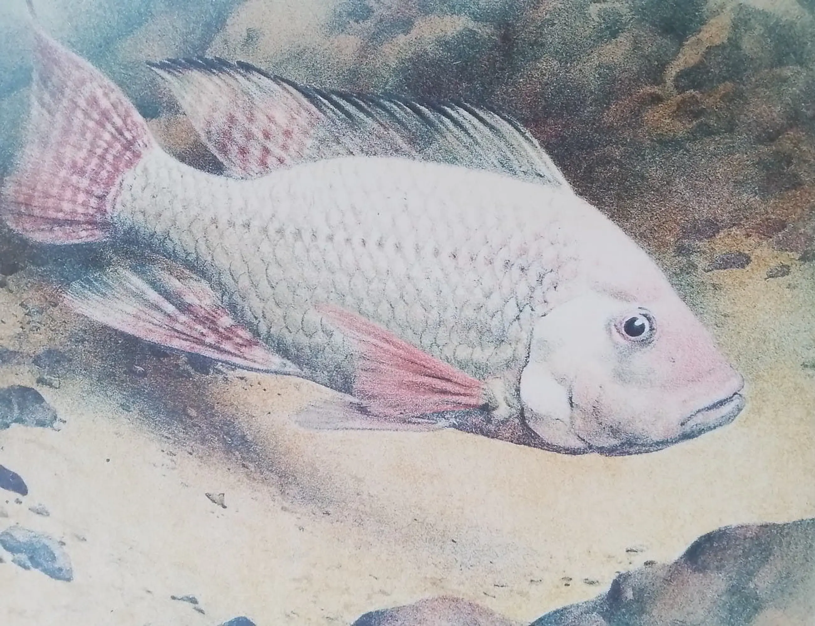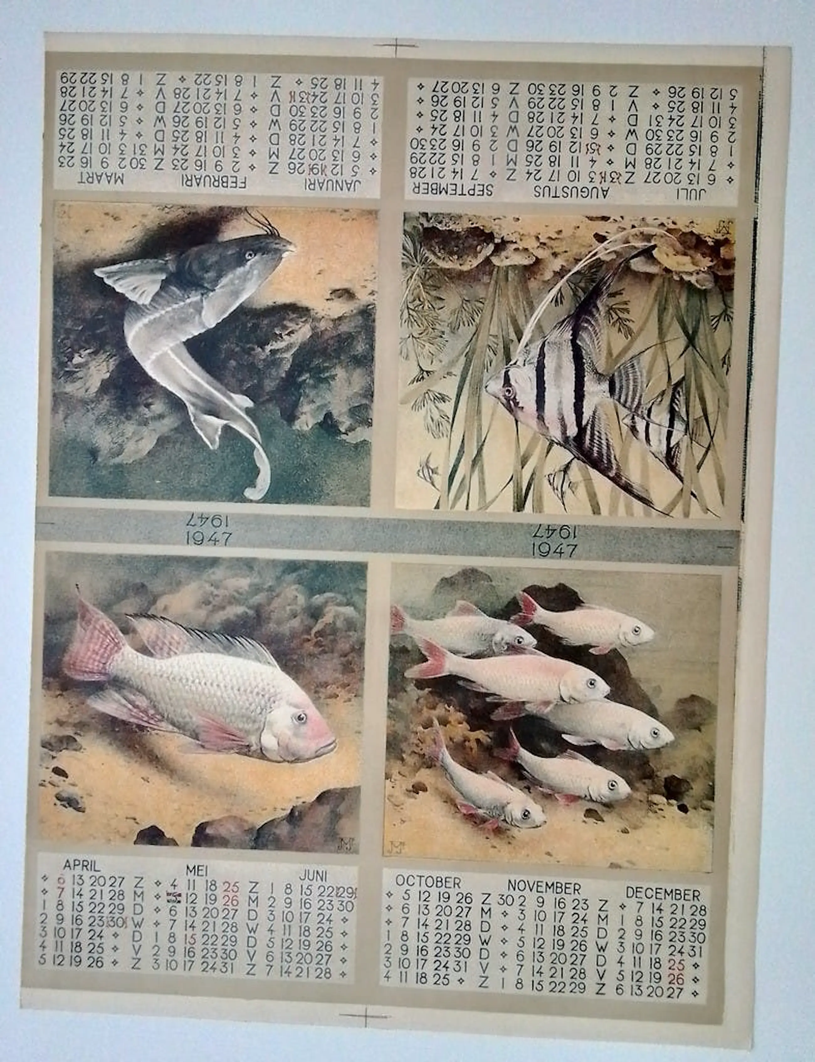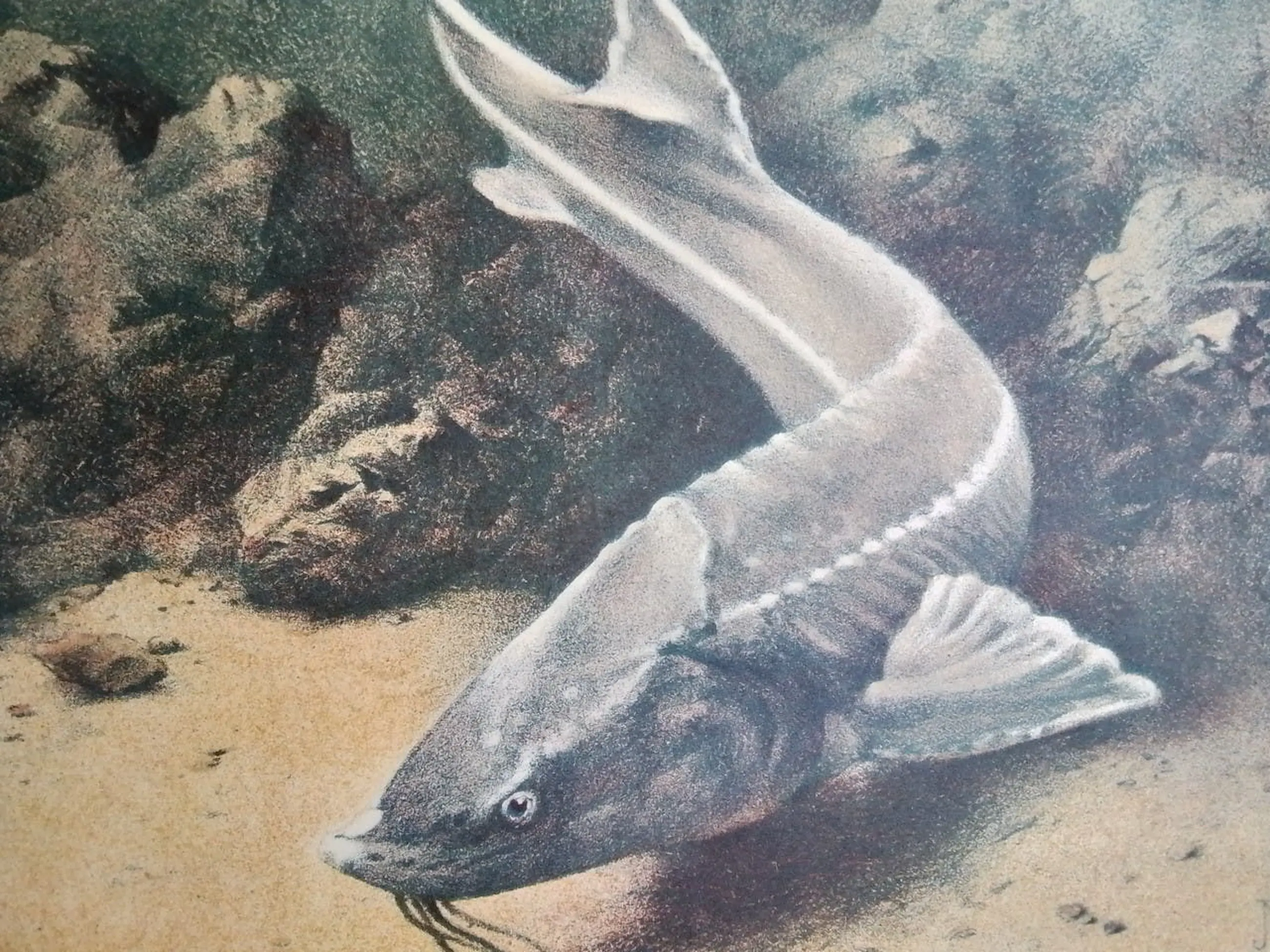 4 afbeeldingen van vissen - Steur - Nijlbaars in bruiloftskleed - Braziliaansche maanvisschen - Goudwinden