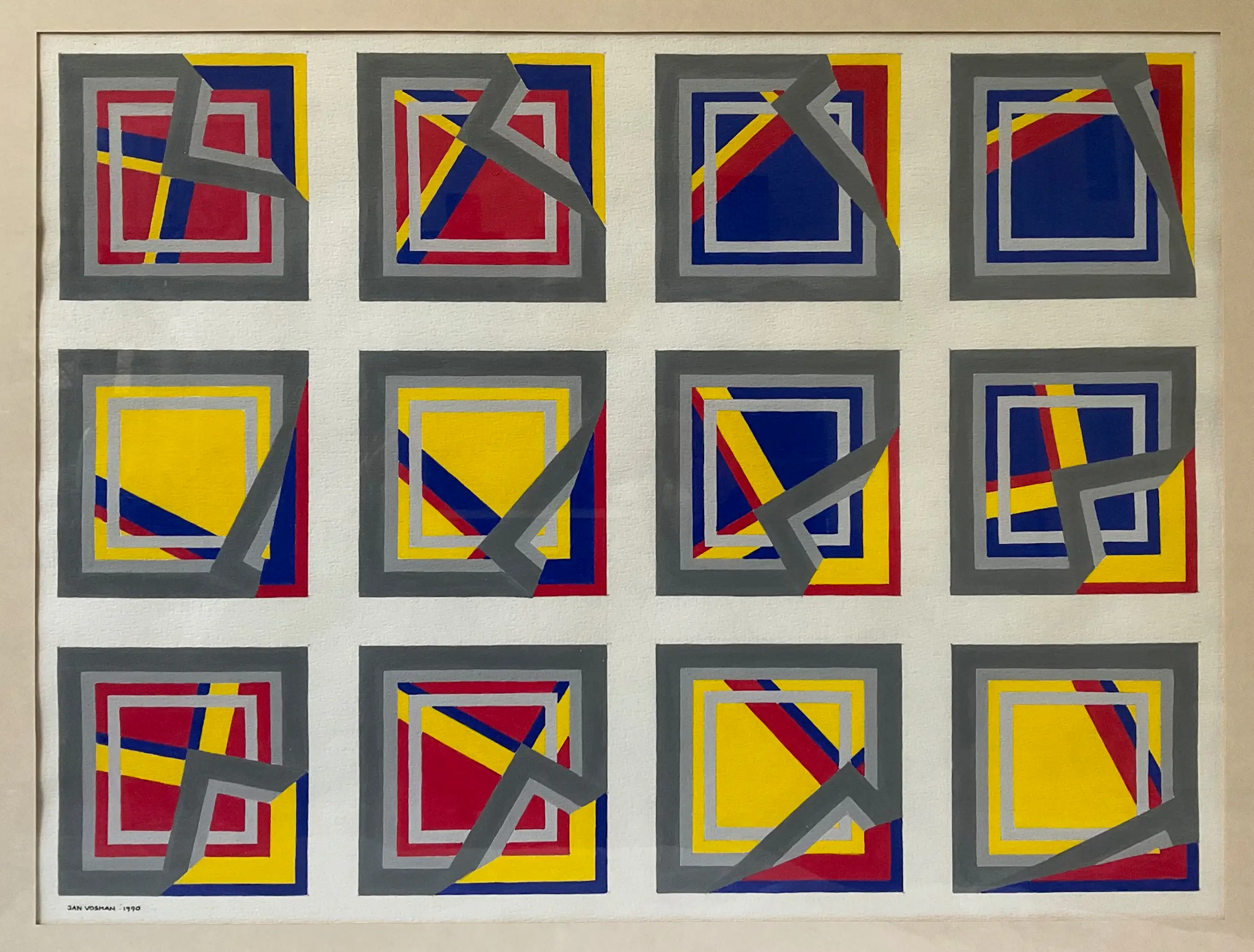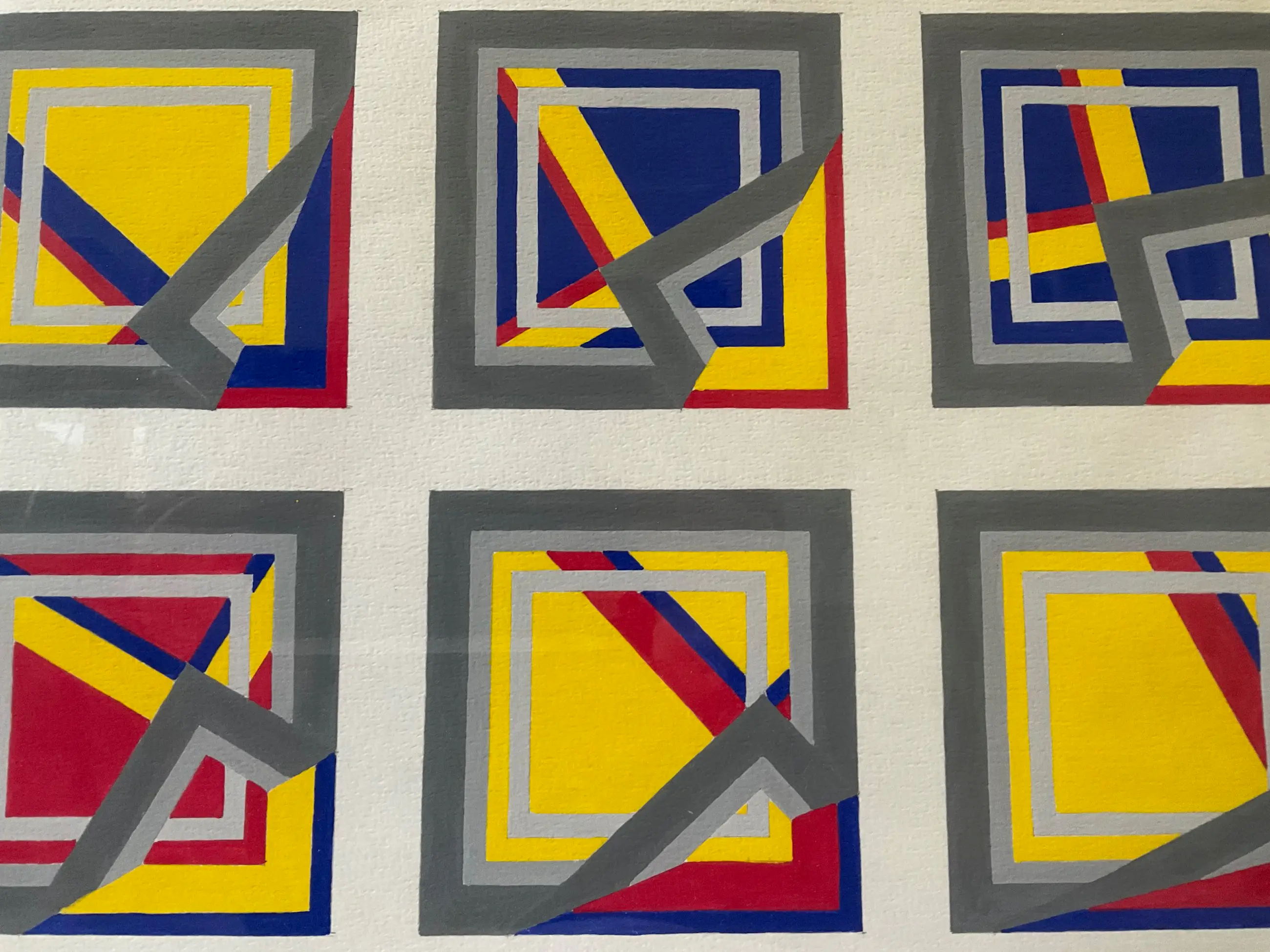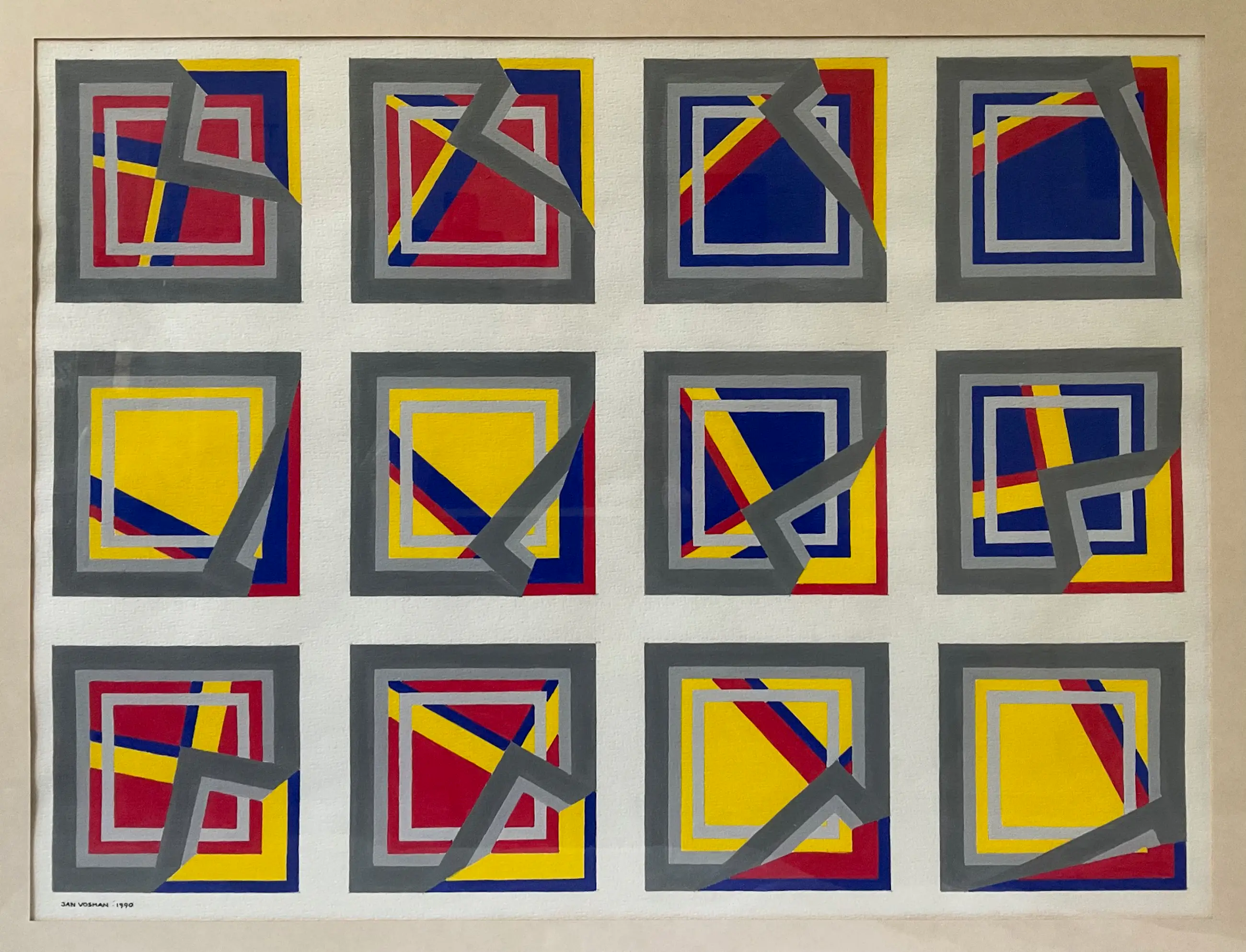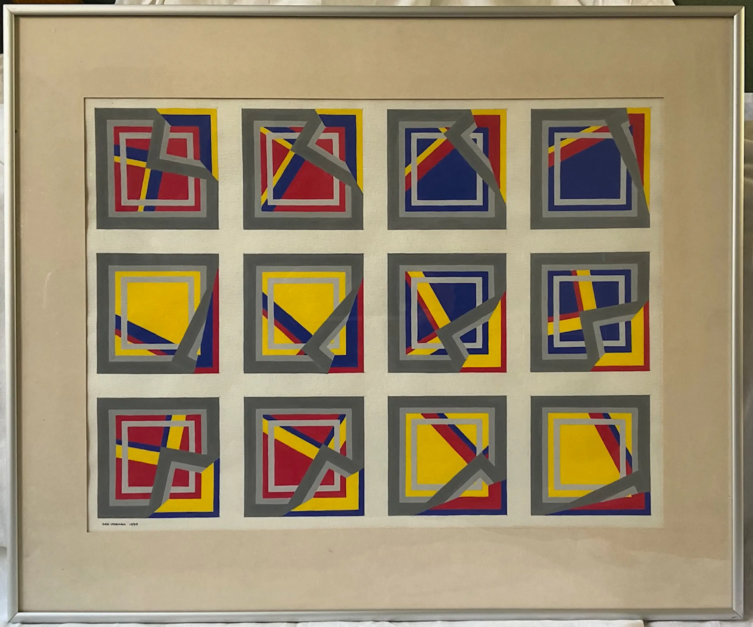 Dit werk is voorzien van een eenvoudig passepartout dan niet mooi kleurt bij het papier waarop is geschilderd en dat wel mooi van kleur en in goede staat is.