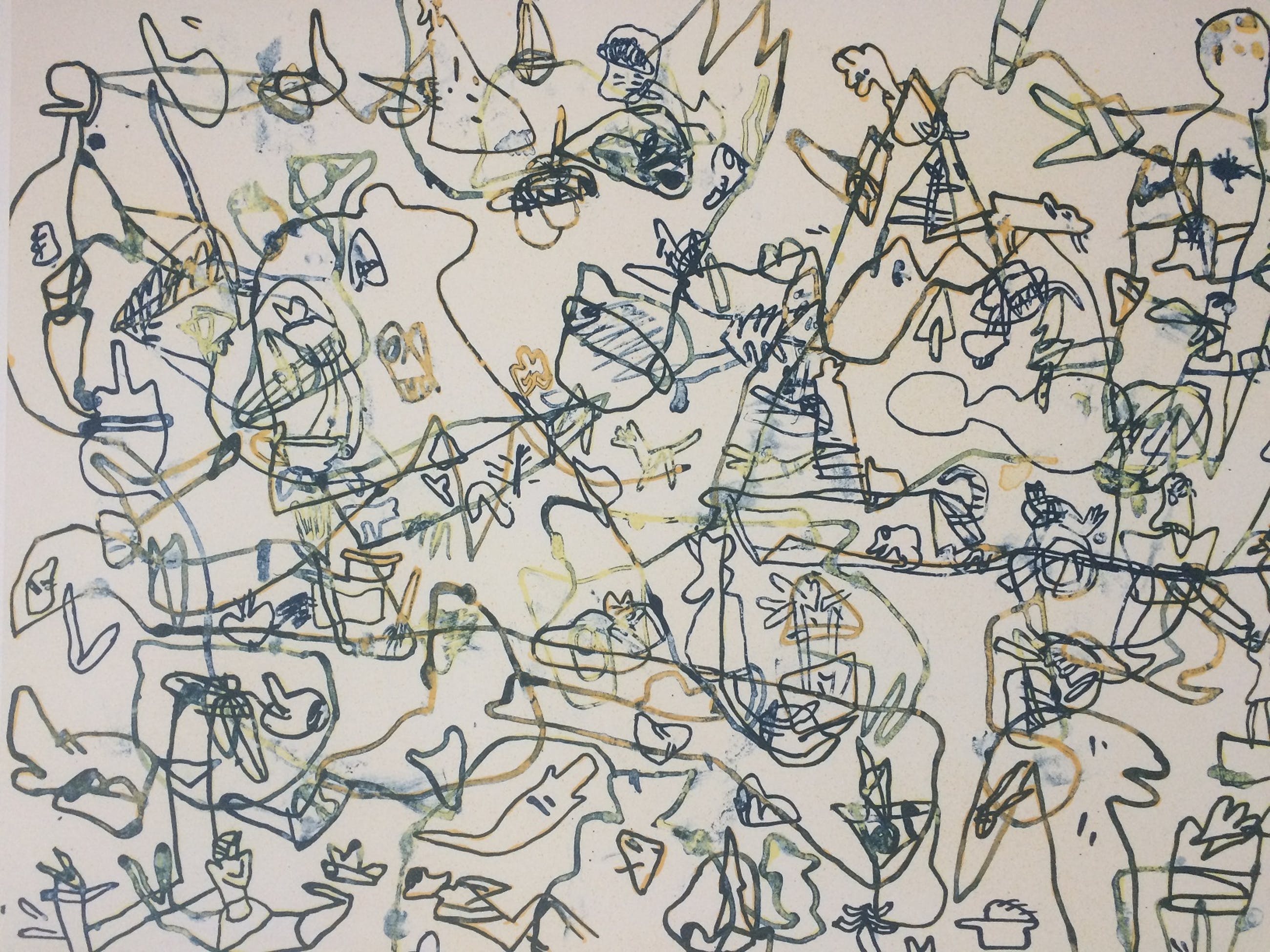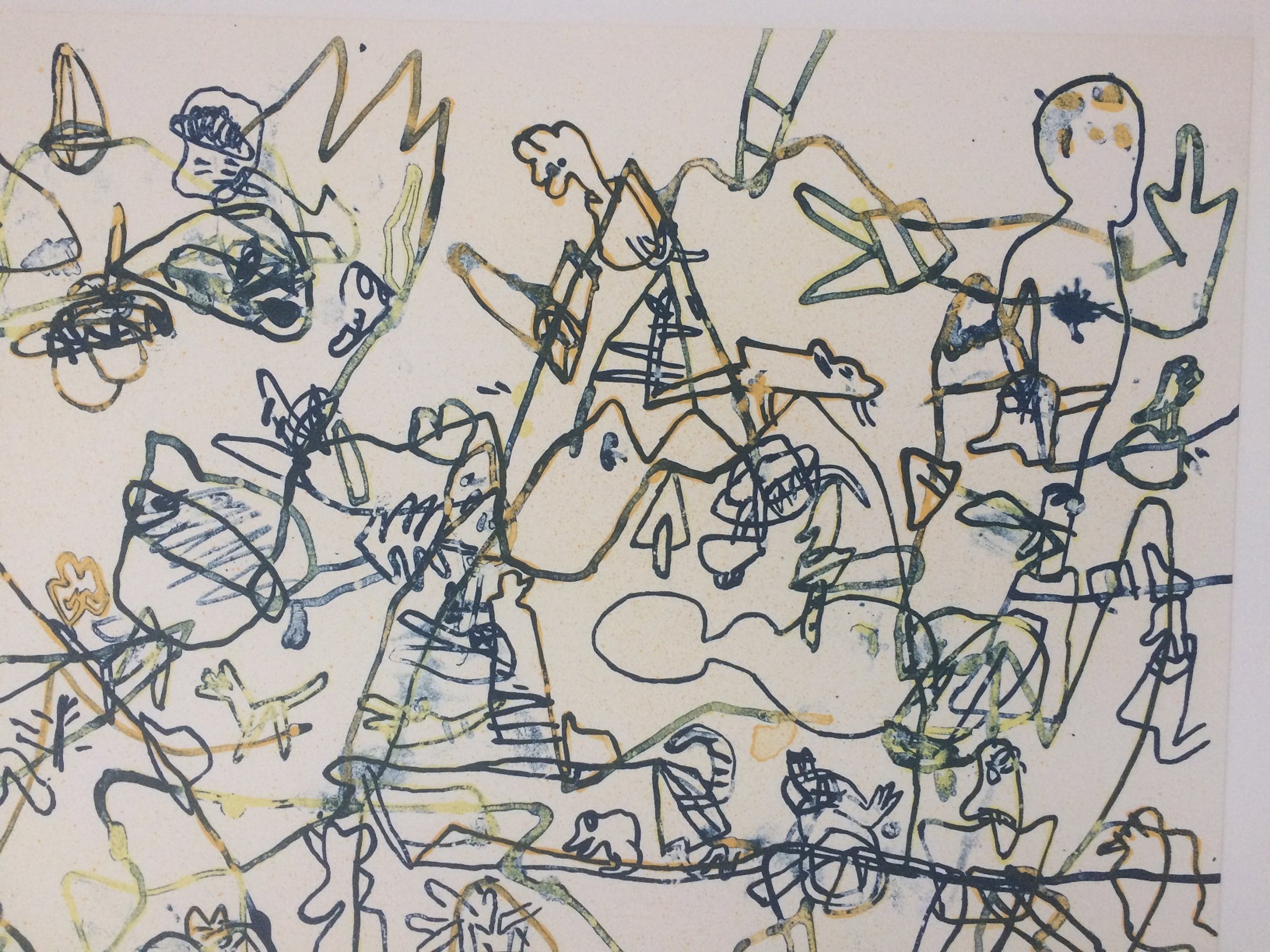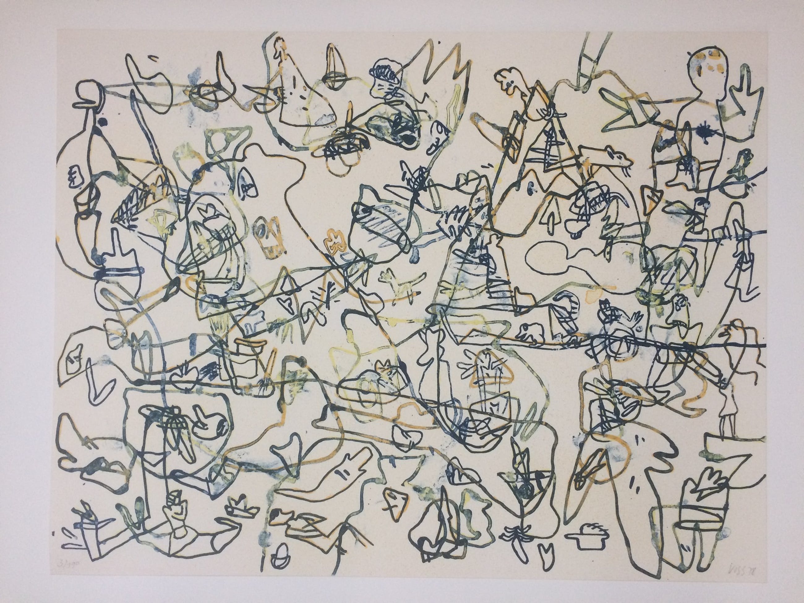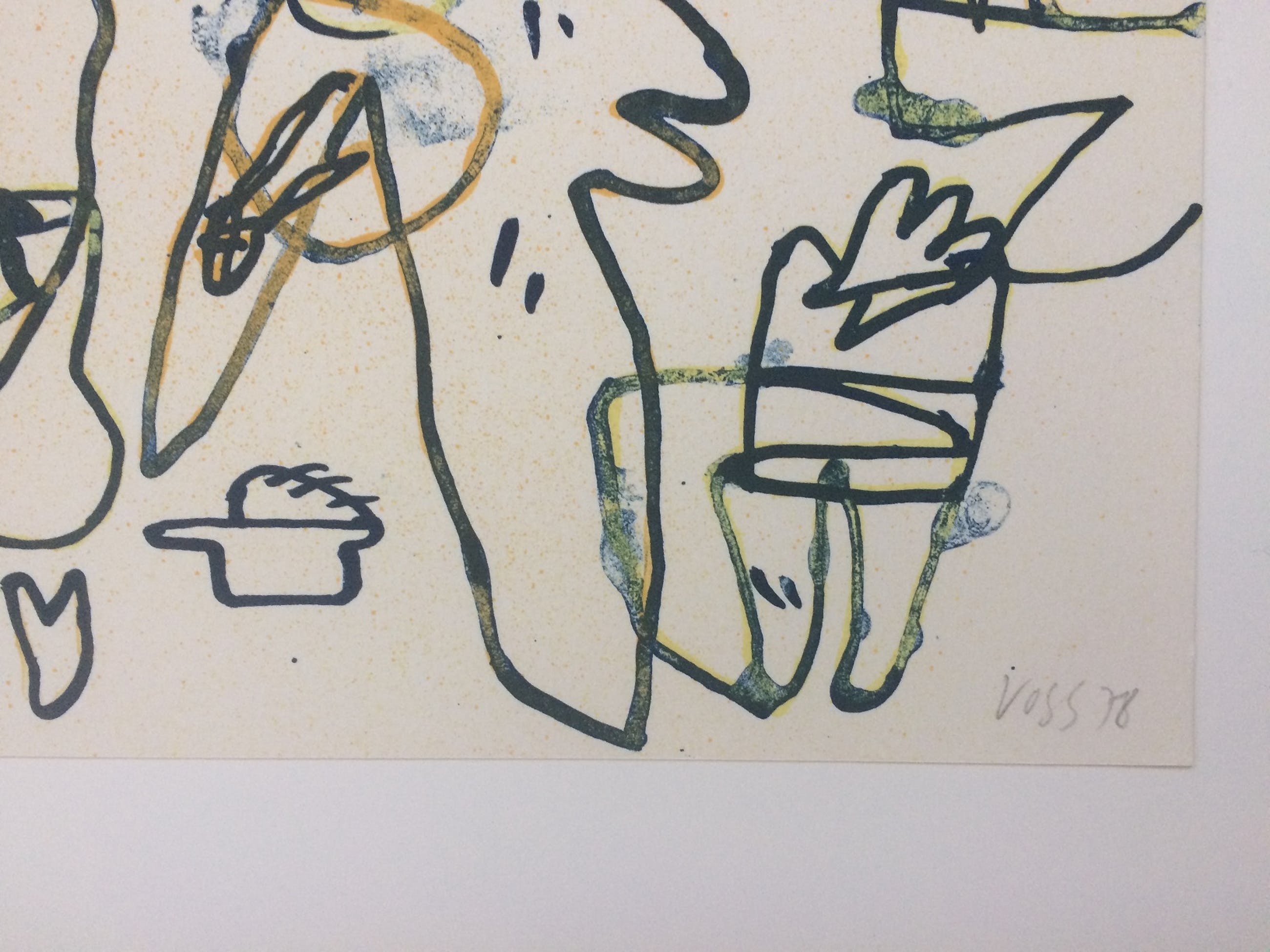 Kleurrijke litho van Jan Voss (1936) Voss is een Duitse kunstenaar. Hij maakt schilderijen en grafiek. Voor de verzamelaars uitgave Prent 190 te Utrecht heeft hij meerdere litho's gemaakt
