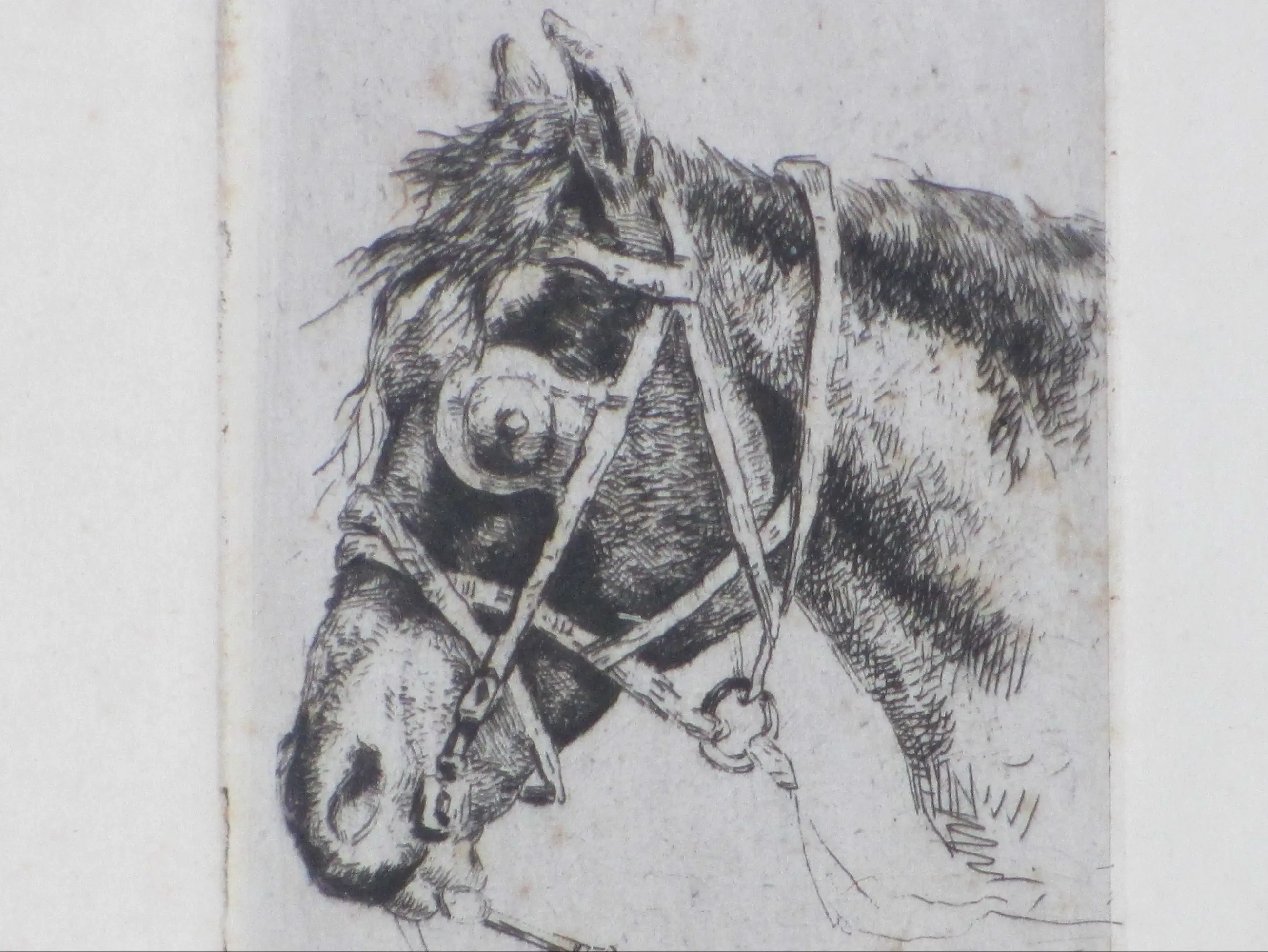 Ets door Jan Vrolijk Voorstelling van een paardehoofd Losbladig, beeldmaat 12x7.5, bladmaat 24x18 Gesigneerd in de druk r.o.: 'J. Vrolijk' Authenticiteit volledig gegarandeerd