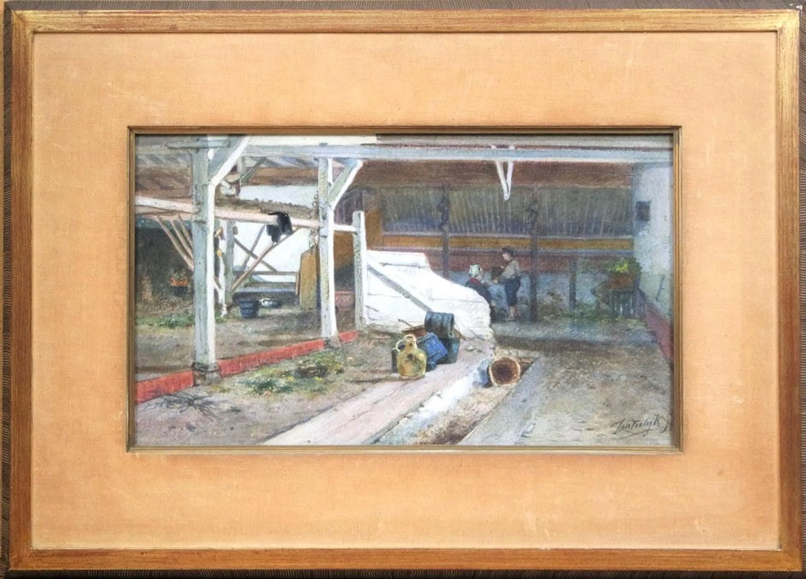 Een schitterend kunstwerk ( "stalinterieur met figuren" , aquarel op papier ) van de Nederlandse kunstschilder Johannes Martinus (Jan) Vrolijk (1846-1894). Hollandse Romantiek 19de eeuw. Met een prachtige Heijdenrijklijst. Gesigneerd rechts onder. De afmetingen met lijst: 46 cm. x 64 cm. De beeldmaat is: 24,5 cm. x 42,5 cm. De conditie van het kunstwerk is goed. Het kunstwerk is te bezichtigen bij Kunsthandel Martins te Wolvega en wordt geleverd met een echtheidscertificaat!