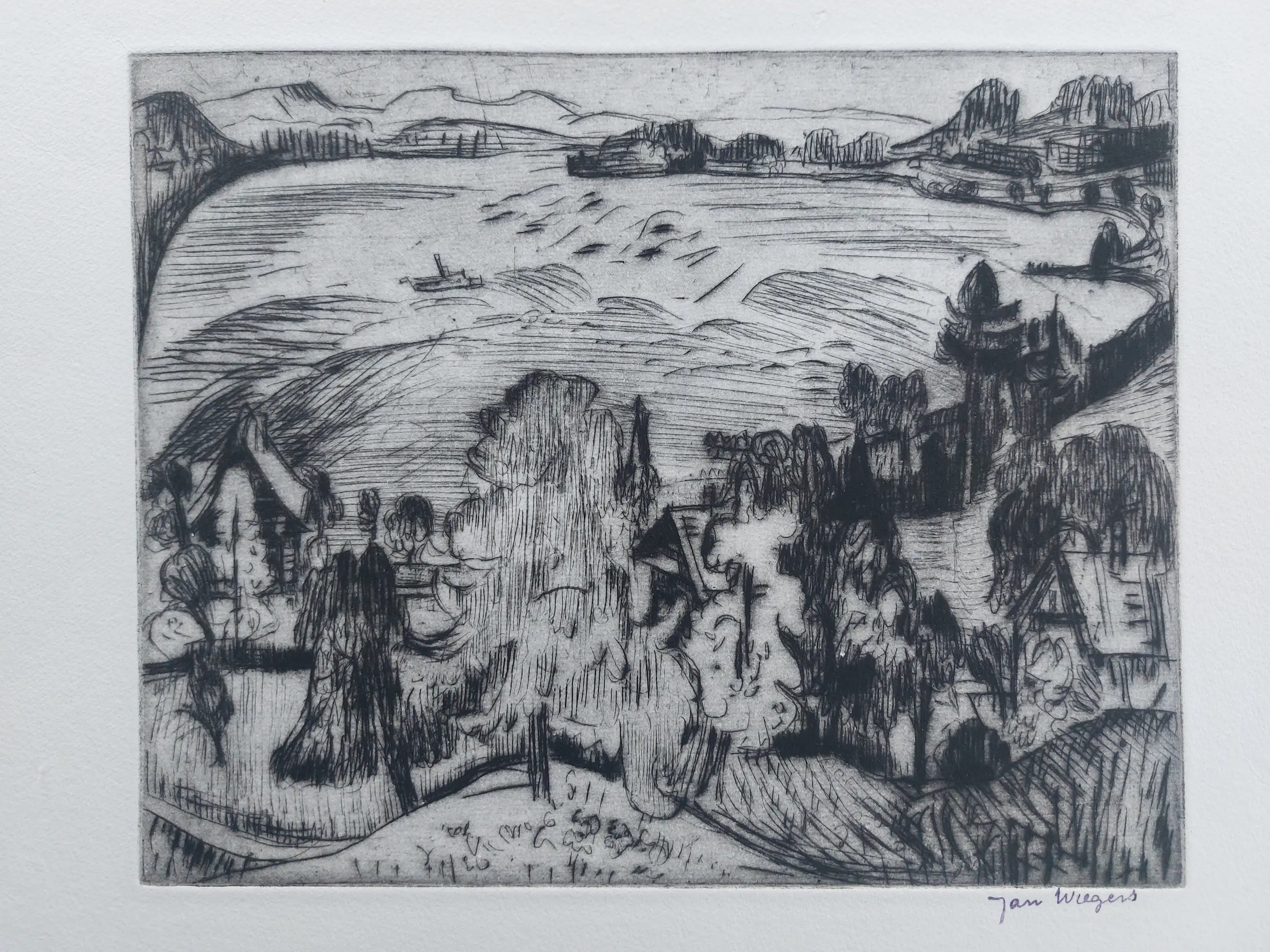 Landschap getiteld Zügersee, gesigneerd met handtekeningstempel rechtsonder. Afmeting 35x29 cm.