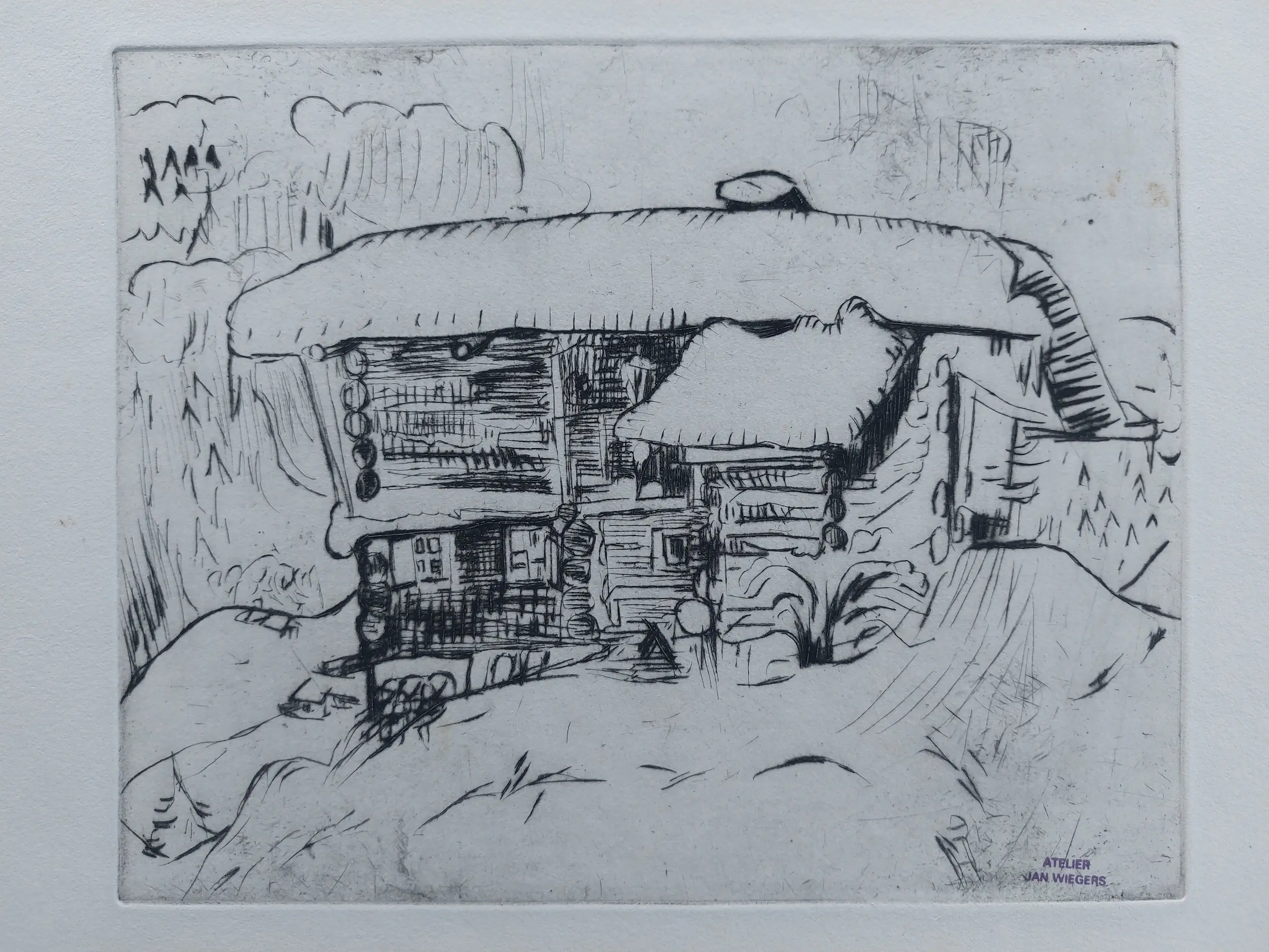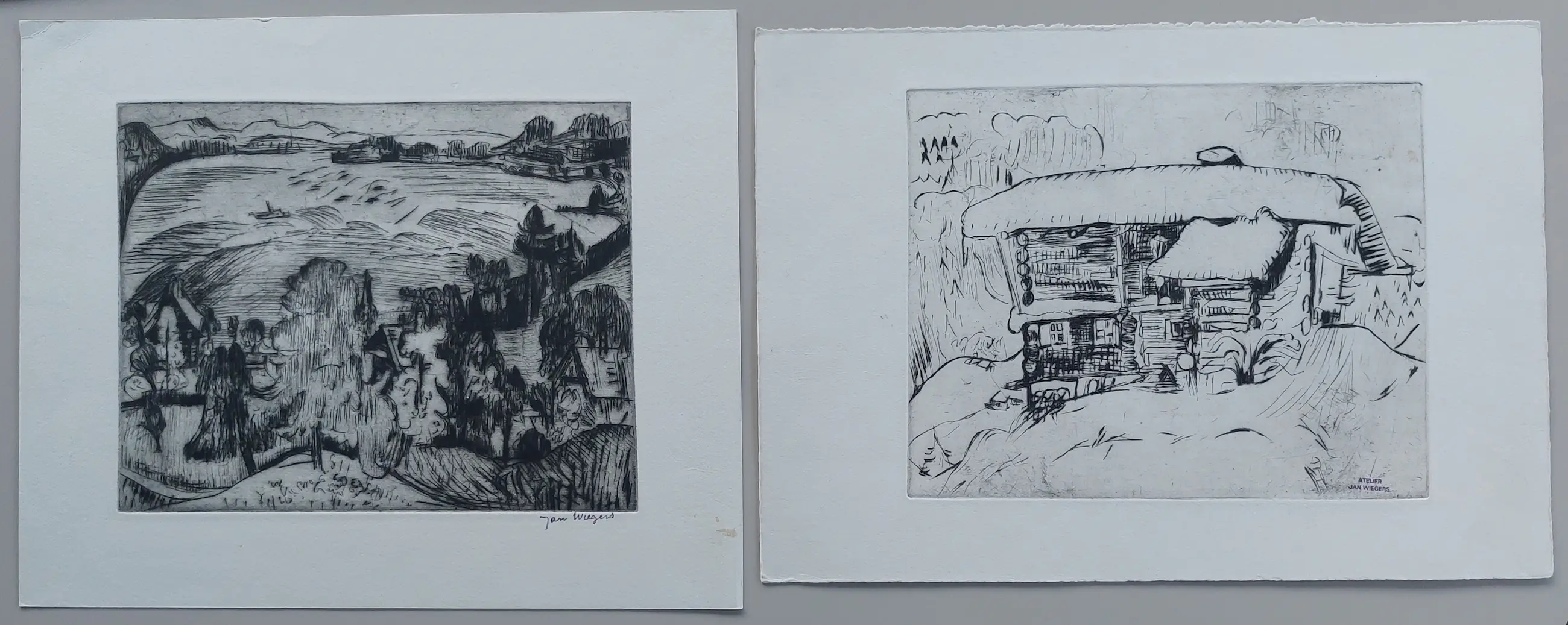 In goede staat gezien de leeftijd. De ets met het winterlandschap heeft een vouw in de rechter onderhoek.