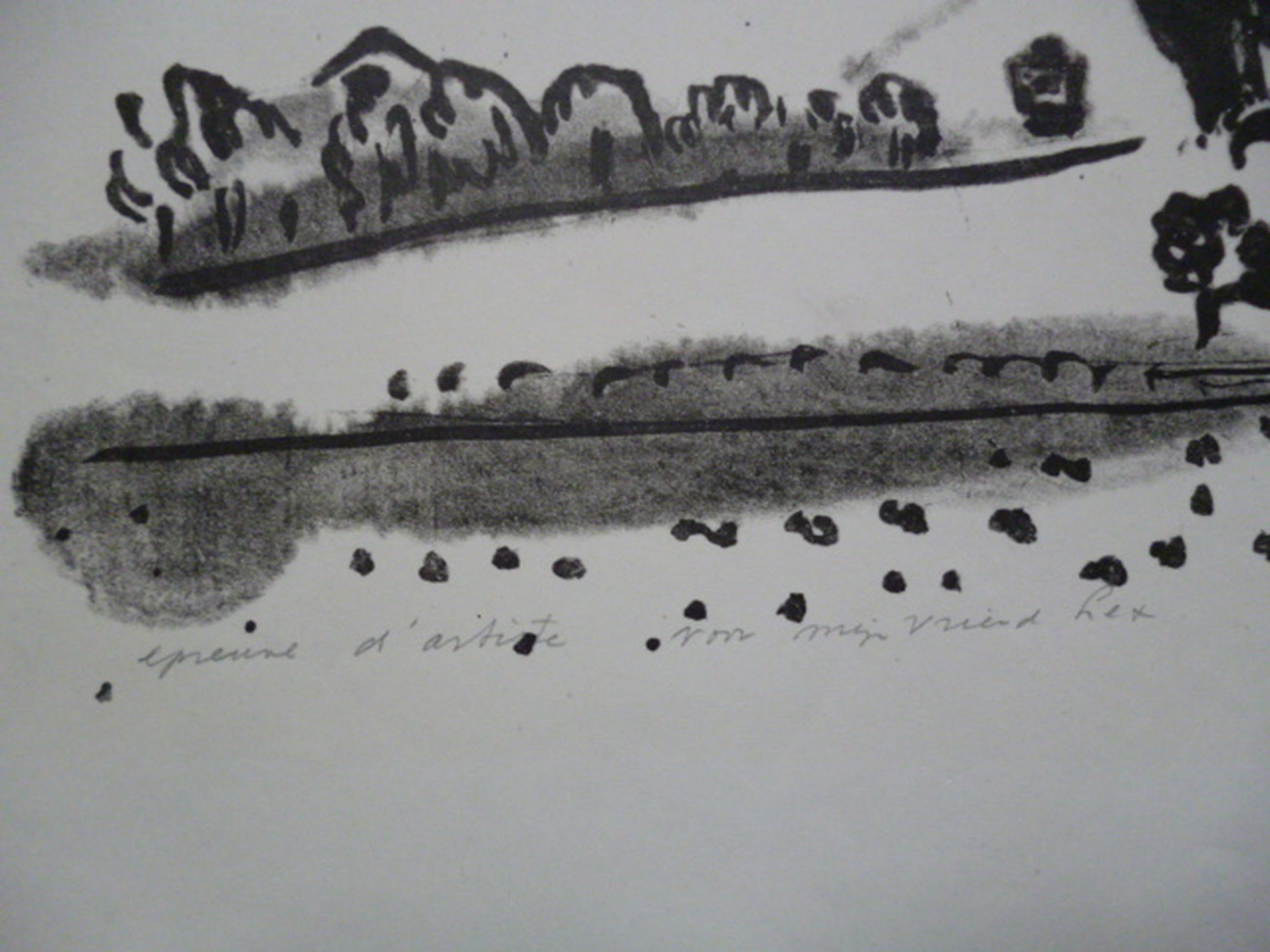 Epreuve d'artist linksonder en geannoteerd "voor mijn vriend Lex".