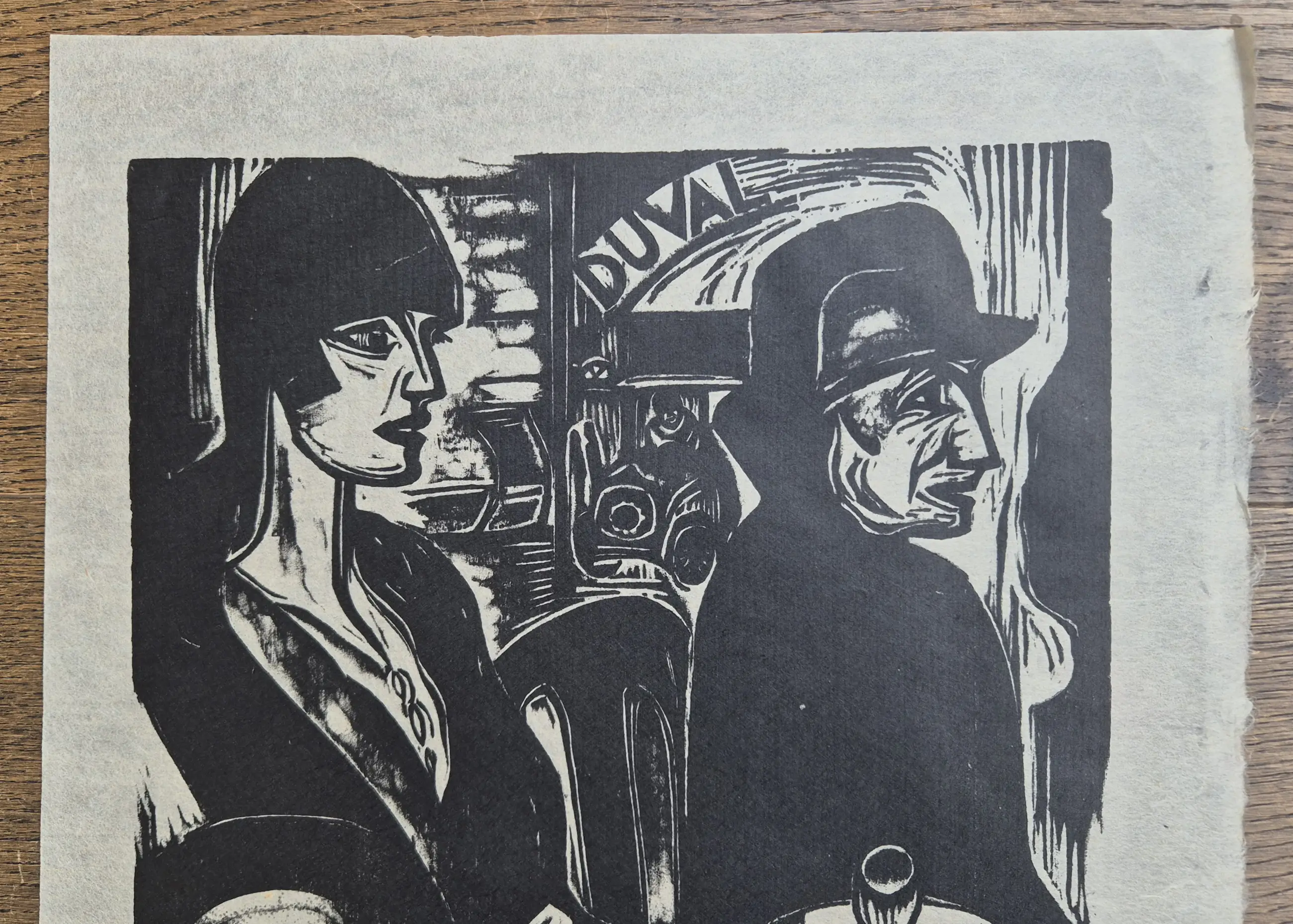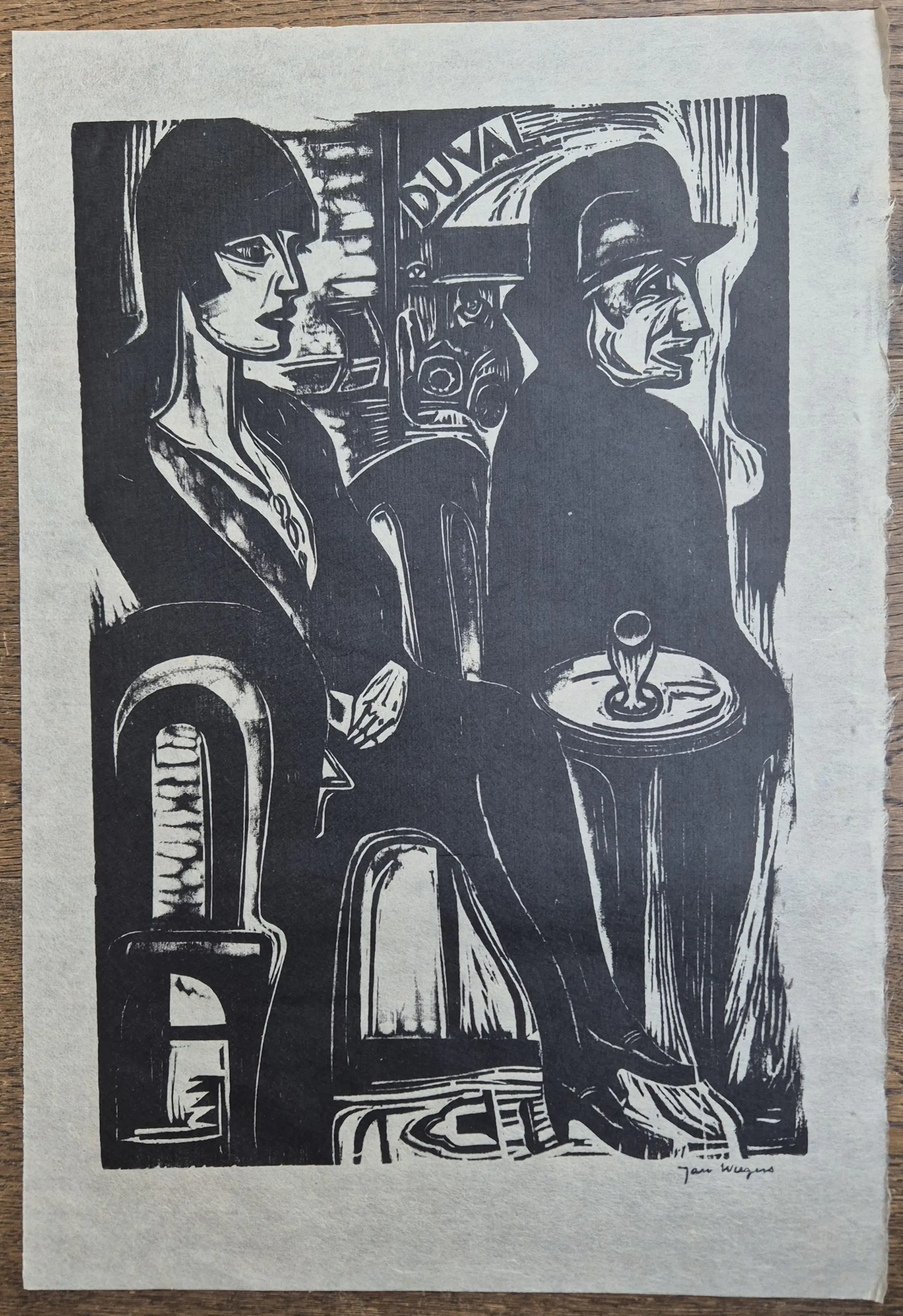 Jan Wiegers - Café Duval - houtsnede op japans papier