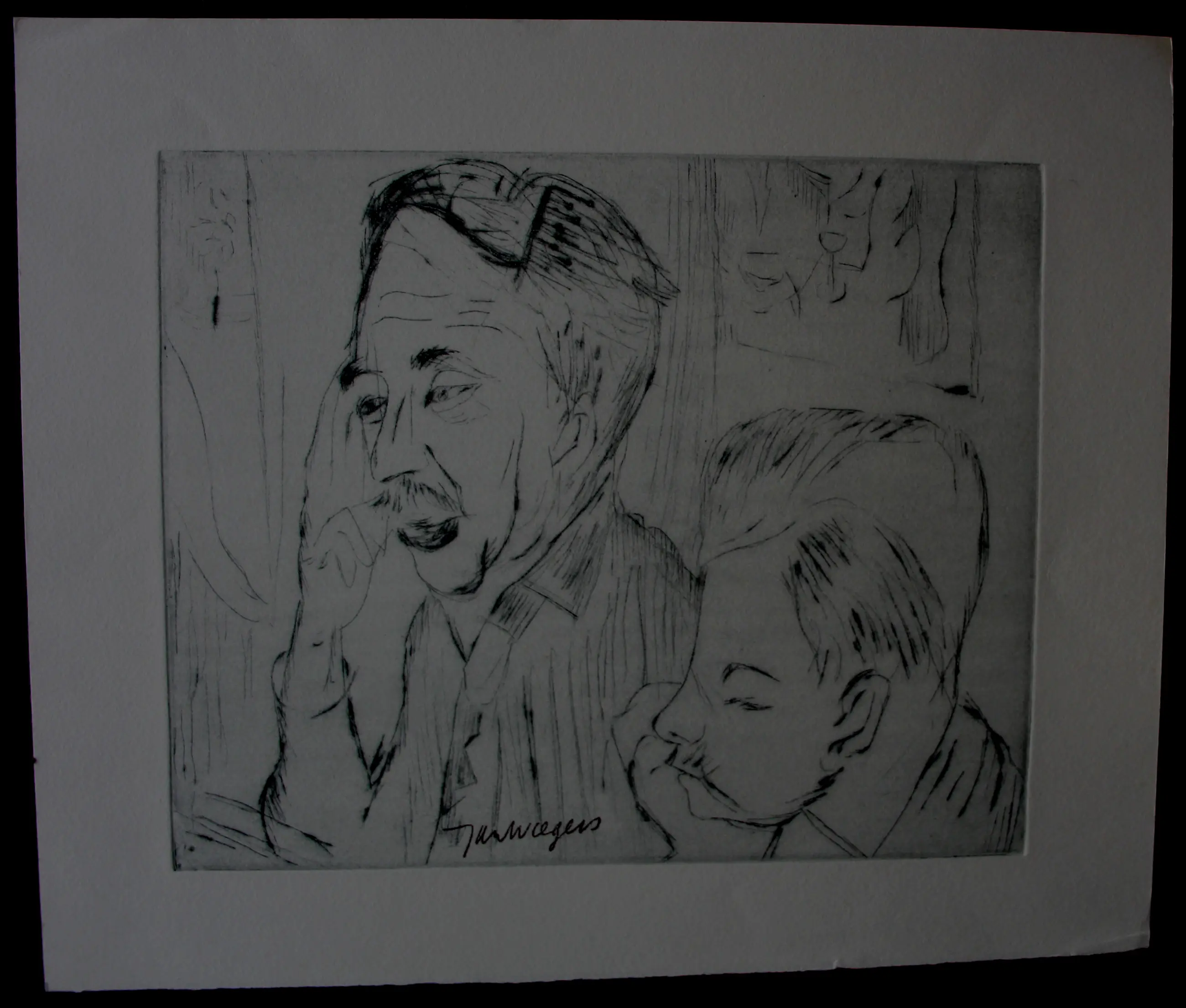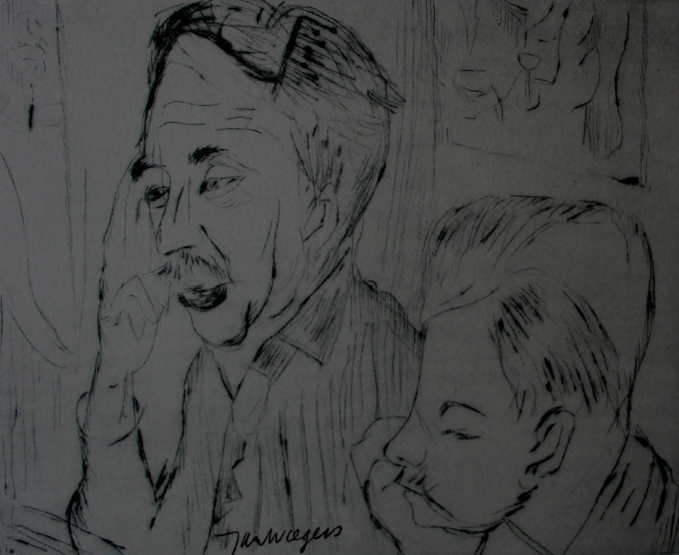 Jan Wiegers - Ets: Portret van H.N Werkman en J van Zweden