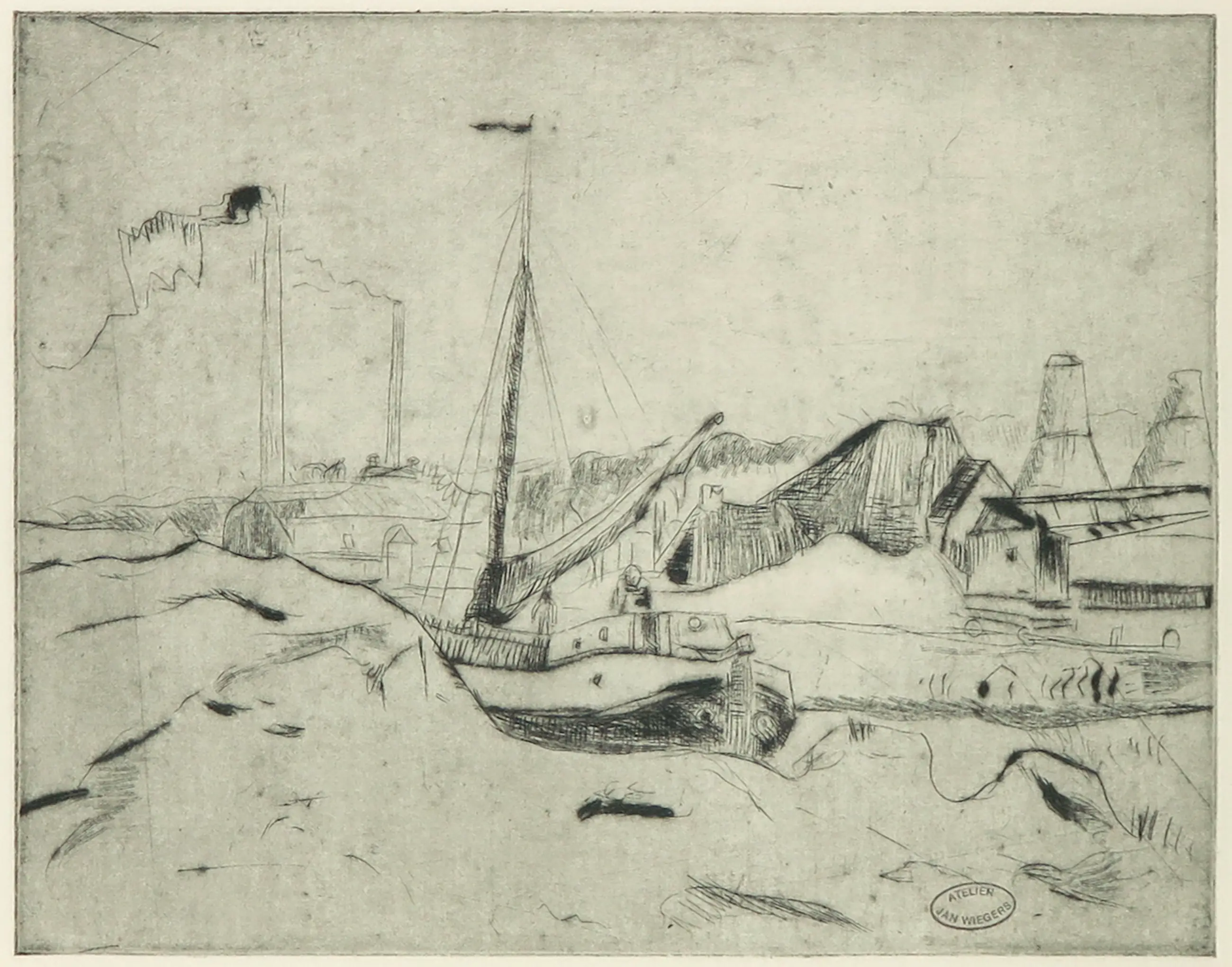 De ets is niet gesigneerd, maar voorzien van een atelierstempel (Atelier Jan Wiegers).